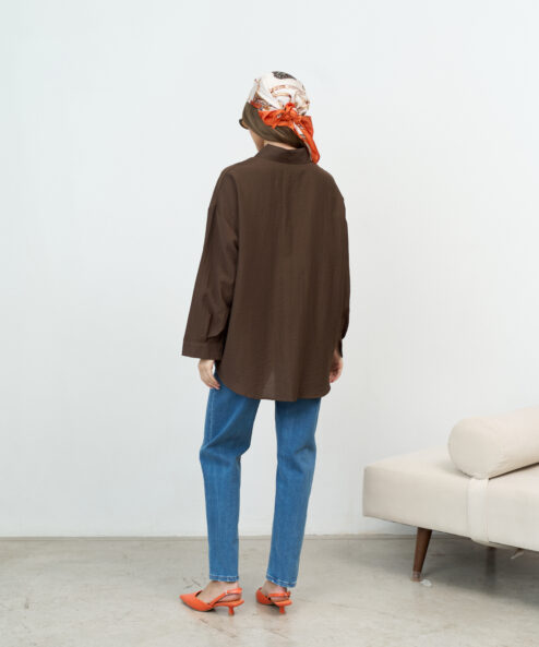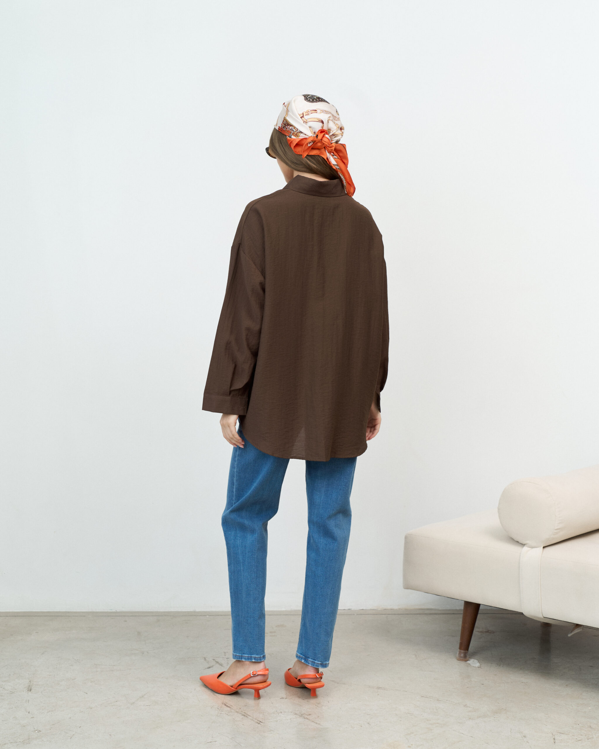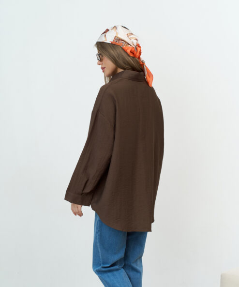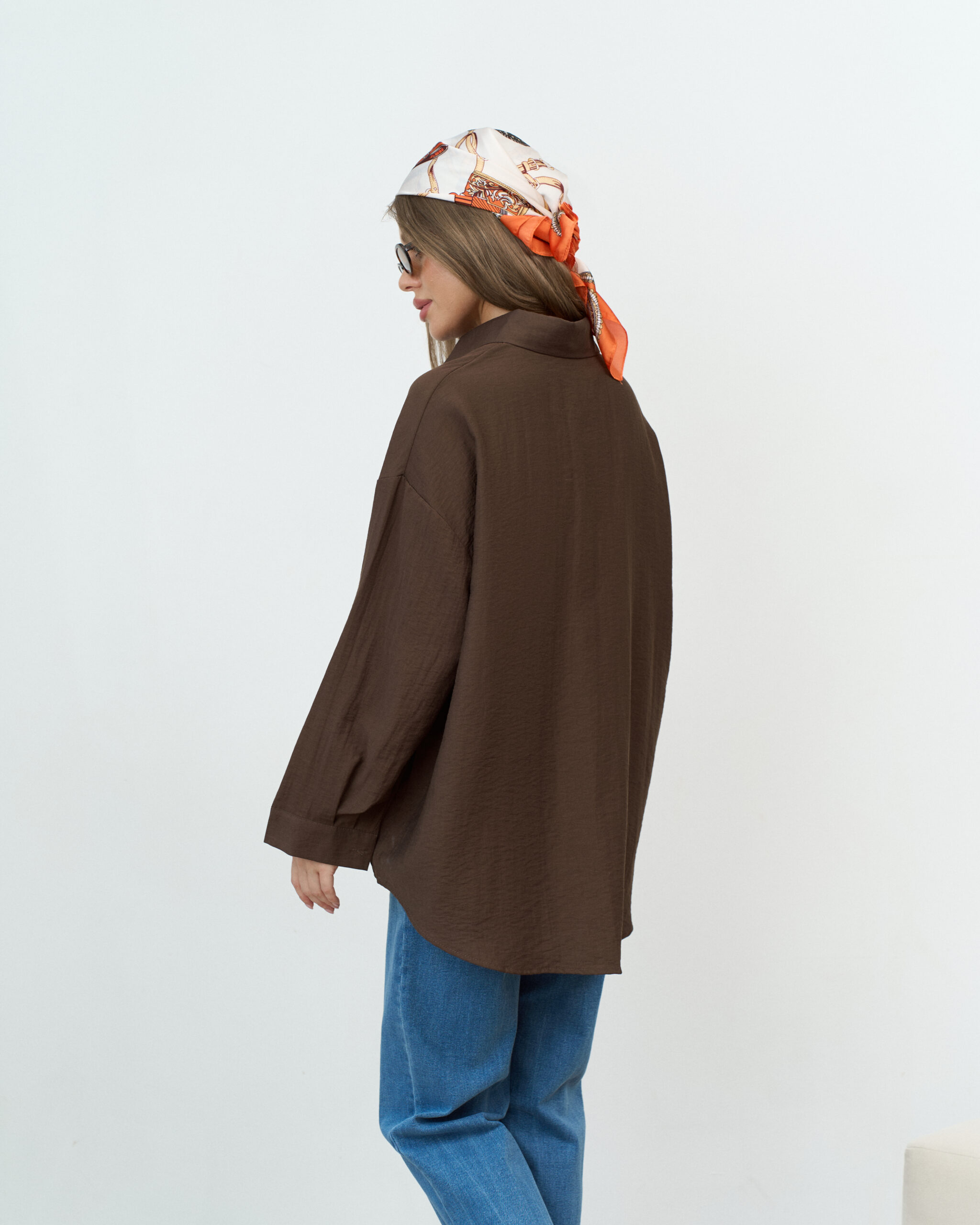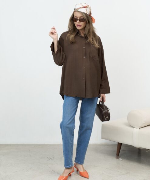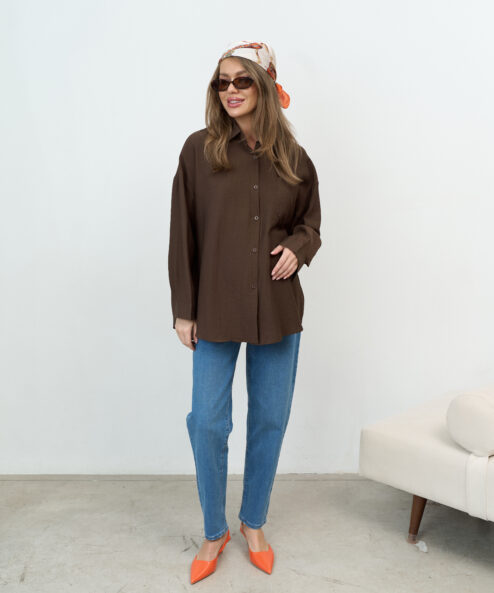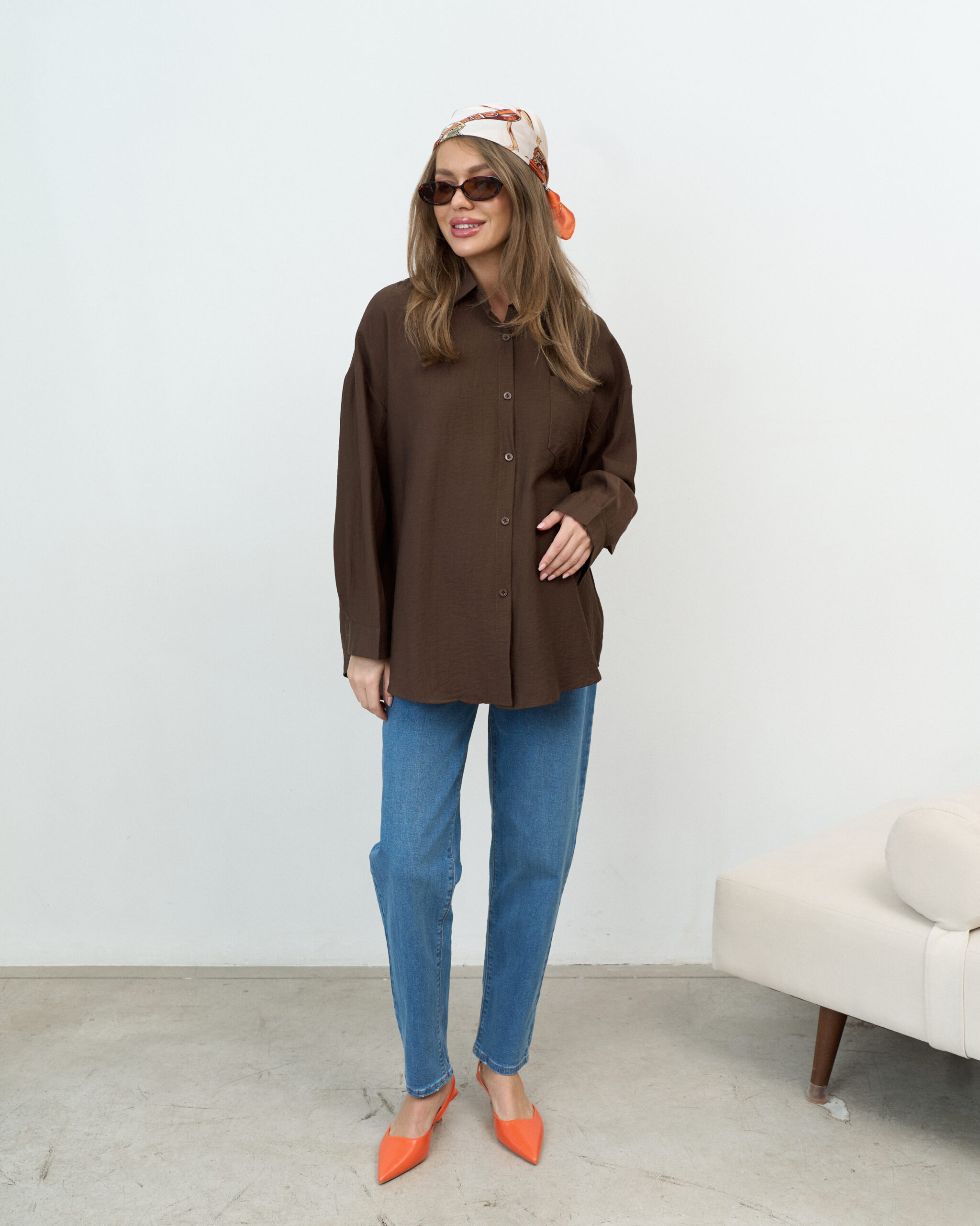 Стильная удлиненная рубашка оверсайз для беременных и кормящих мам. Для кормления пуговицы расстегиваются.
