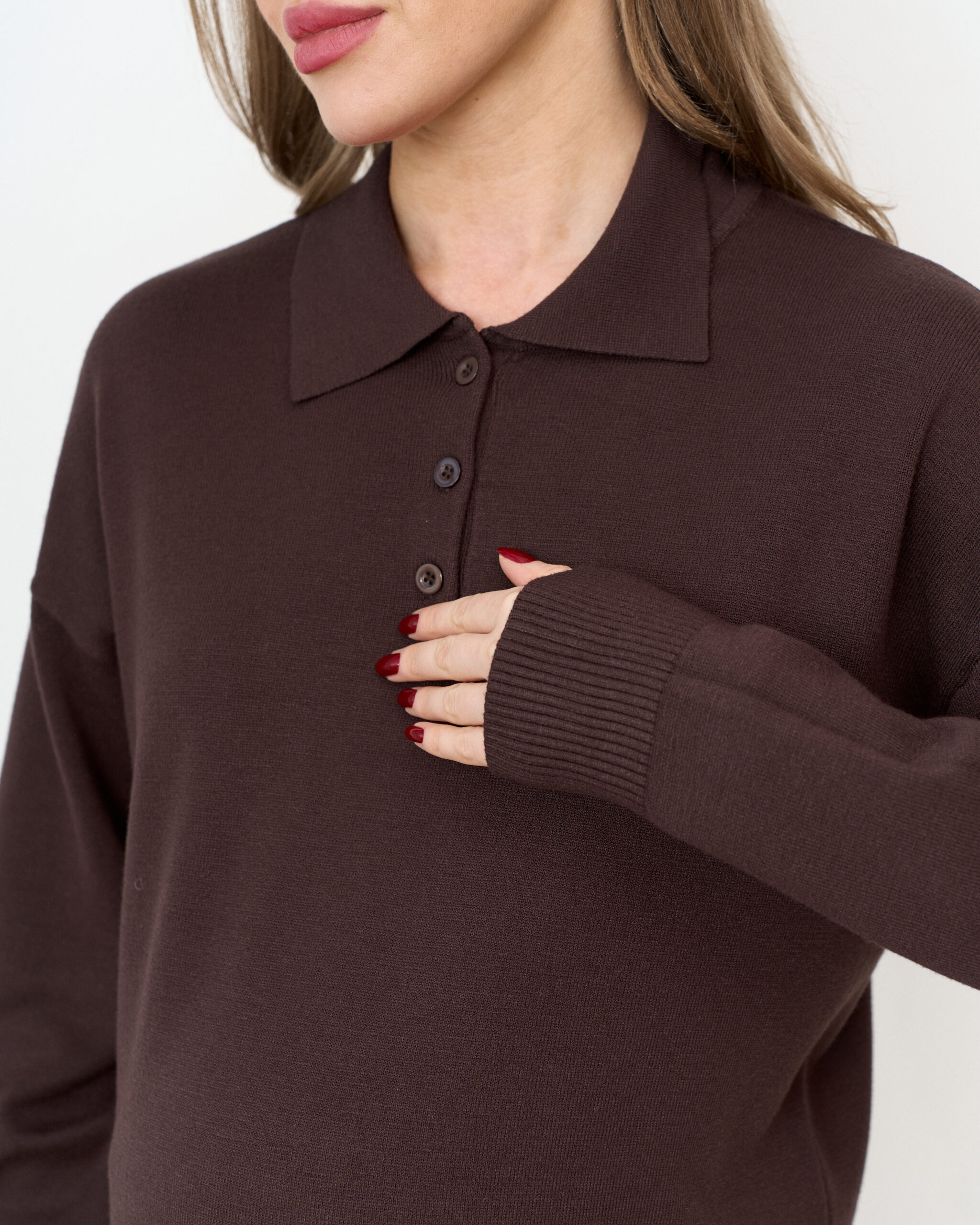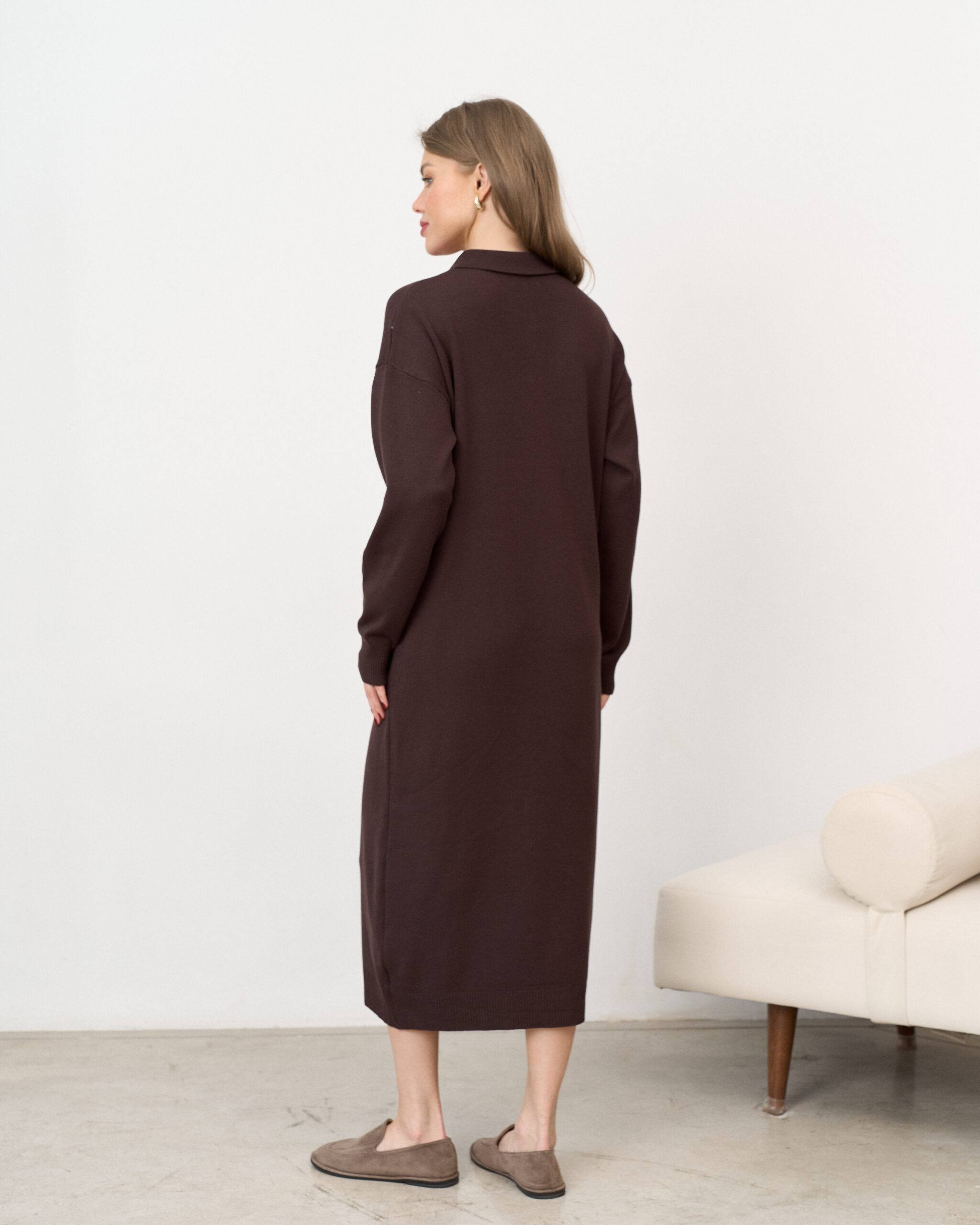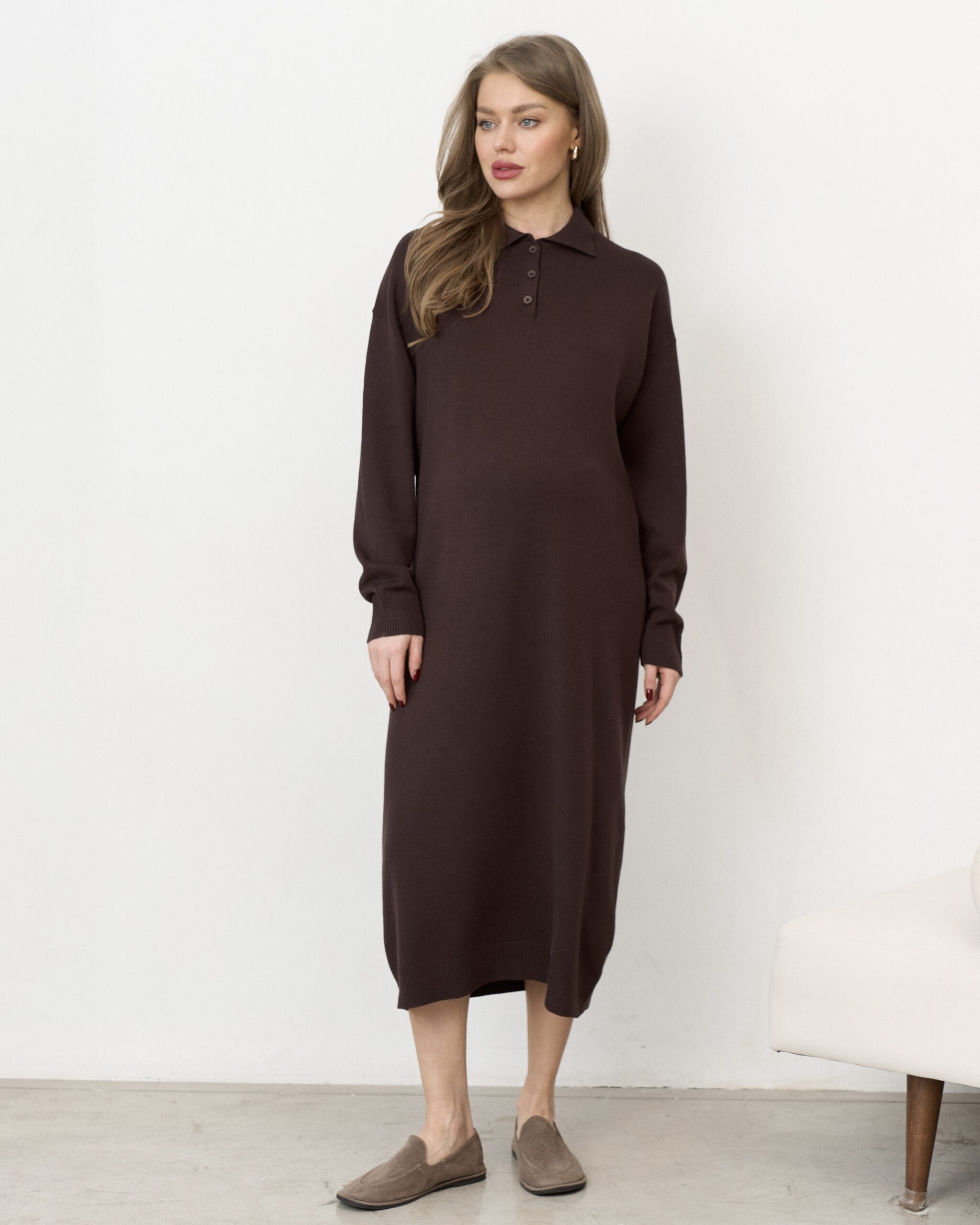 Платье для беременных из вязаного хлопкового трикотажа. Свободный силуэт, универсальная длина и трендовый оттенок обеспечат вам комфорт и стильный внешний вид.