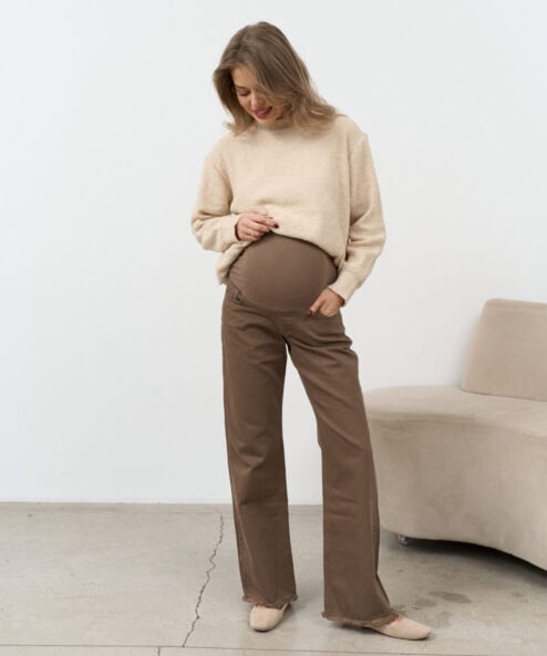 Шоколадные джинсы прямого кроя для будущих мам Tally