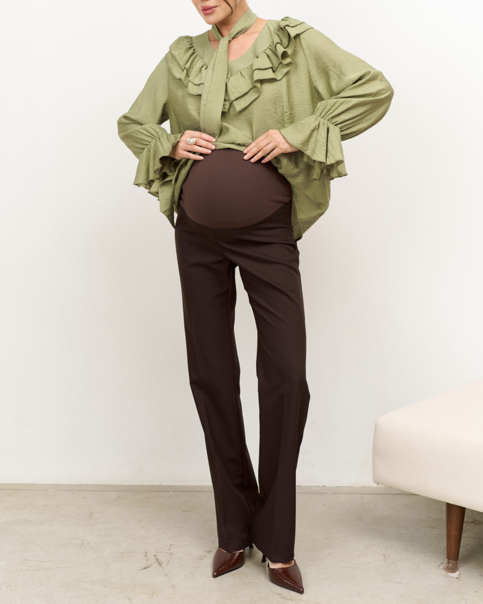 Шоколадные слим-брюки для будущих мам Street