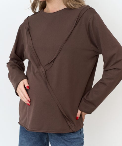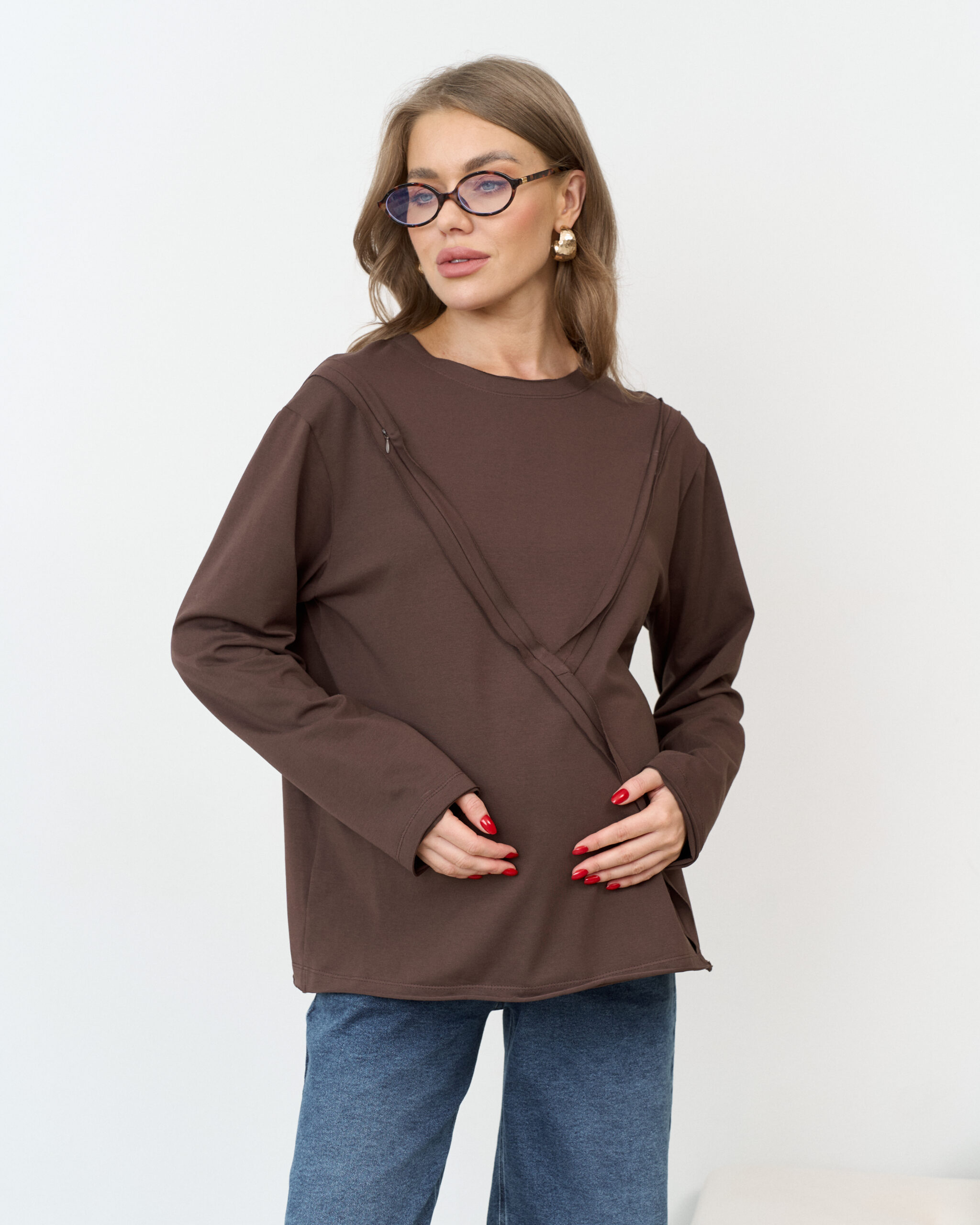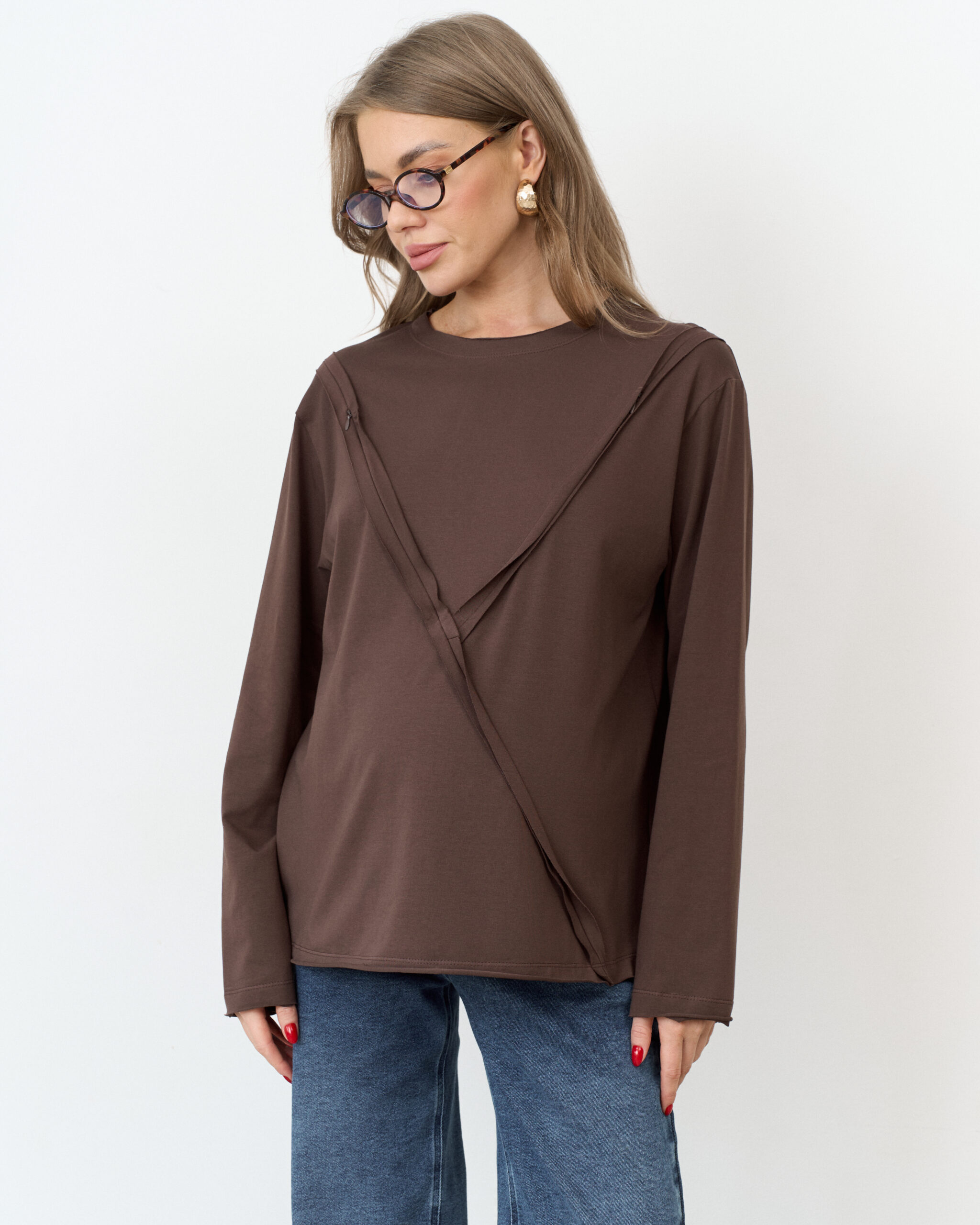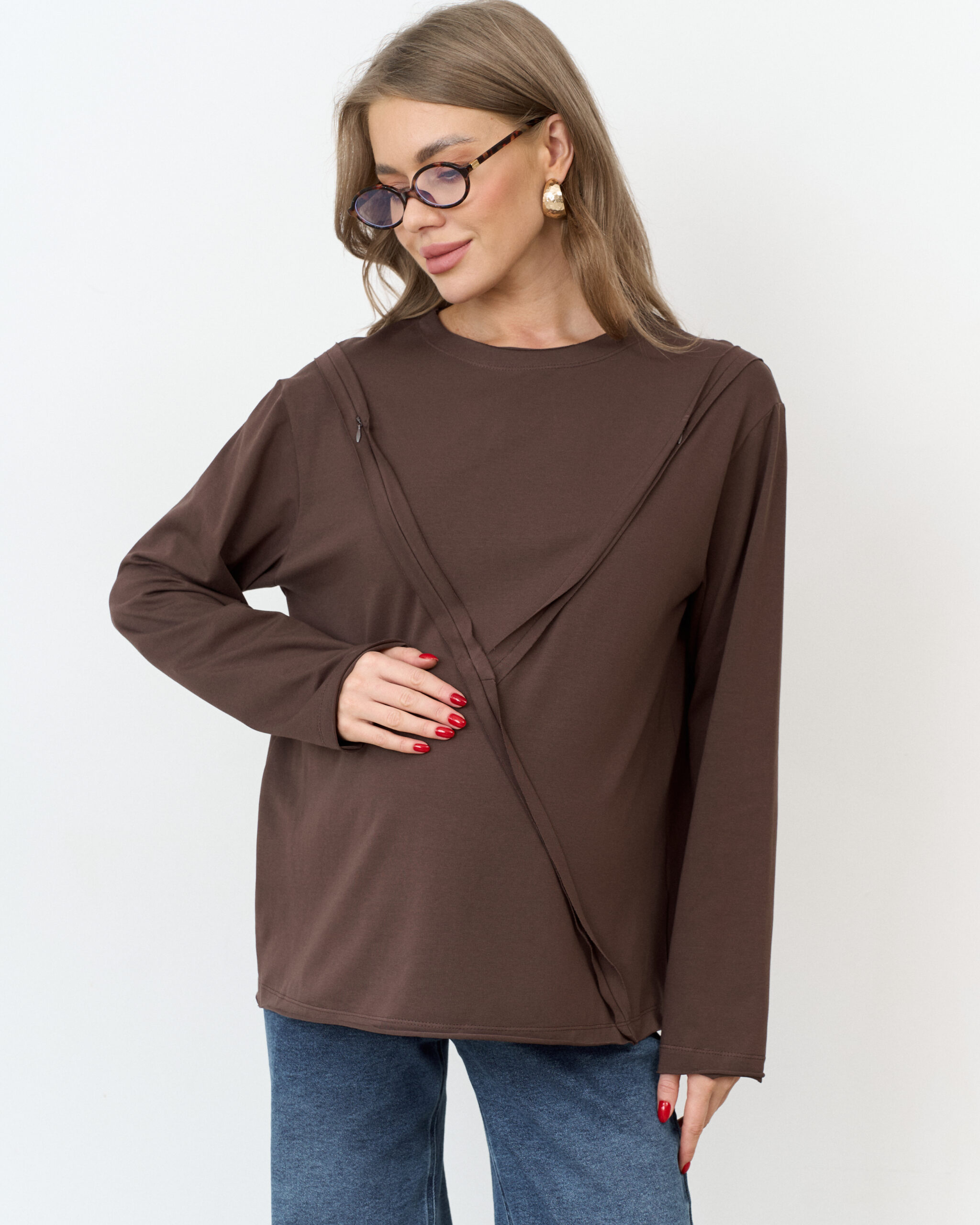 Шоколадный лонгслив для будущих и кормящих мам Agata