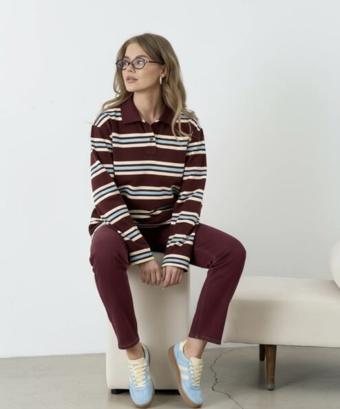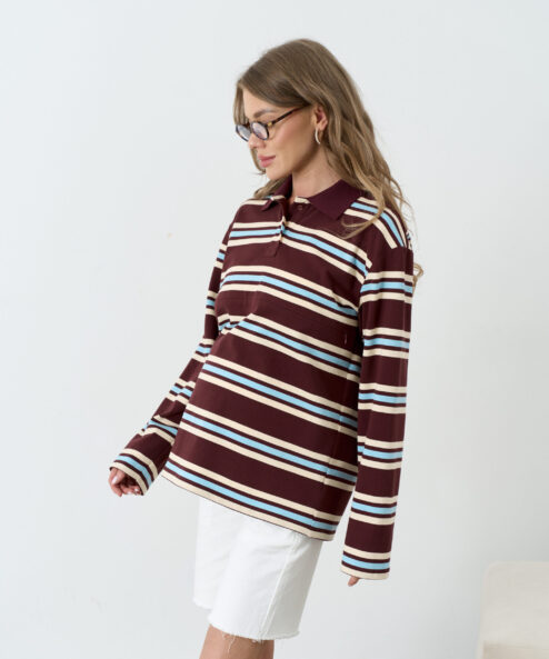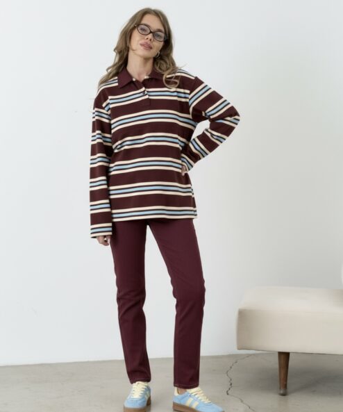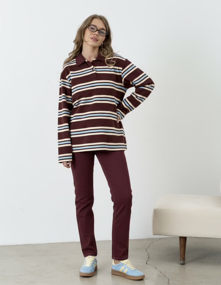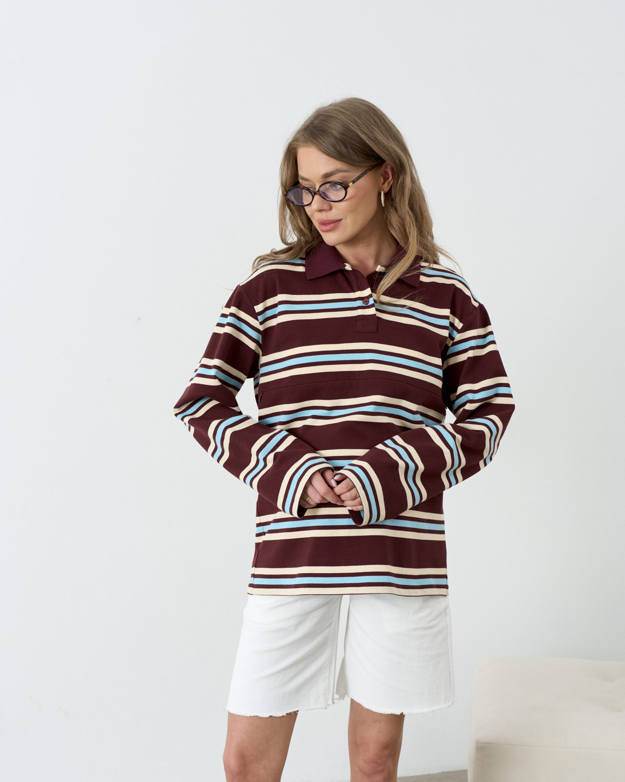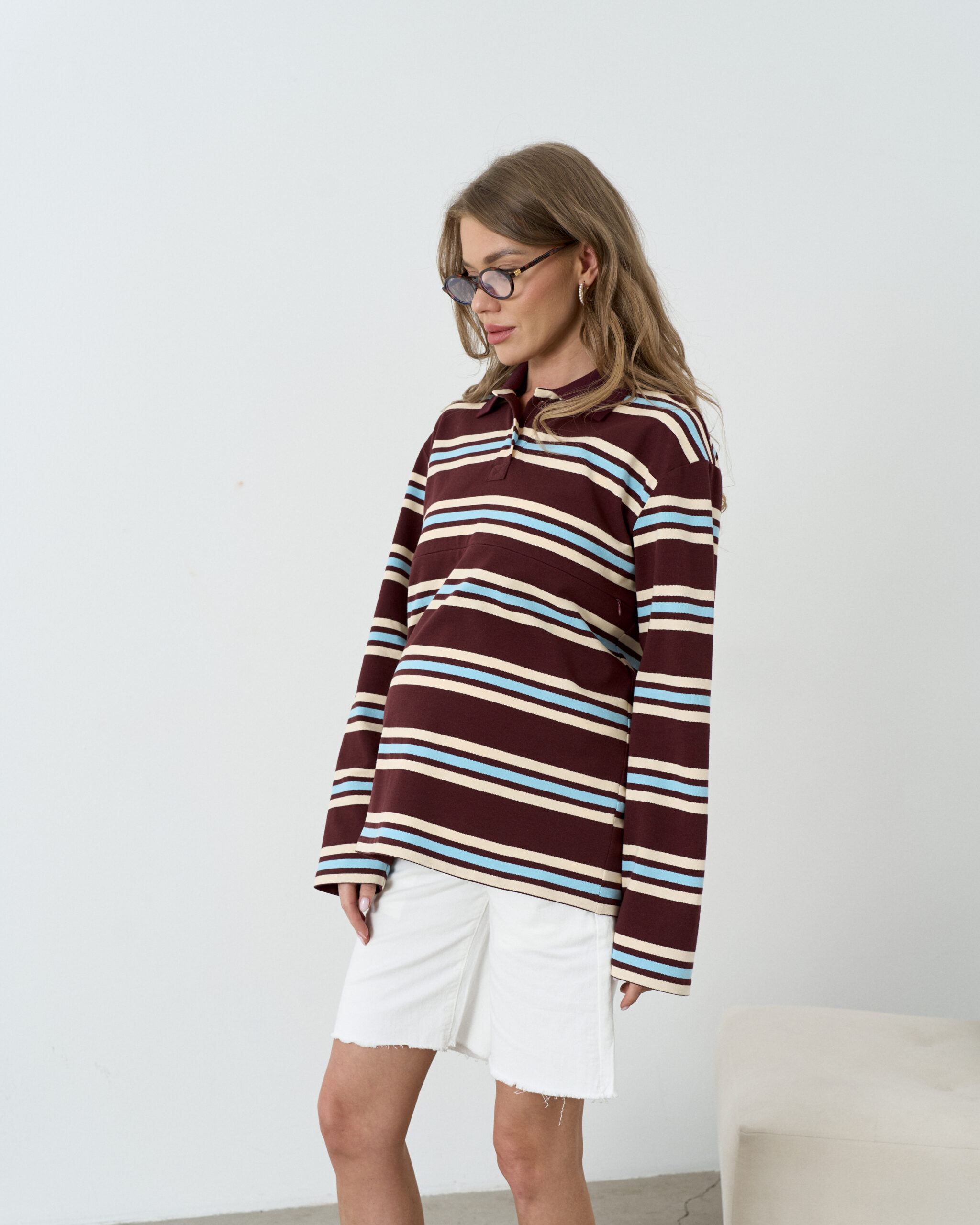 Бордовое поло в полоску для будущих и кормящих мам Tracy