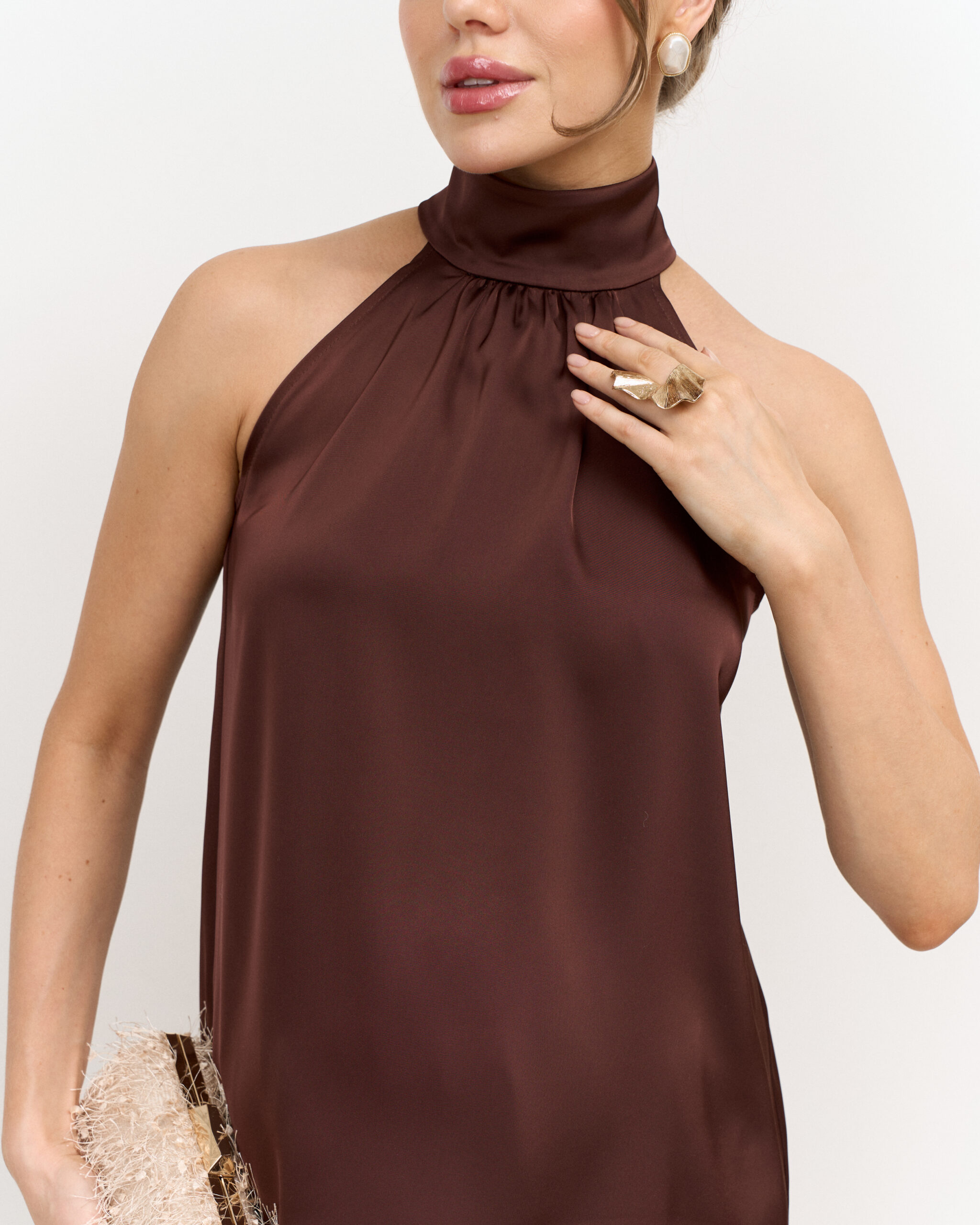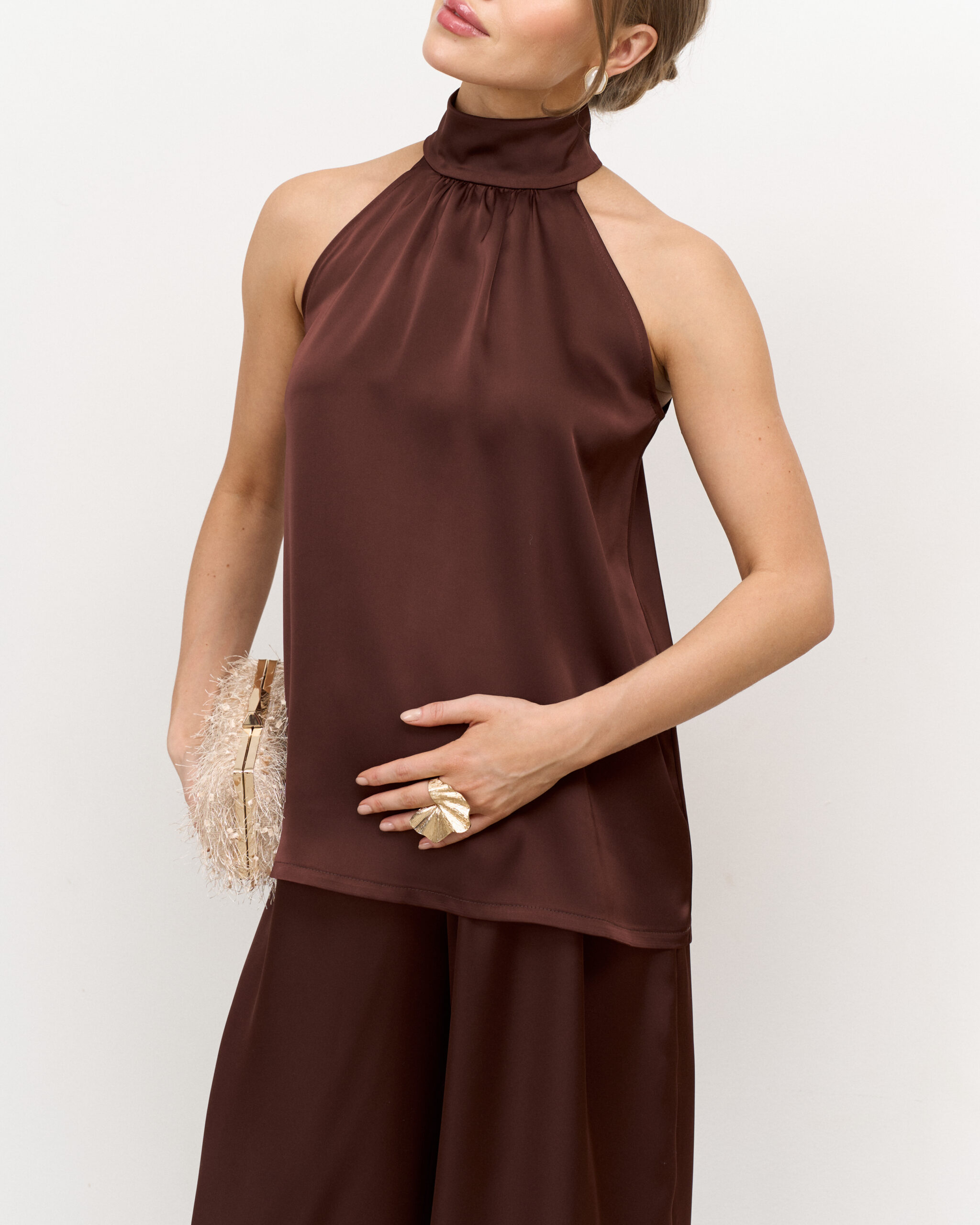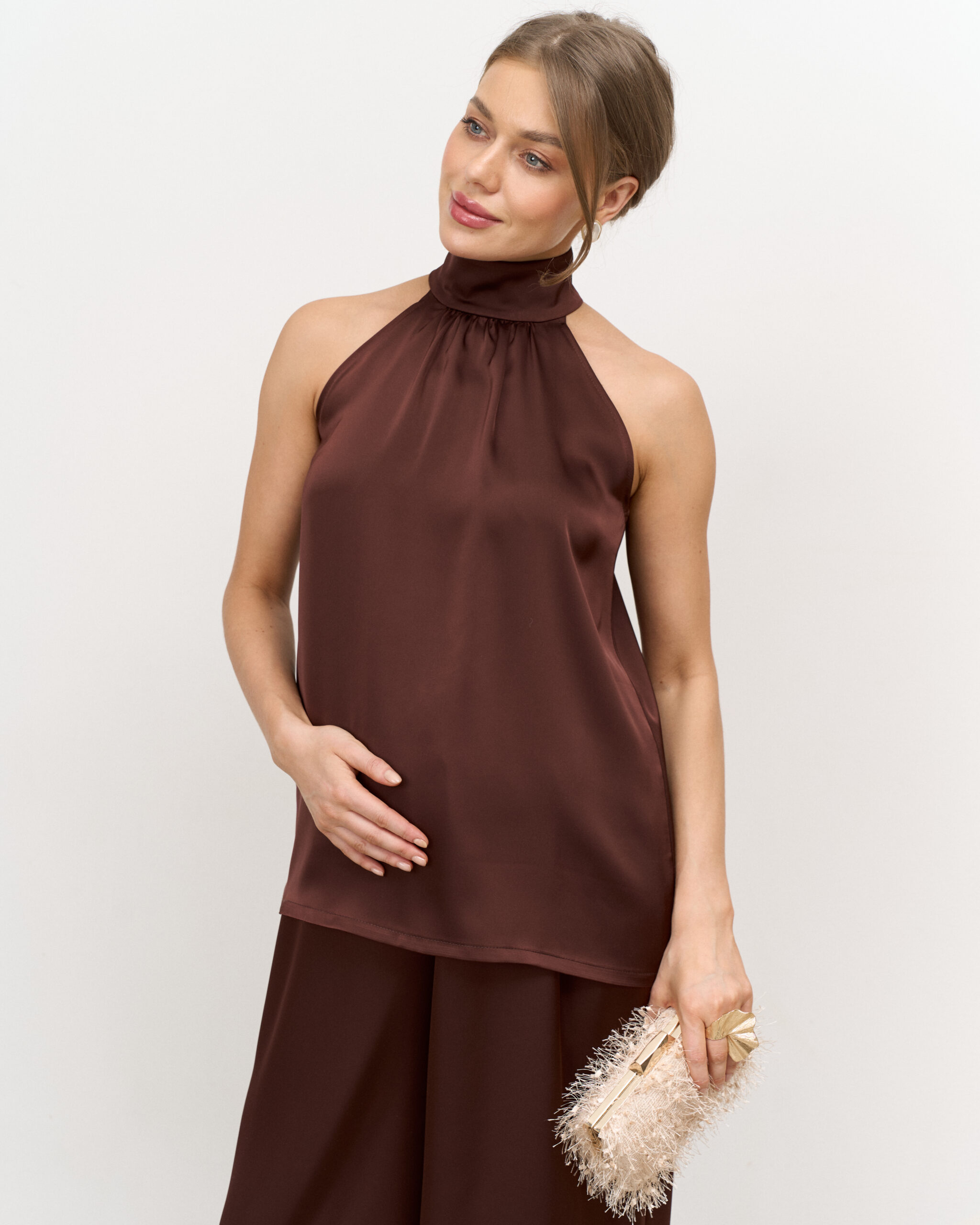 Шоколадный атласный топ-халтер Angelica