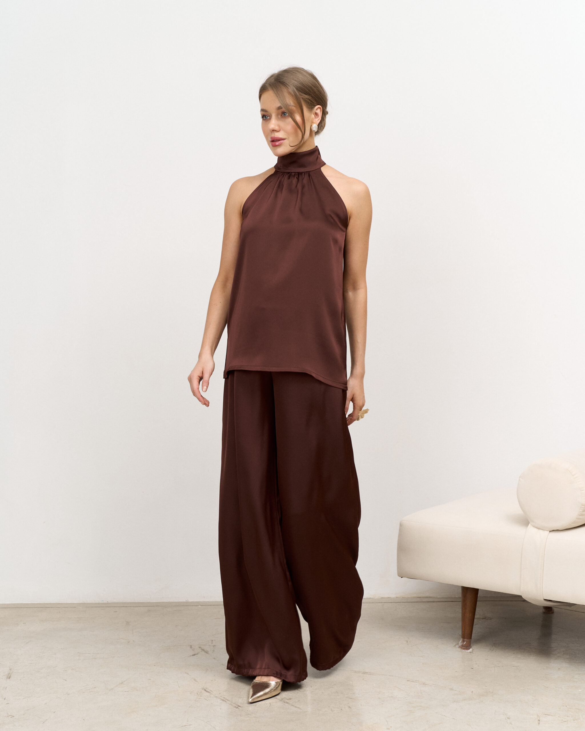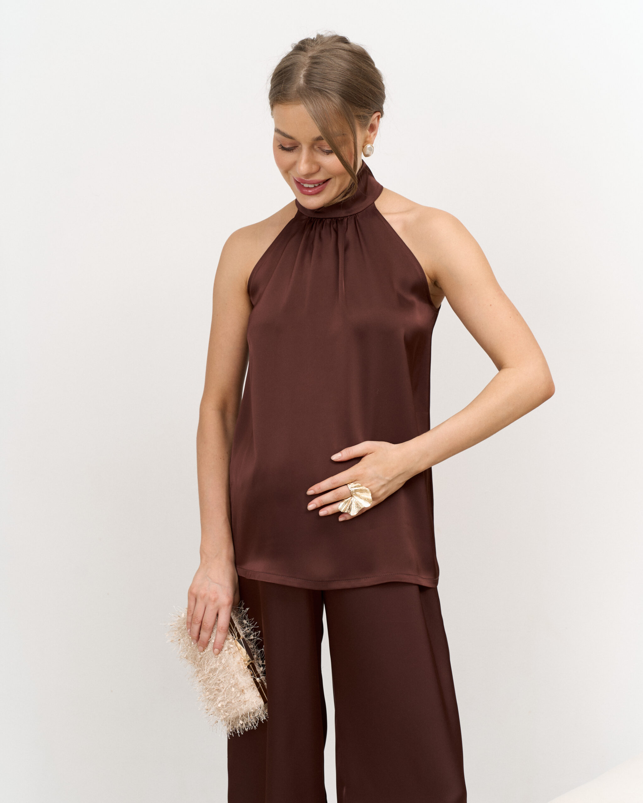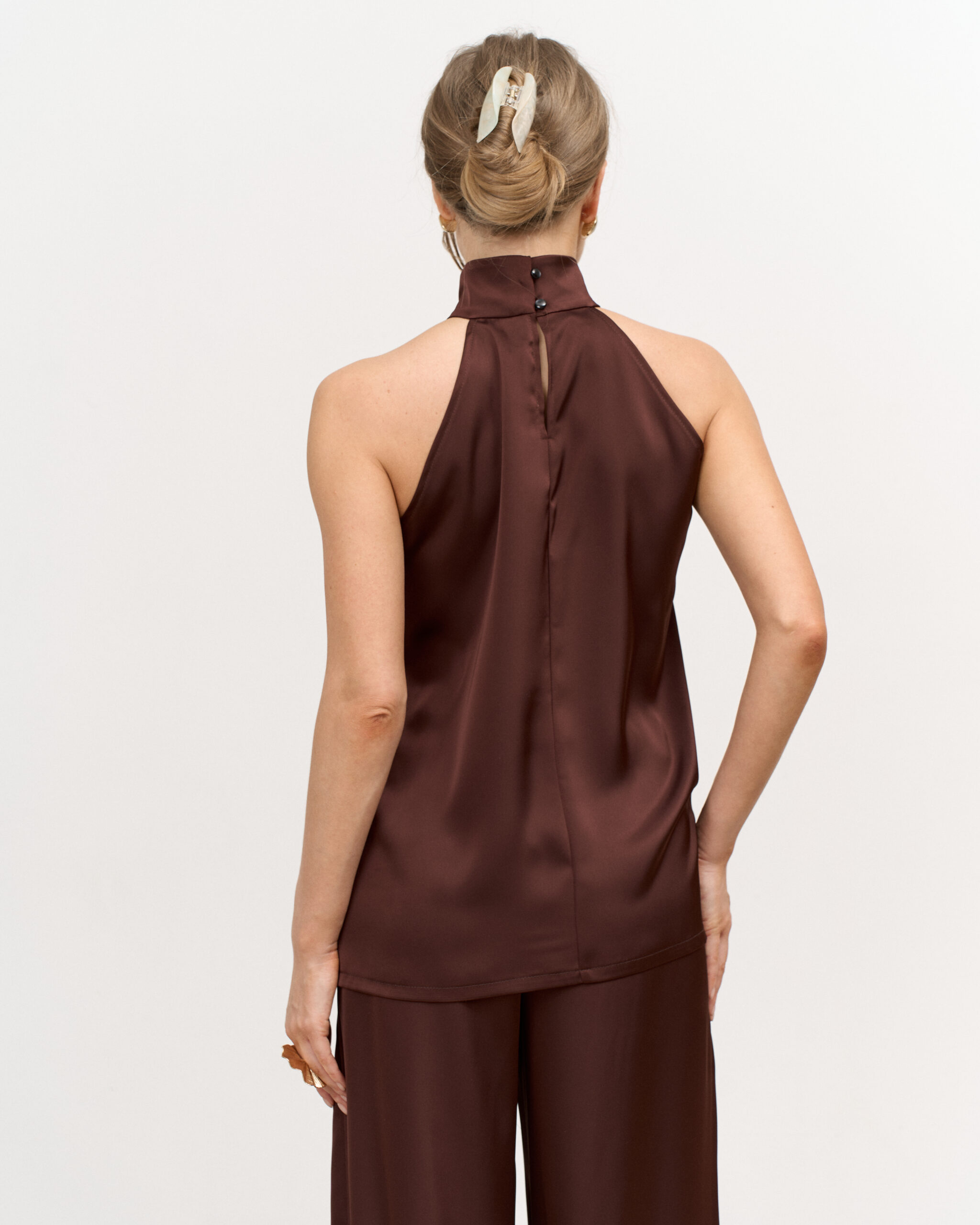 Шоколадный атласный топ-халтер Angelica