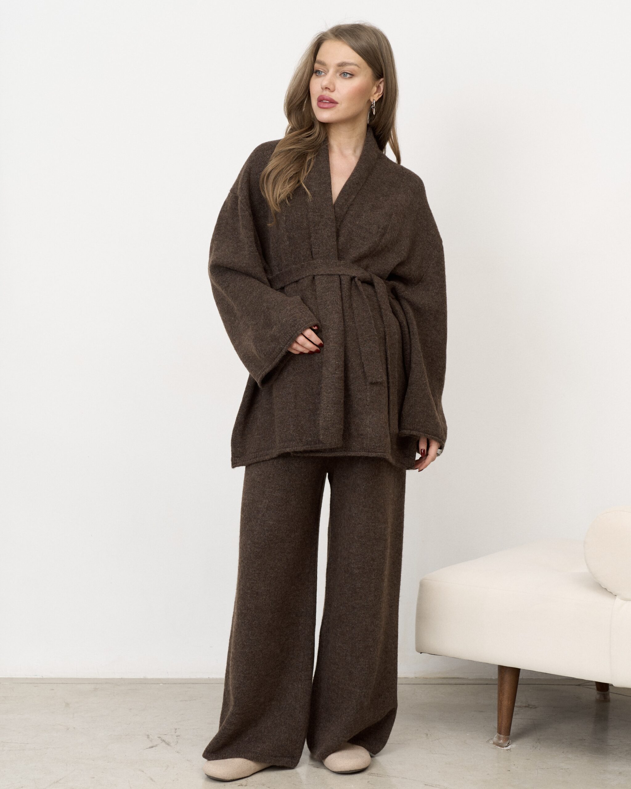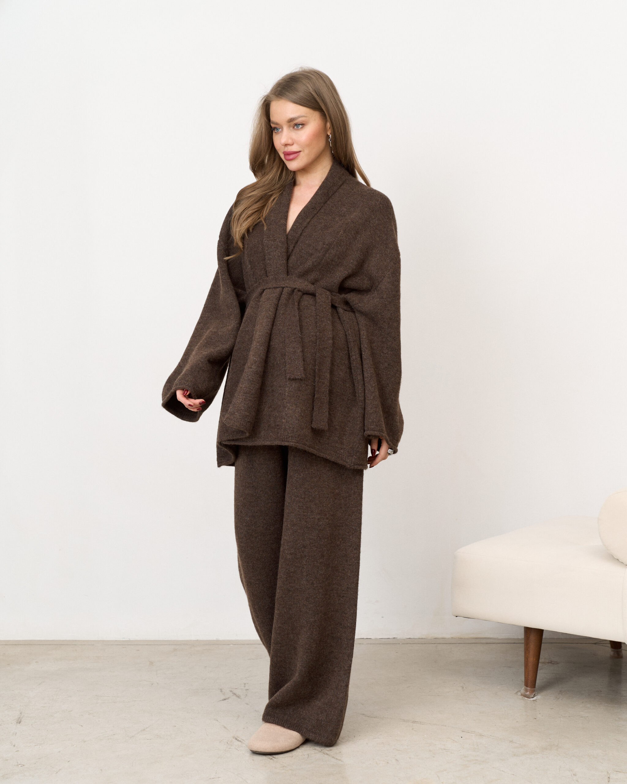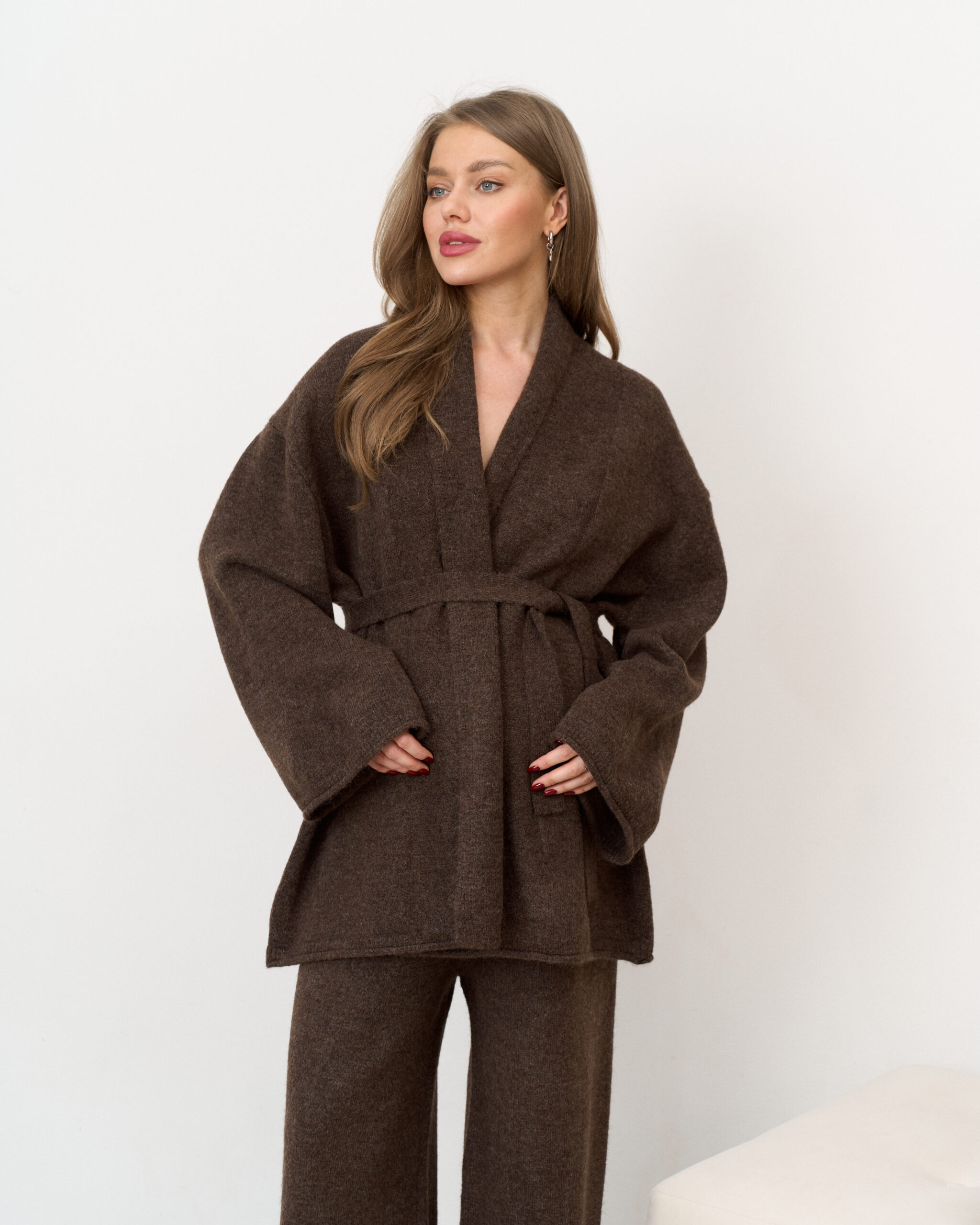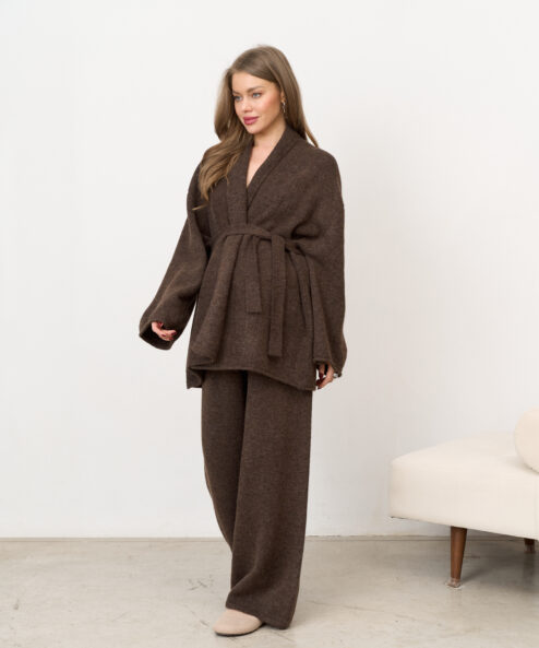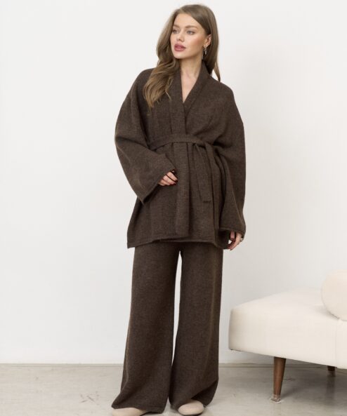 Шоколадный трикотажный костюм-кимоно Dali