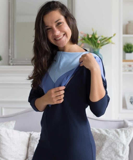 Синее платье для беременных и кормящих мам Gradient