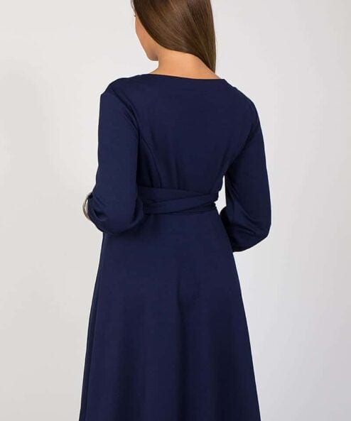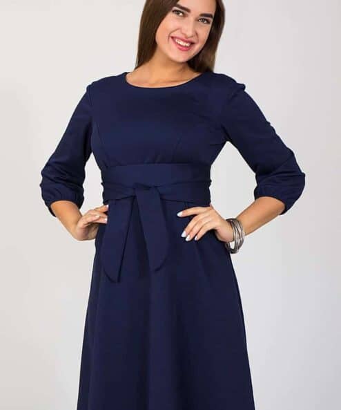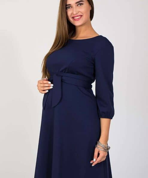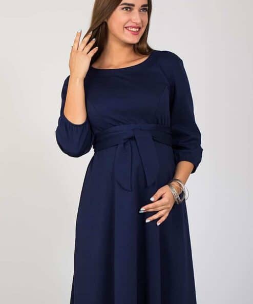 Это женственное платье для беременных и кормящих из трикотажа джерси подарит вам возможность чувствовать себя настоящей леди. Завышенная талия и расширенная юбка будут скрывать ваш животик во время беременности, а после рождения малыша весьма кстати окажутся потайные молнии в рельефах. Спущенное плечо, пышный рукав 3/4, юбка-полусолнце и пояс-кушак — интересные детали фасона при сдержанной цветовой гамме создают элегантный, классический образ.