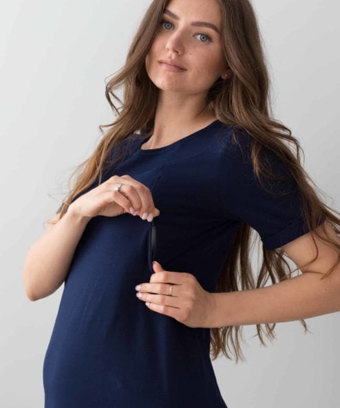 Платья из трикотажного хлопка с необычным шифоновым воланам — создаст отличное настроение. Комфортный крой-трапеция подойдёт на любом сроке беременности и после. Для ГВ — незаметные молнии.