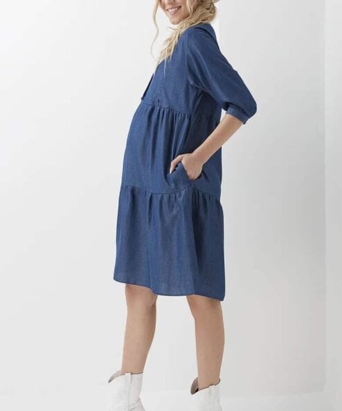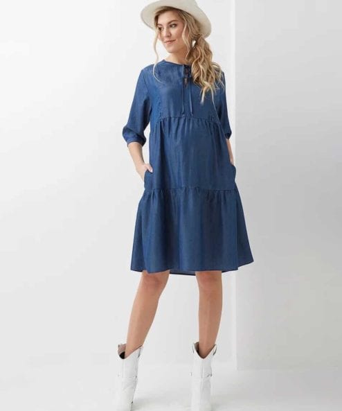 Синее платье с бантом для будущих и кормящих мам Georgia