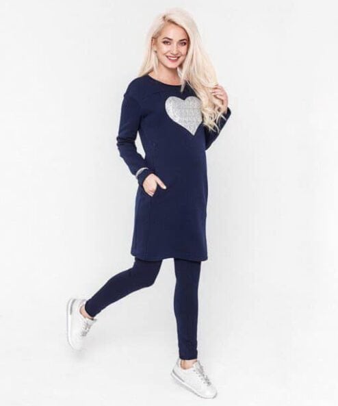Оригинальное и теплое платье-туника для беременных и кормящих из трикотажа трехнитка с начесом. Благодаря аппликации с пайетками на груди эта модель не оставит вас незамеченной, а благодаря мягкой и теплой ткани, свободному фасону и незаметным секретам для кормления (потайные молнии в нагрудных рельефах) — подарит вам невероятный комфорт. Отделка контрастной тканью удачно дополняют модель. А сочетая с разнообразными аксессуарами она великолепно подойдет на все случаи жизни — от прогулок до выходов в свет.