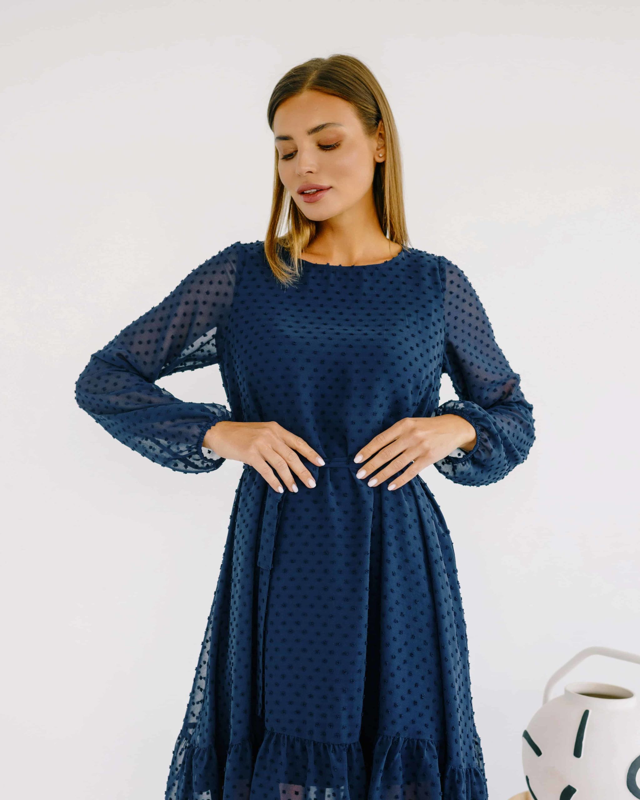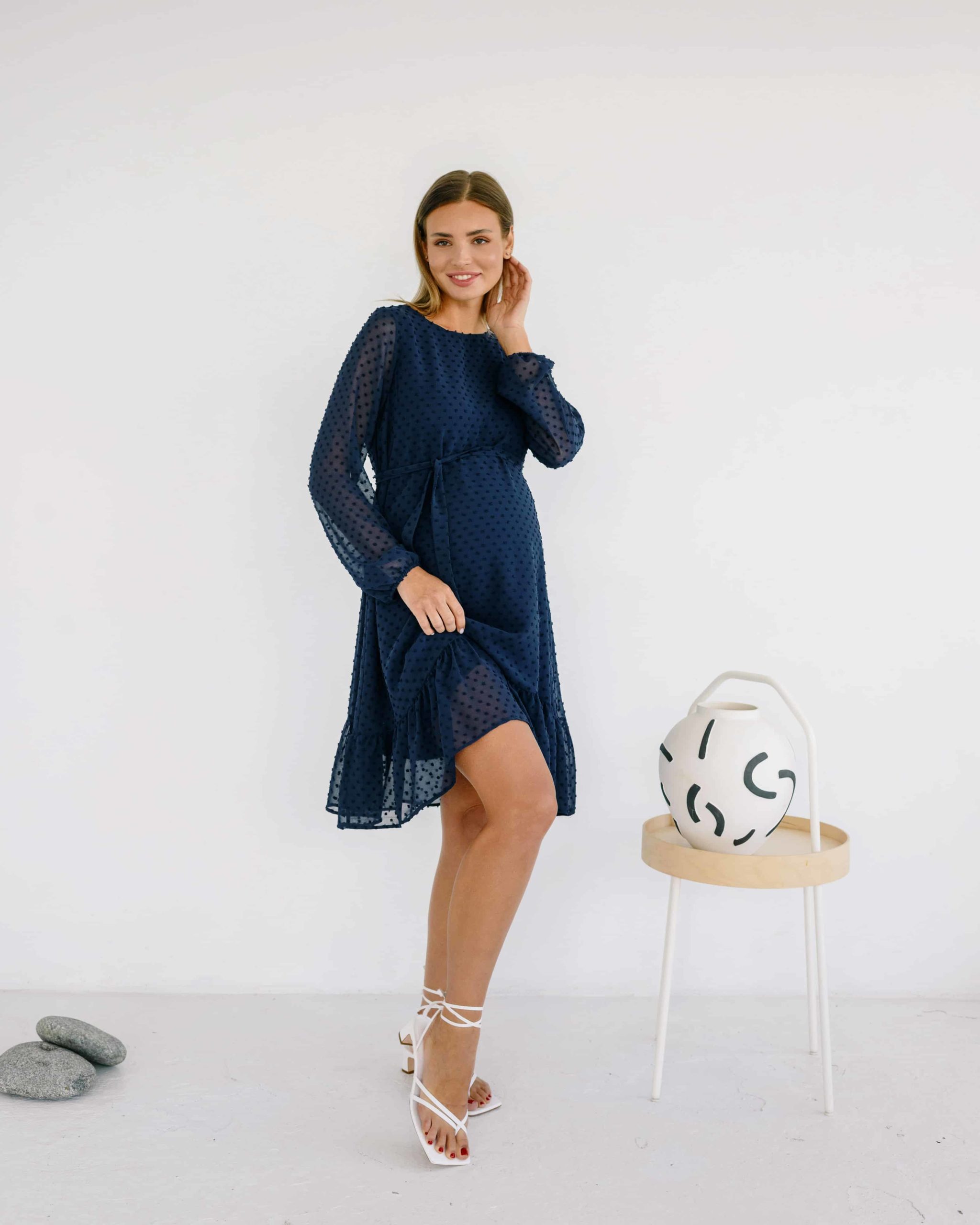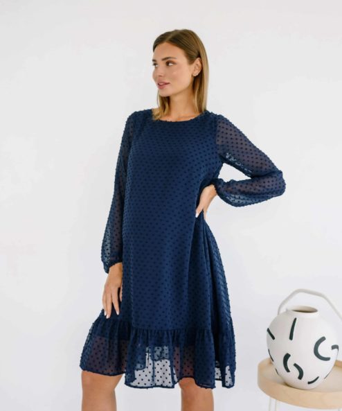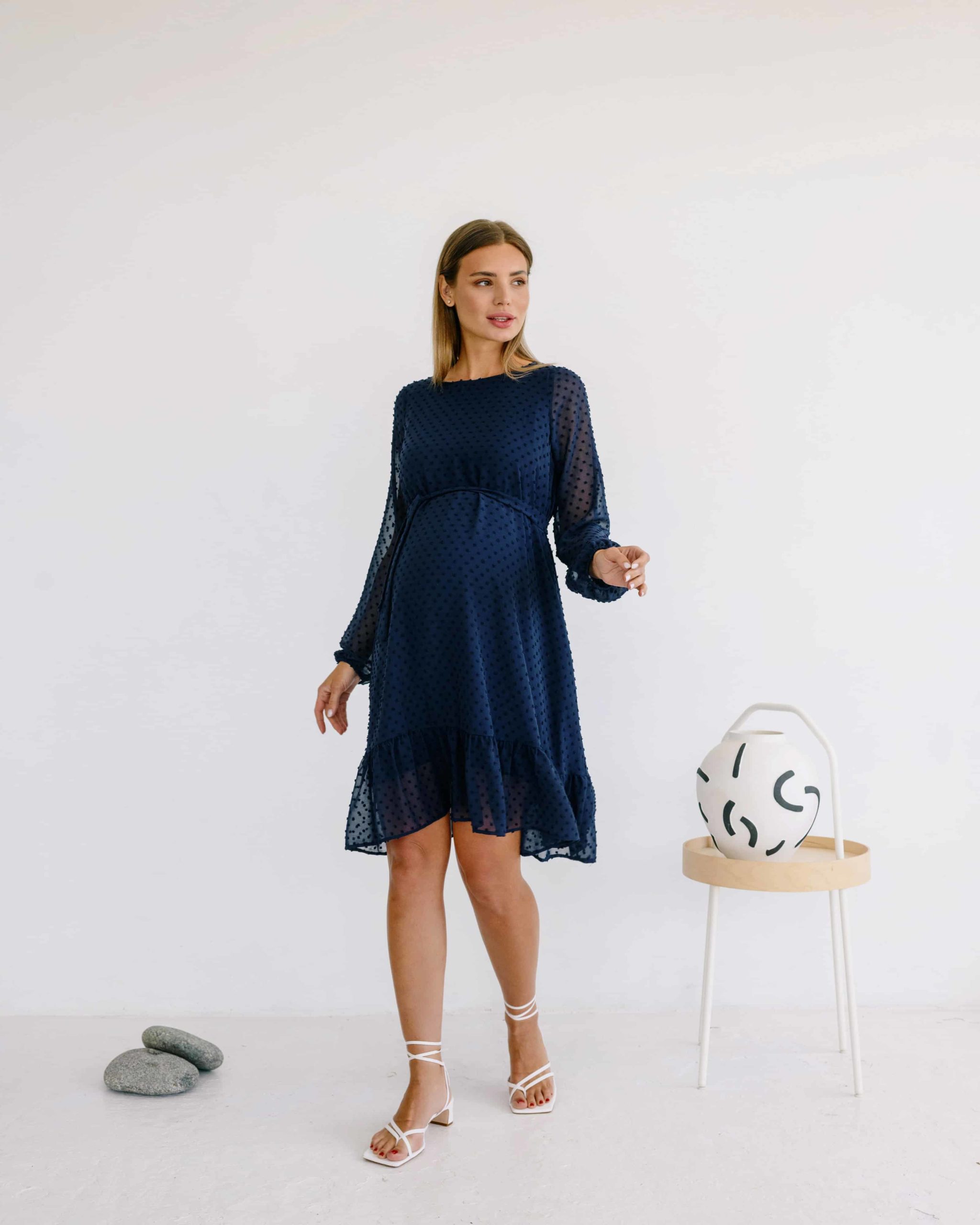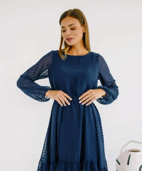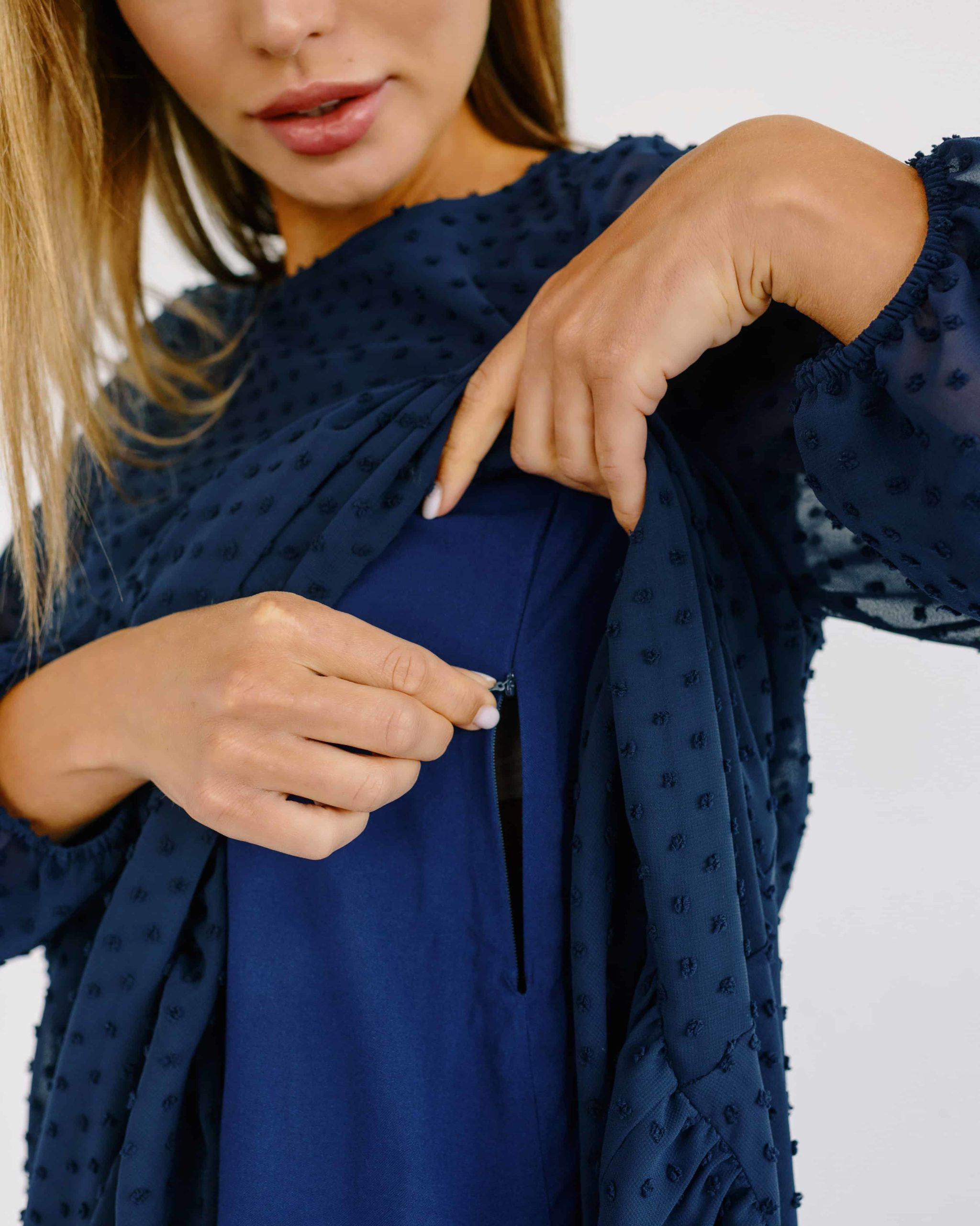 Синее воздушное платье для будущих и кормящих мам Bellini