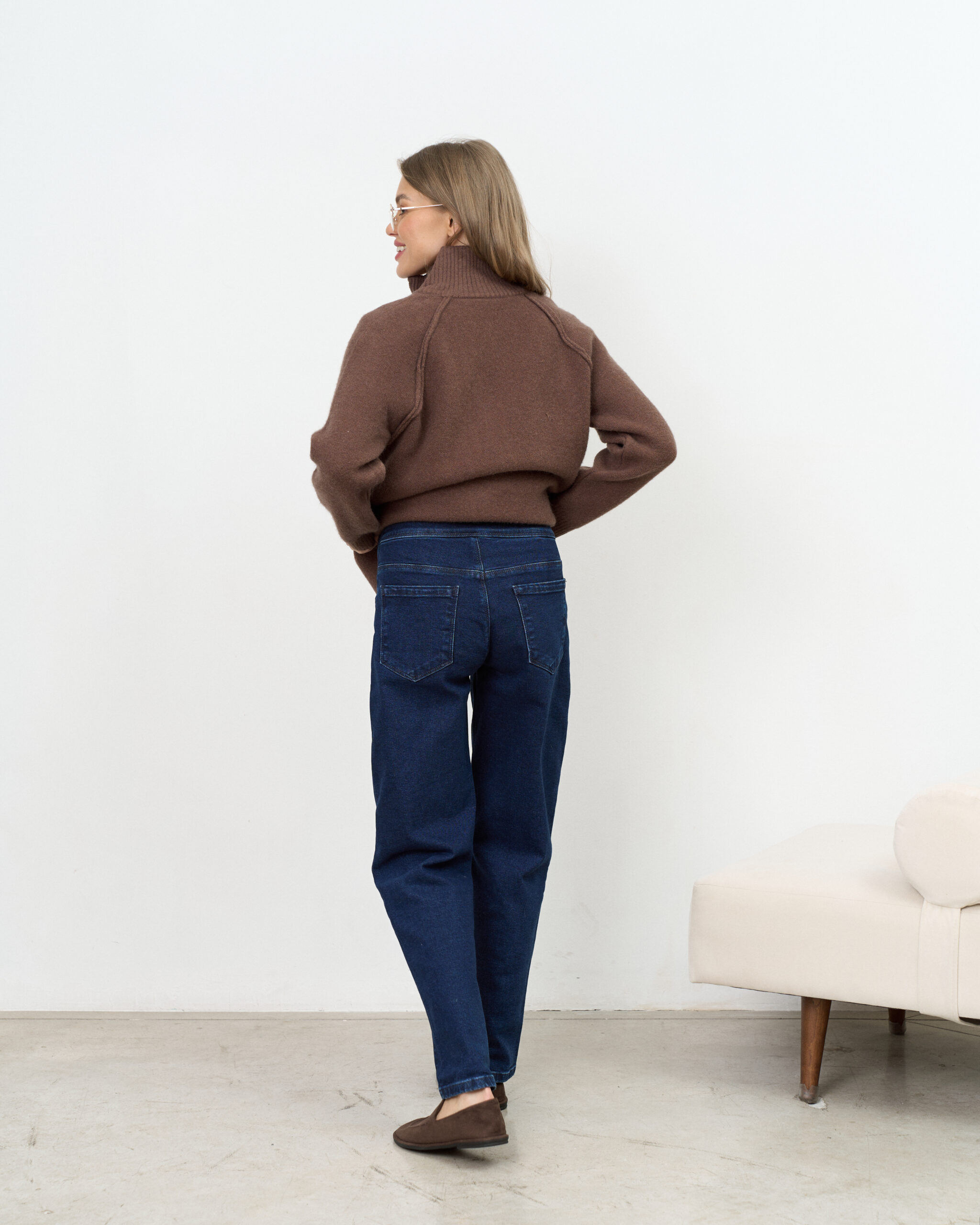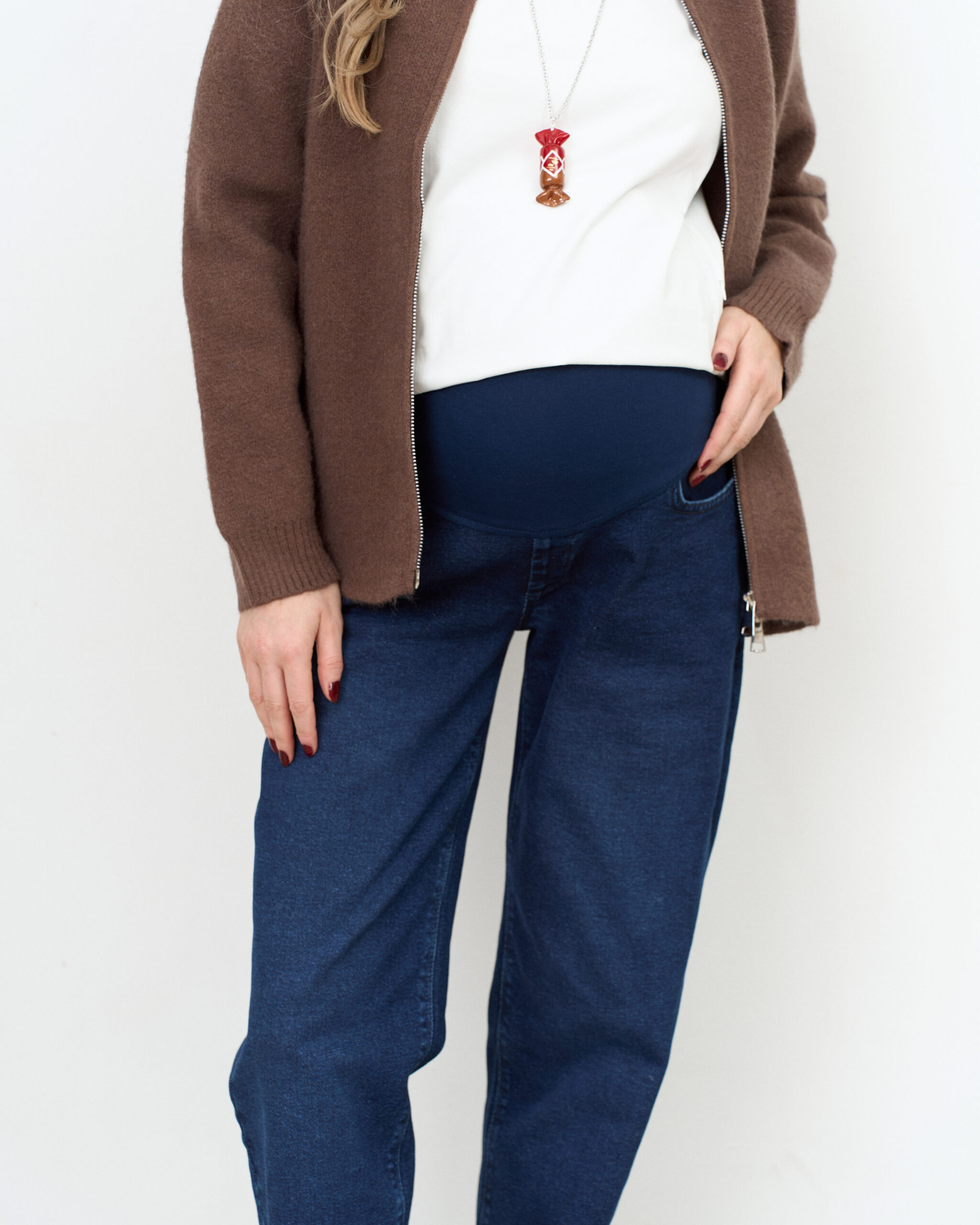 Стильные джинсы-moms для беременных из плотной джинсы — отличный вариант для любого времени года. Удобная и комфортная модель на все случаи жизни. Специальный трикотажный пояс с регулировкой объема позволяет носить эту модель всю беременность.