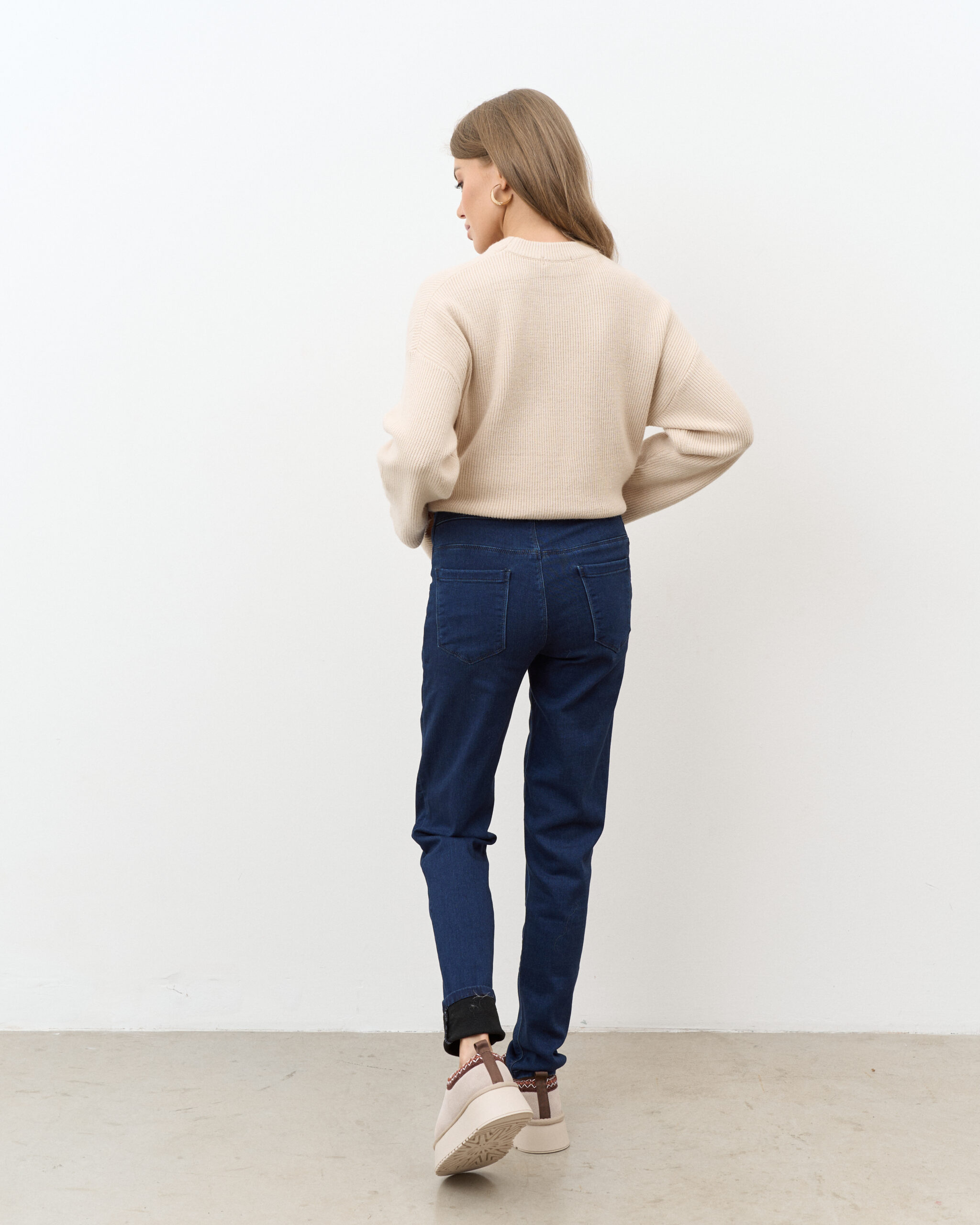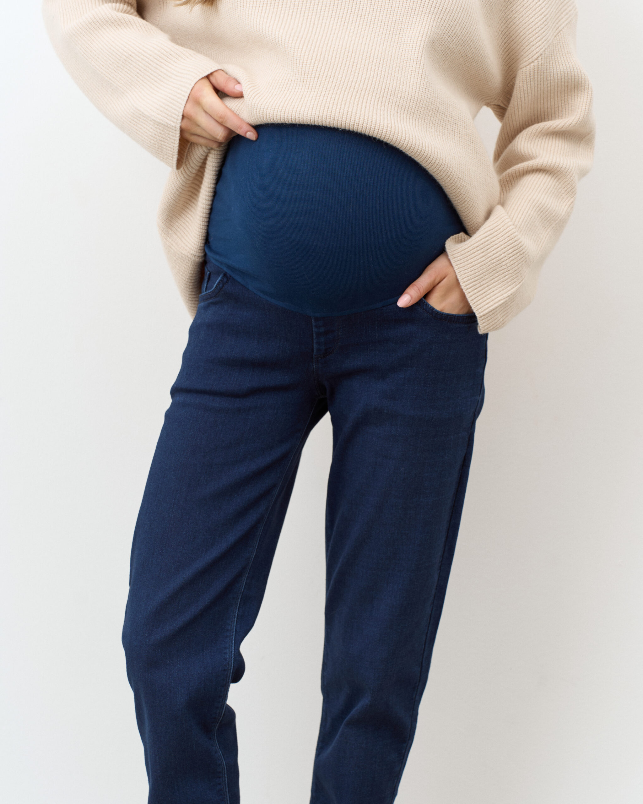 Утепленные джинсы-moms для беременных из плотной джинсы — отличный вариант для холодного времени года. Удобная и комфортная модель на все случаи жизни. Специальный трикотажный пояс с регулировкой объема позволяет носить эту модель всю беременность.