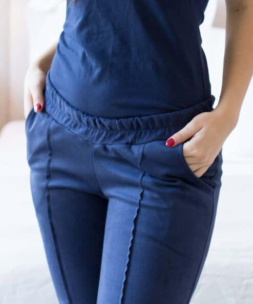 Брючки с мягким удобным пояском, сделанным специально под растущий животик. В комплекте можно приобрести свитшот Infinity.