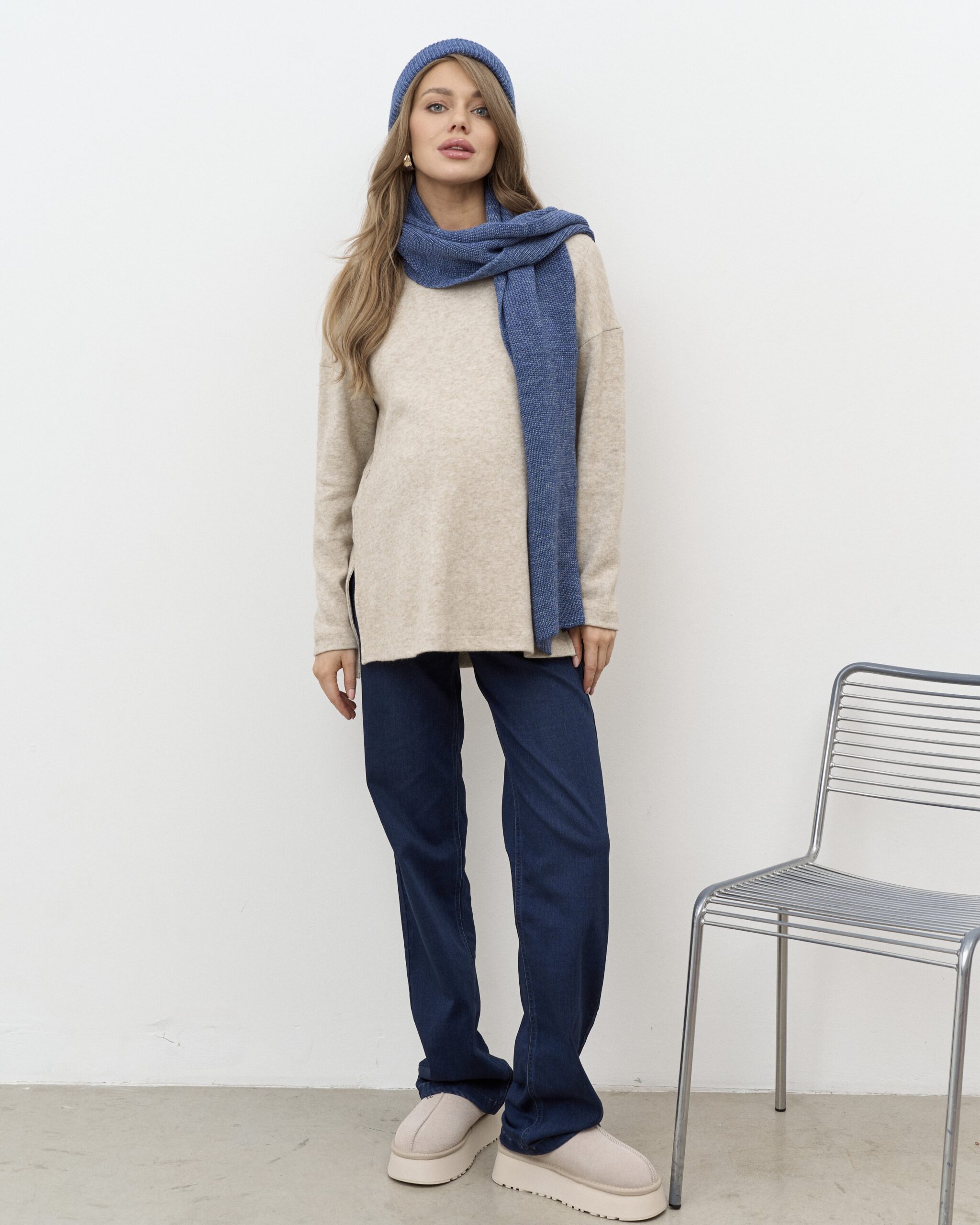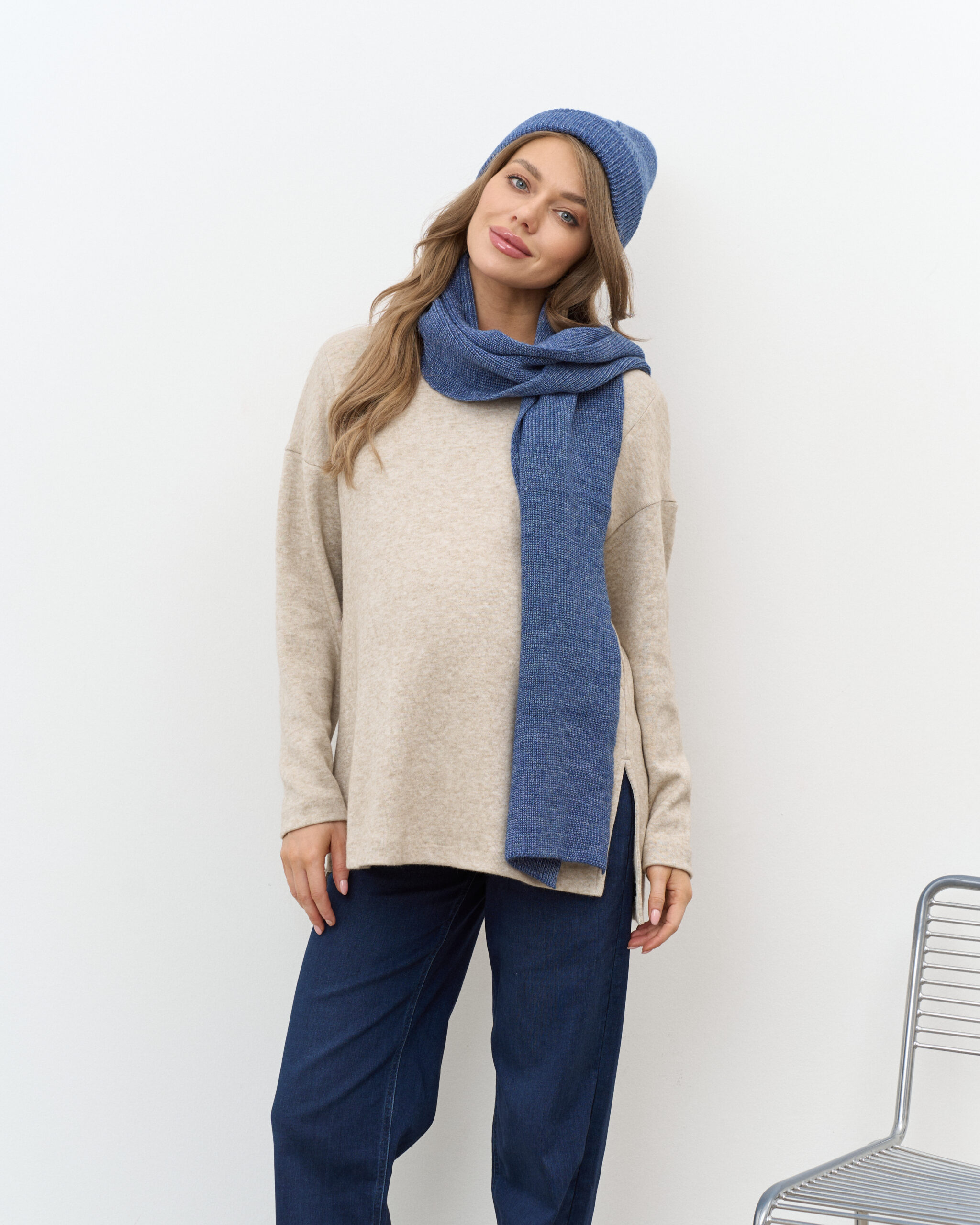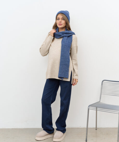 Незаменимый комплект для прохладной погоды, состоящий из шапки-бини и длинного шарфа. Не колется и не скатывается. Подходит на погоду от -10 до +10 градусов