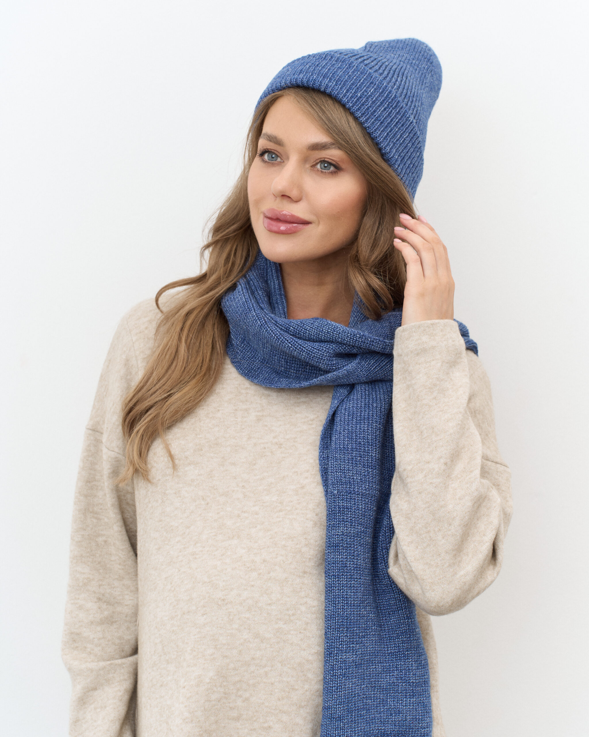 Синий комплект из шапки и шарфа Frost