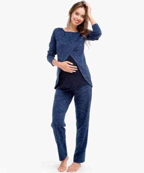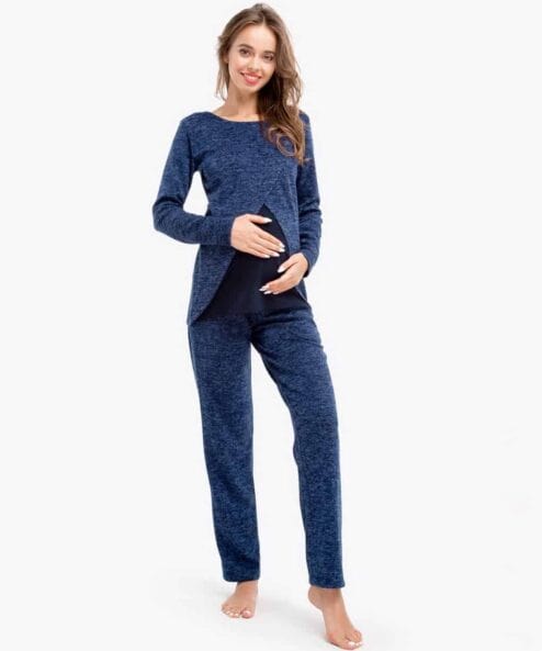 Удобный трикотажный костюм, состоящий из брючек свободного кроя и джемпера с секретом для кормления.
