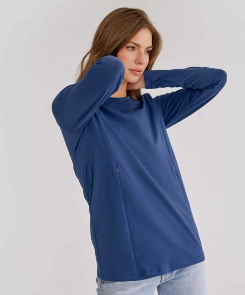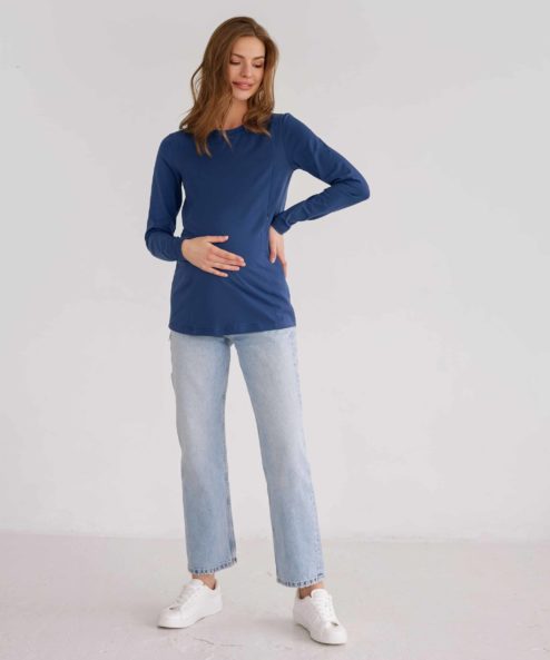 Базовый лонгслив из хлопкового трикотажа, который подойдет на весь период беременности и после. Для кормления малыша предусмотрены вертикальные молнии.