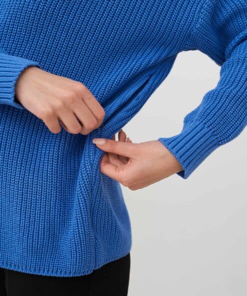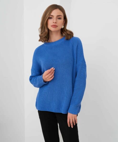 Хлопковый свитер с круглой горловиной и спущенной линией плеч, который подойдет на любой срок беременности и после. Мягкая эластичная вязка и натуральный состав пряжи подарят комфорт в любое время года. А приятные базовые цвета и актуальный крой позволят создать стильные образы. Для кормления малыша предназначены потайные молнии в боковых швах.