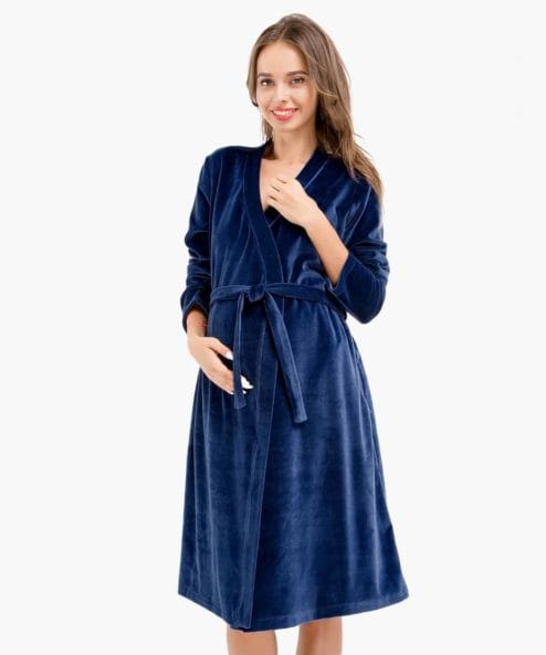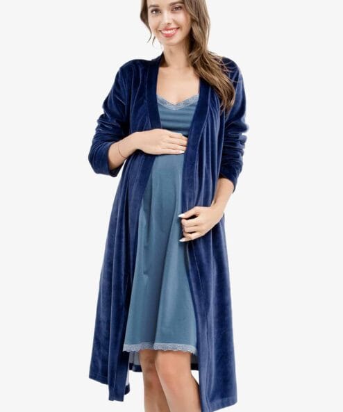Синий велюровый халат для будущих и кормящих мам Pronto