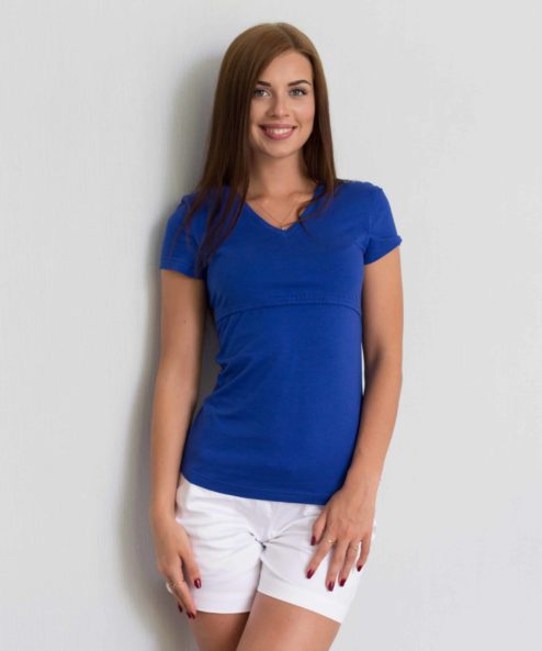 Облегающая футболка для кормящих из хлопкового трикотажа (секрет кормления — верхняя деталь полочки заходит на нижнюю деталь). Базовая модель с удобным и незаметным секретом, которую освежает V-образная горловина. Подходит для беременных и кормящих мам.