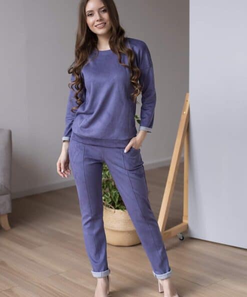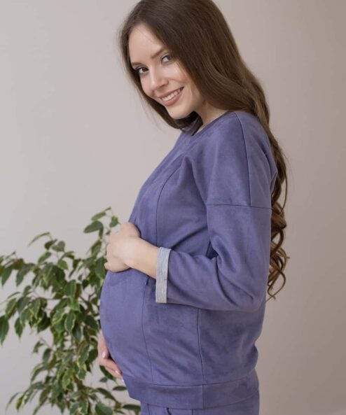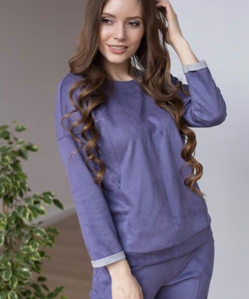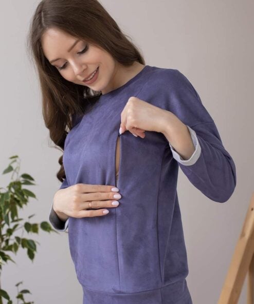 Сиреневый замшевый костюм для беременных и кормящих мам Laisa