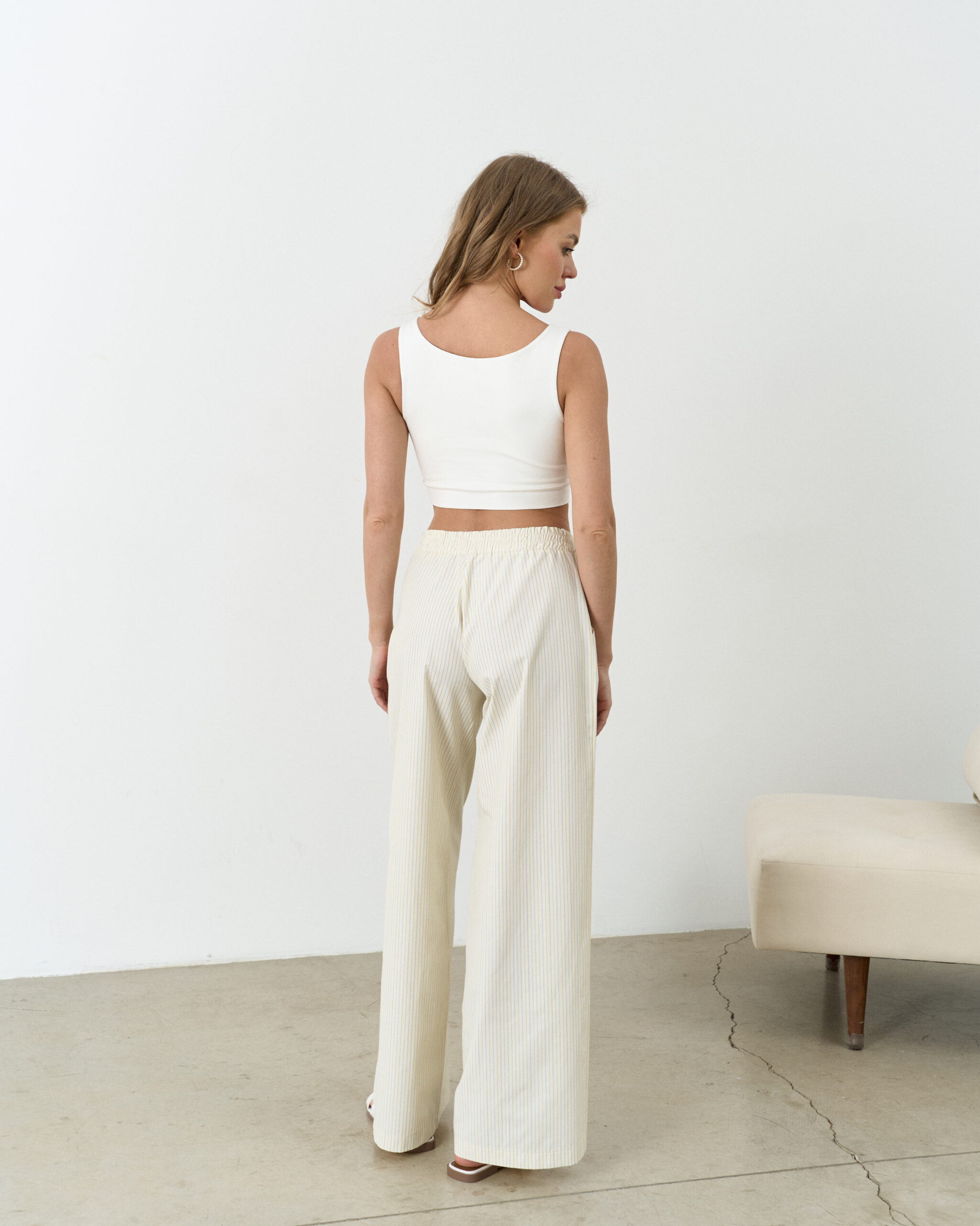 Стильные брюки прямого кроя из легкой хлопковой ткани, которая прекрасно держит форму.