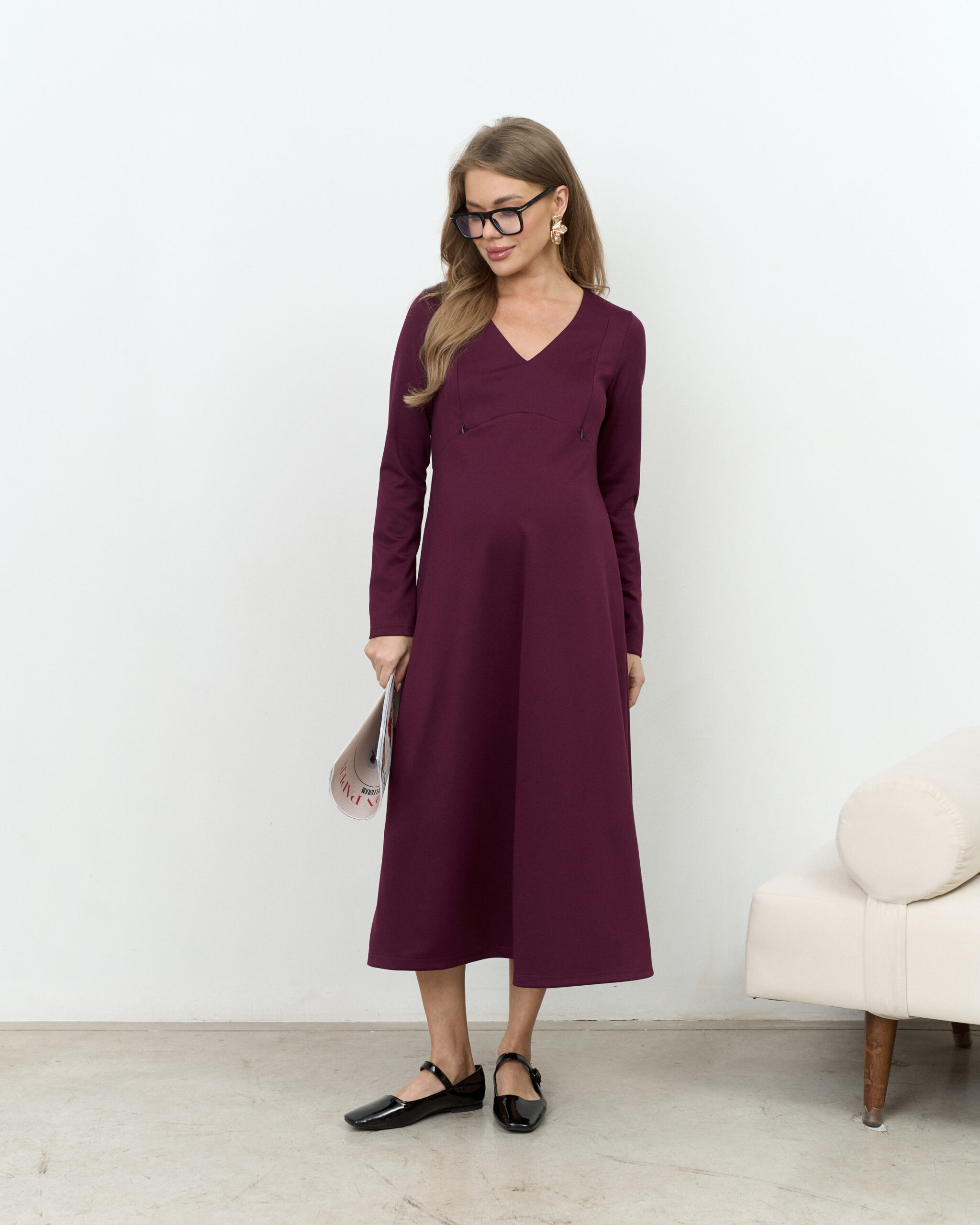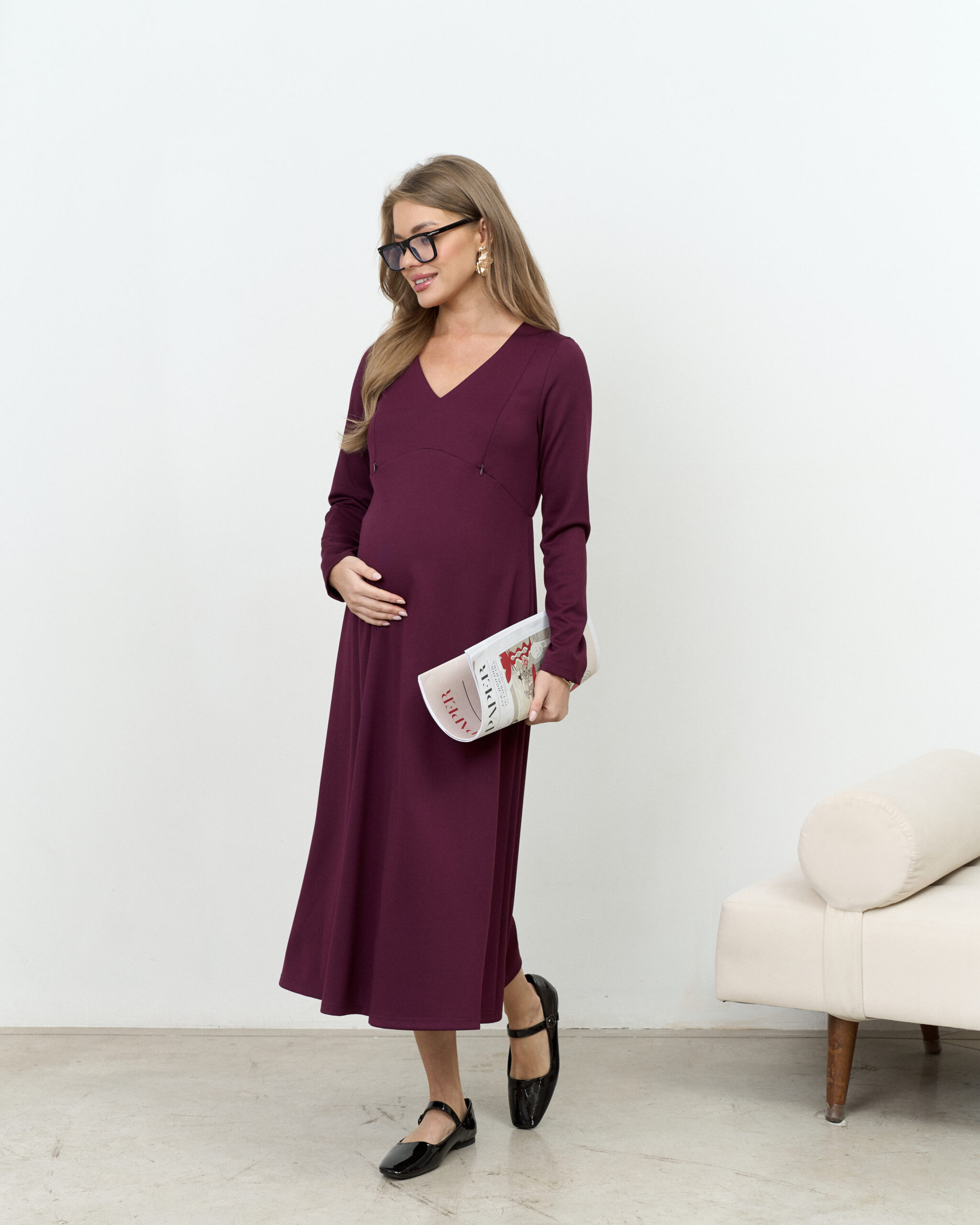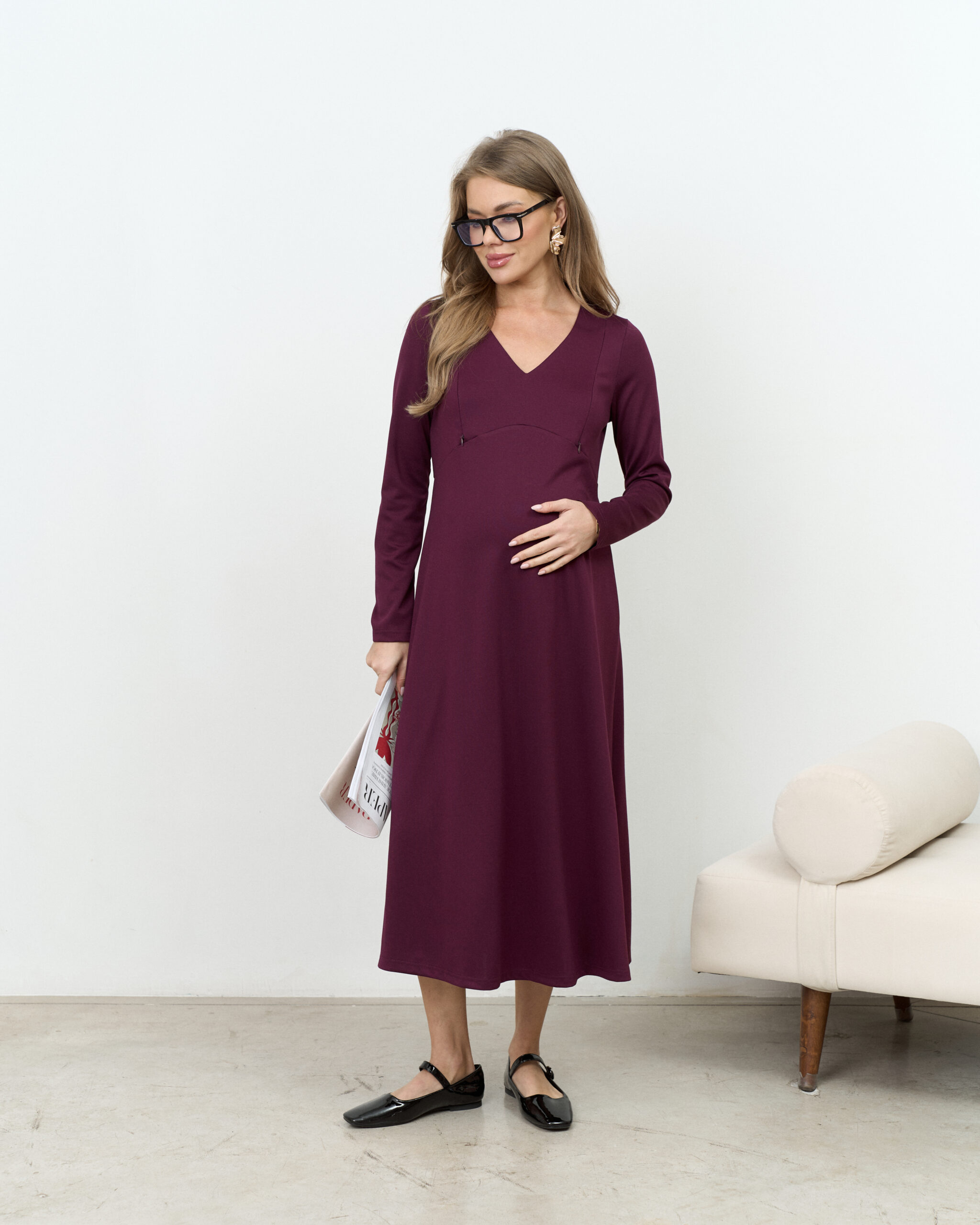 Сливовое платье для будущих и кормящих мам Azalia