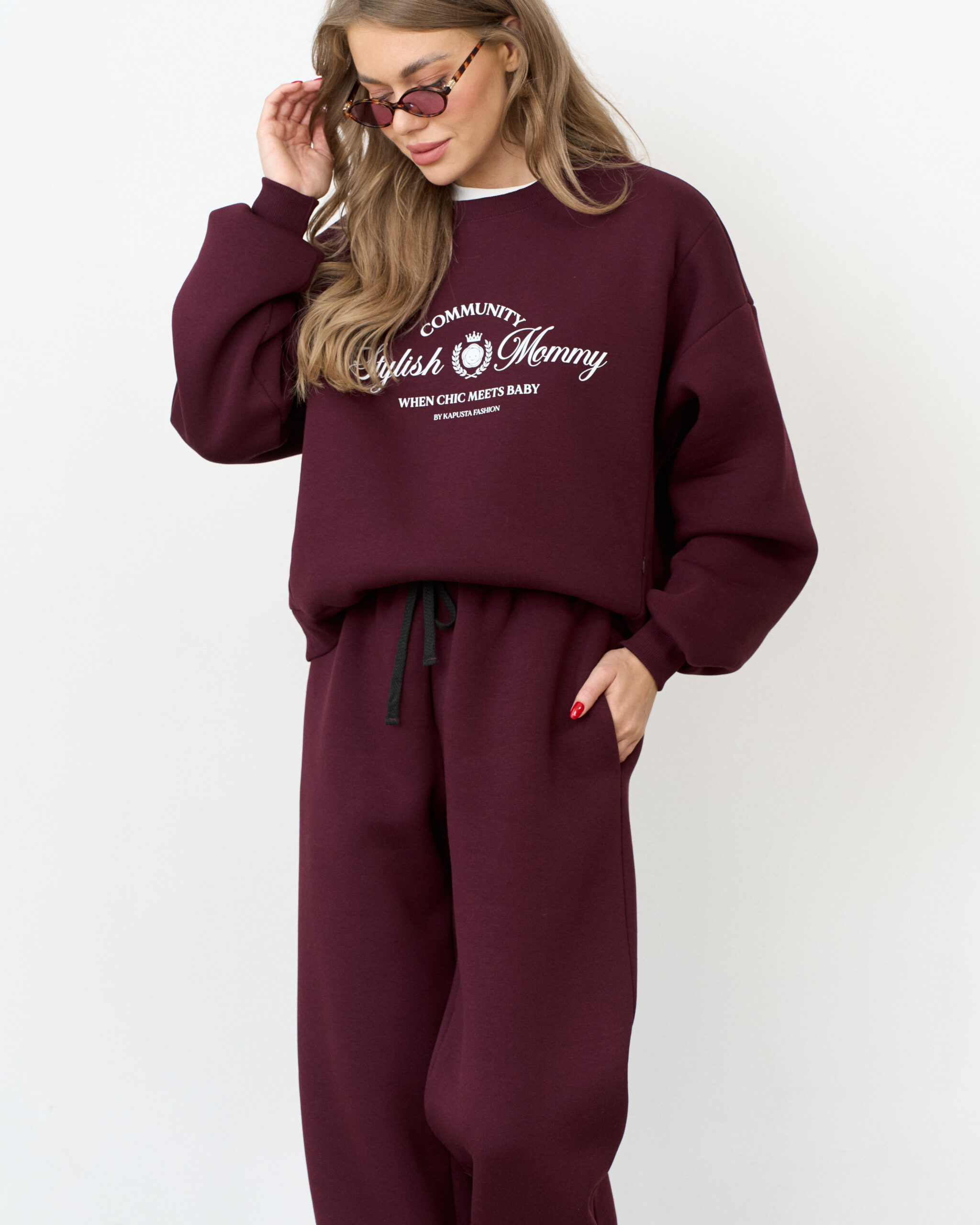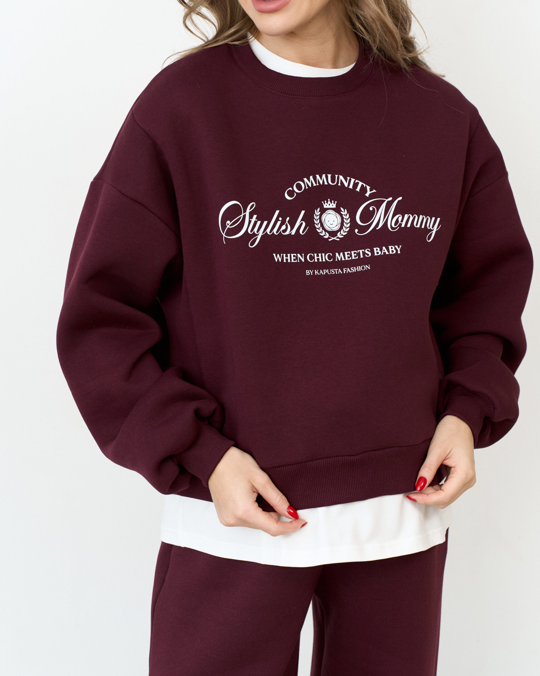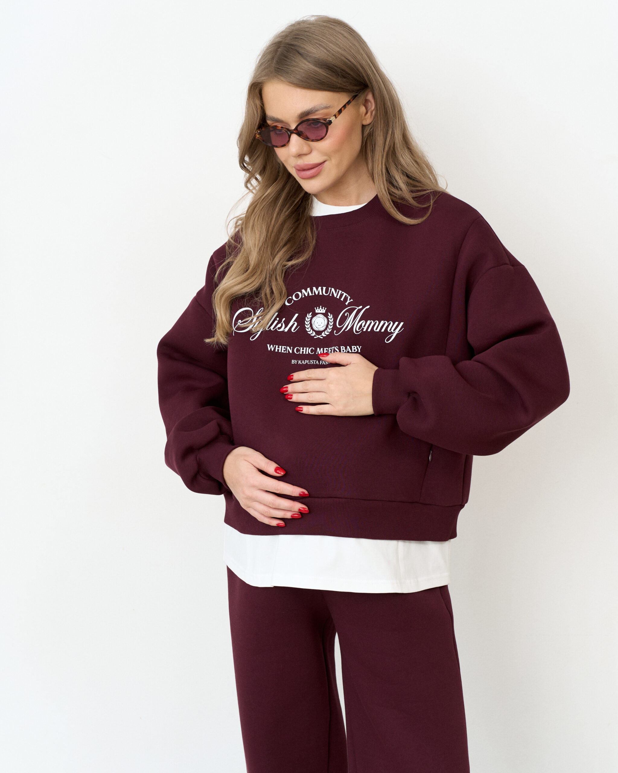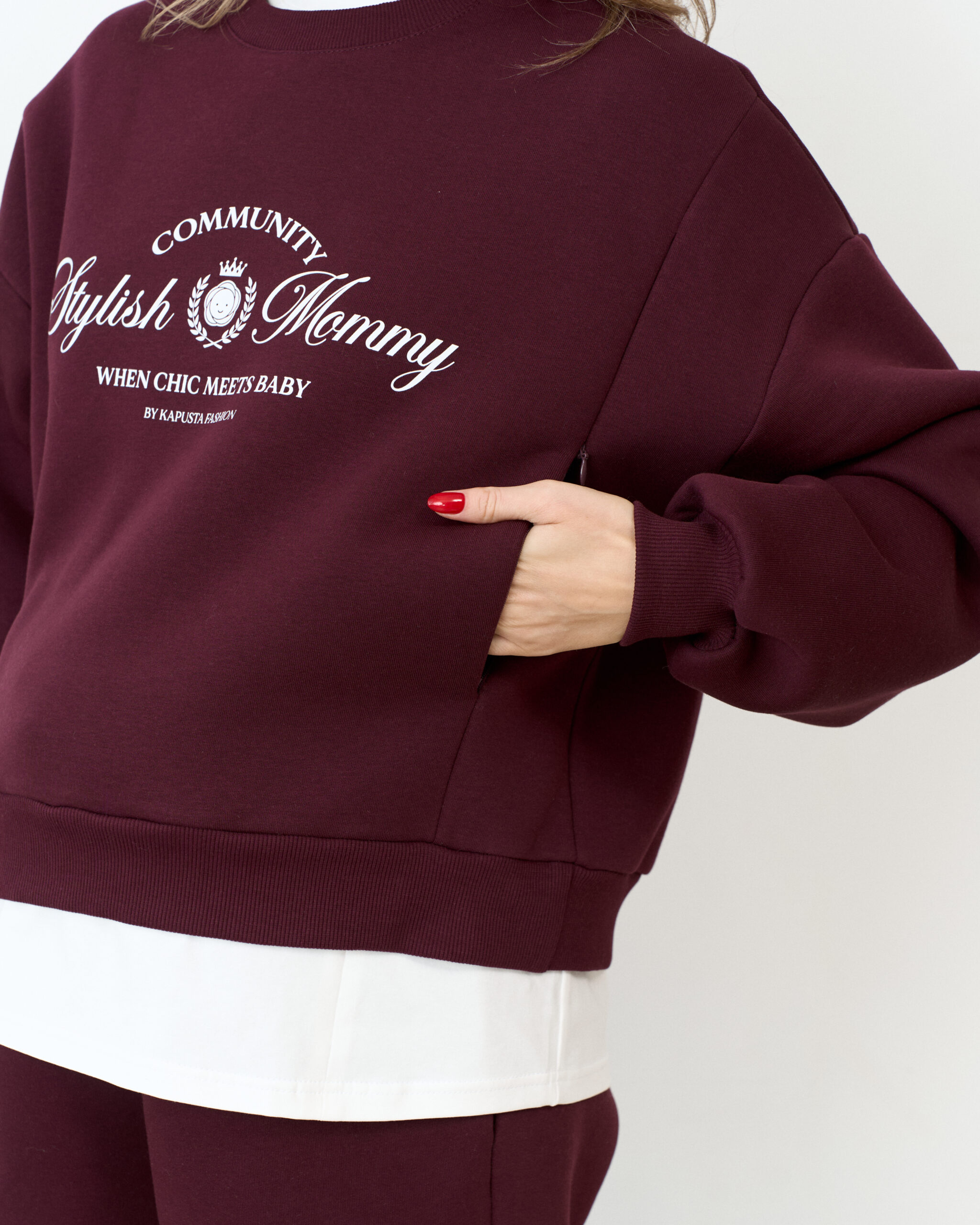 Сливовый теплый свитшот для будущих и кормящих мам Stylish Mommy