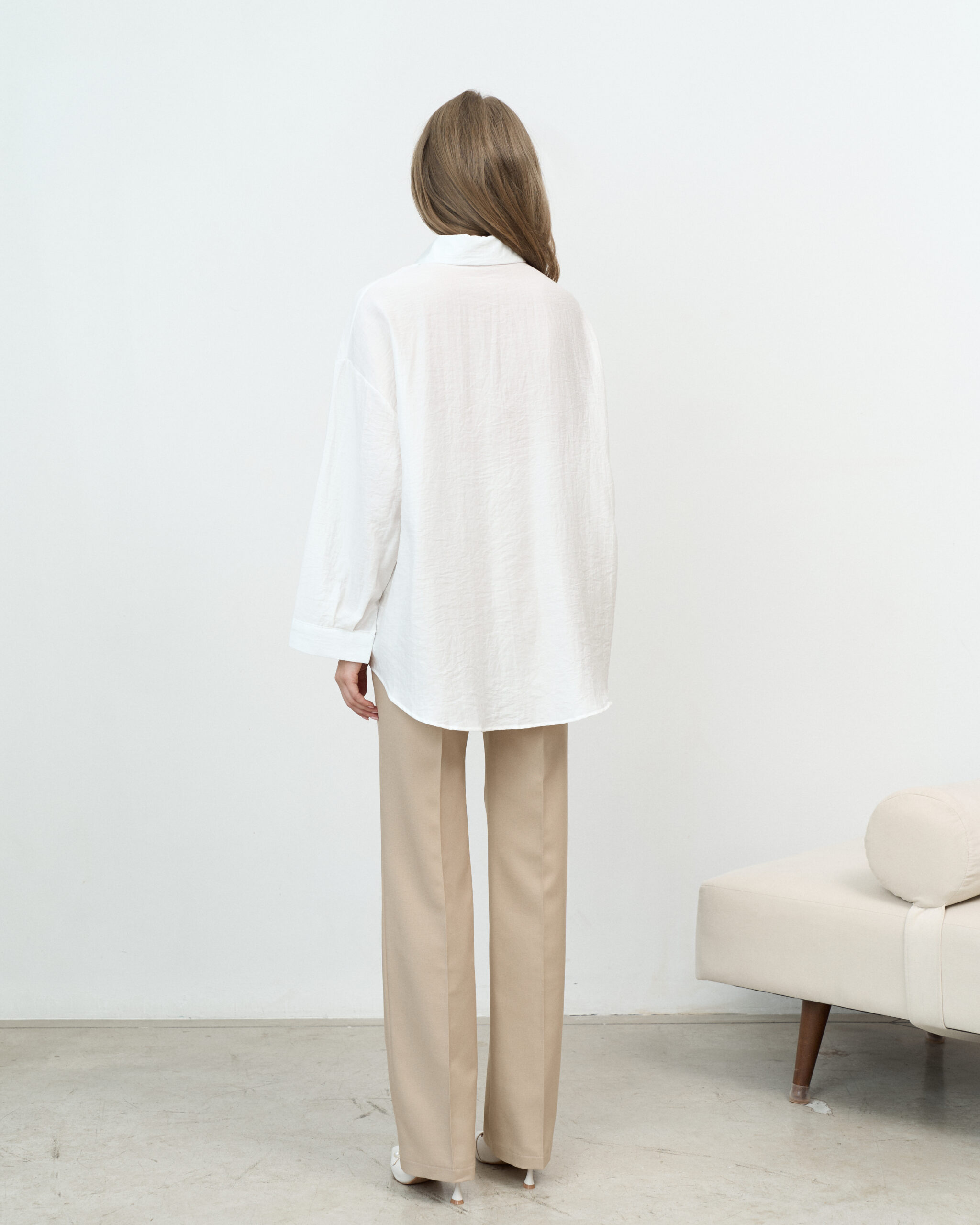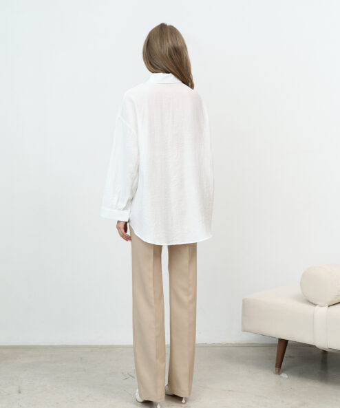Базовые брюки прямого кроя из плотной костюмной ткани, которая прекрасно держит форму.
