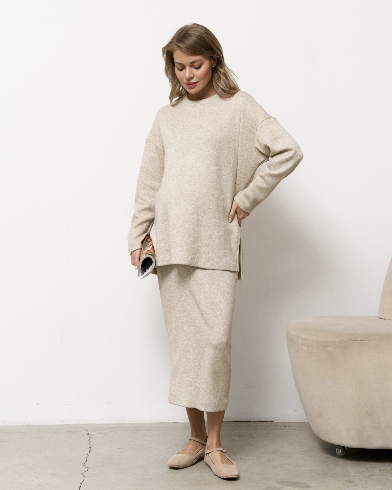 Светло-бежевая теплая юбка для будущих и кормящих мам Trendy