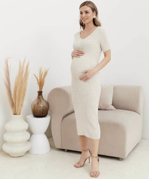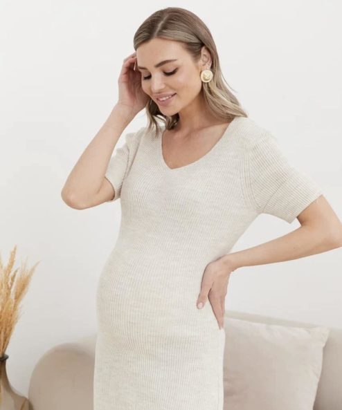 Базовое платье из вязаного трикотажа, которое подойдет на любой срок беременности и после. Идеально на каждый день. Можно носить с кедами, босоножками и даже туфлями.