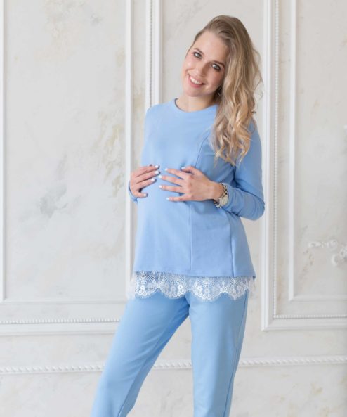 Голубой свитшот с кружевом для беременных и кормящих мам Summer Lace