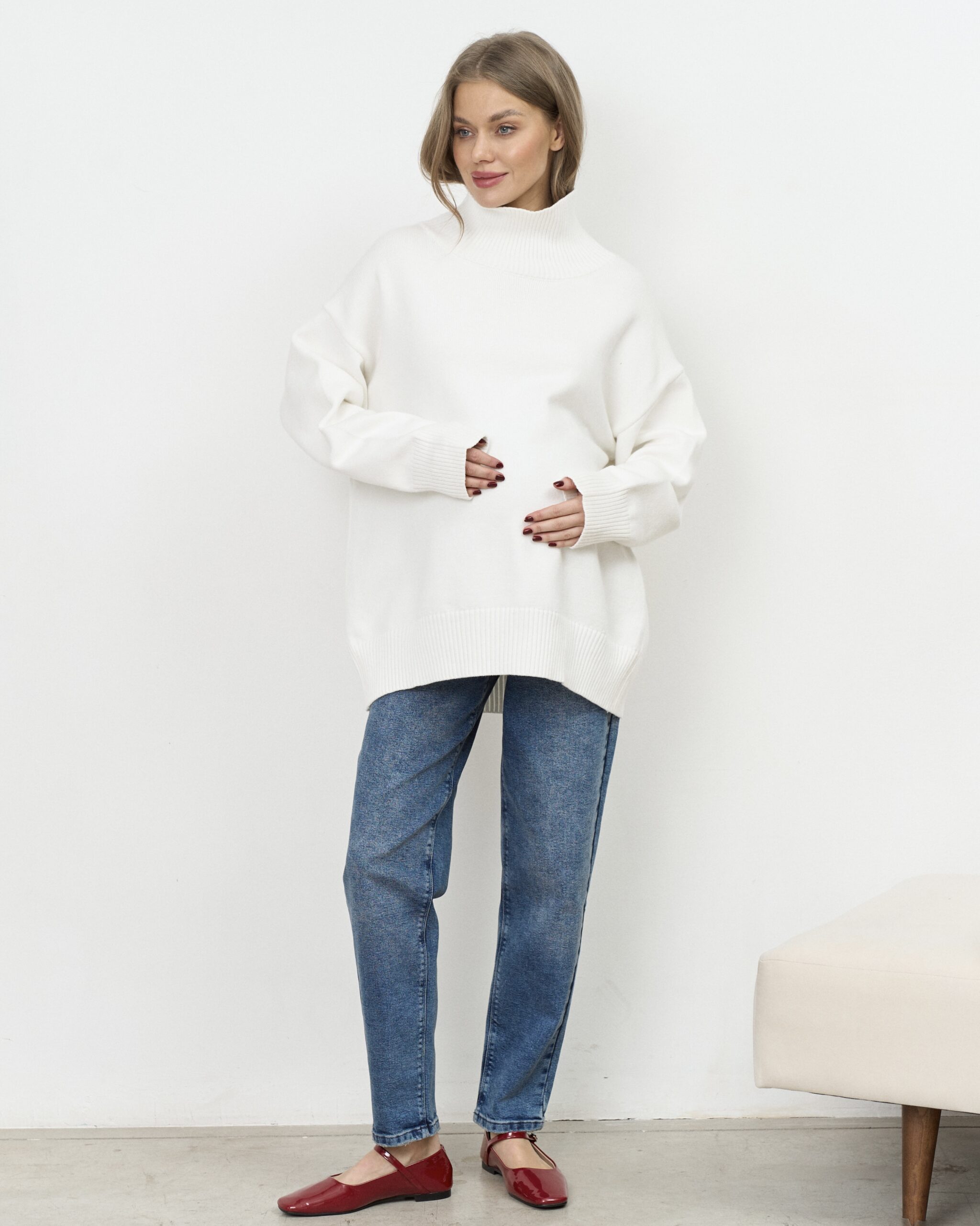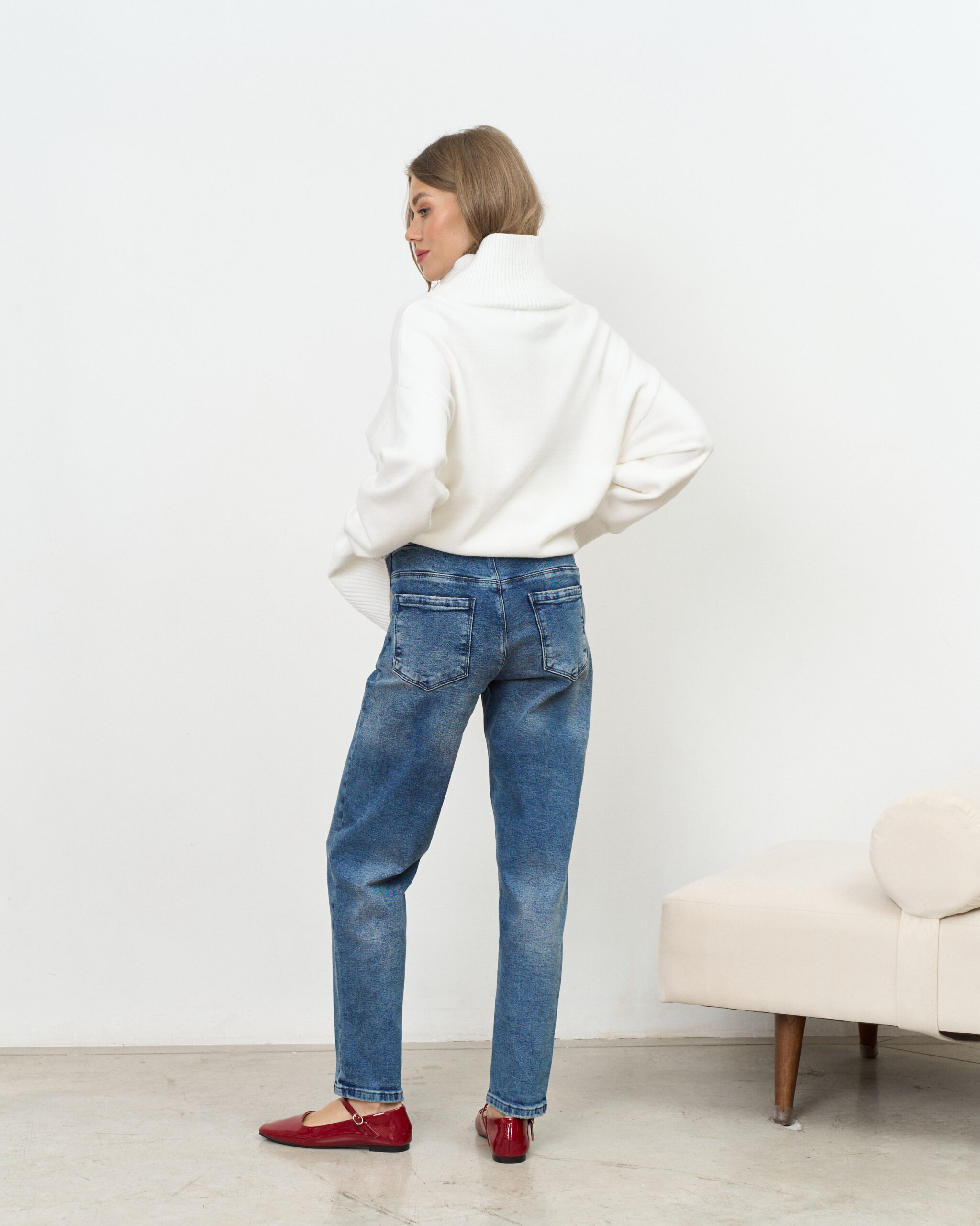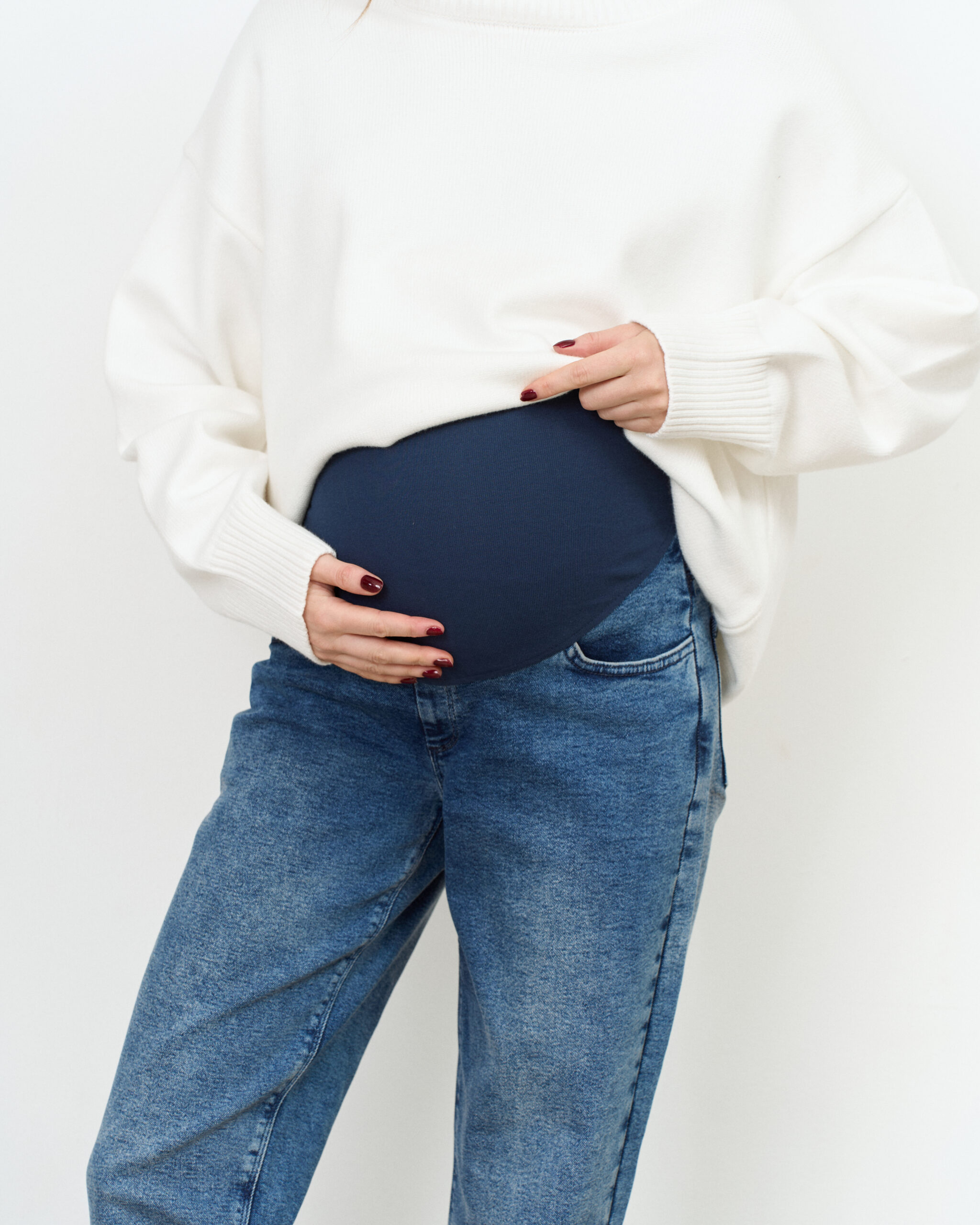 Стильные джинсы-moms для беременных из плотной джинсы — отличный вариант для любого времени года. Удобная и комфортная модель на все случаи жизни. Специальный трикотажный пояс с регулировкой объема позволяет носить эту модель всю беременность.