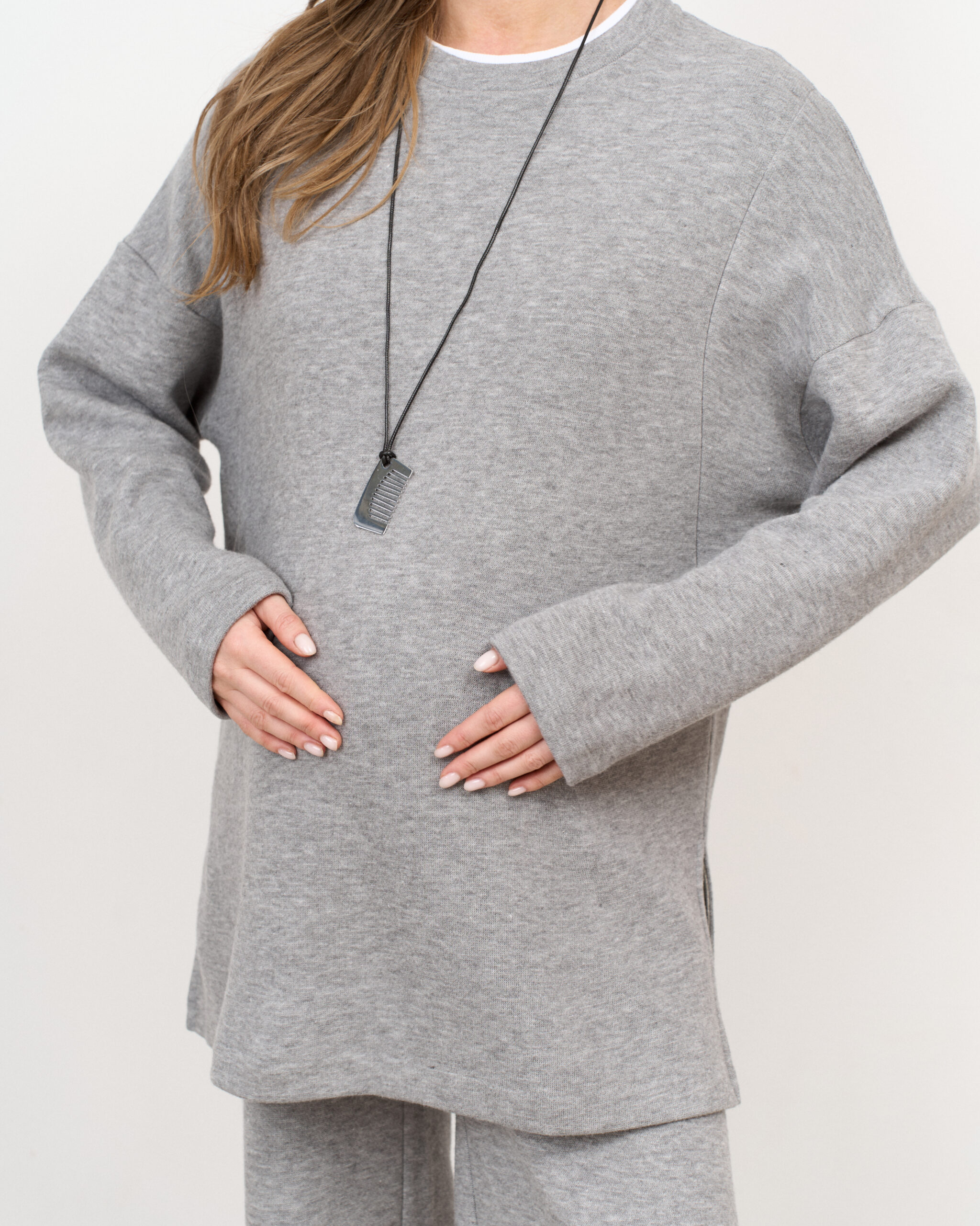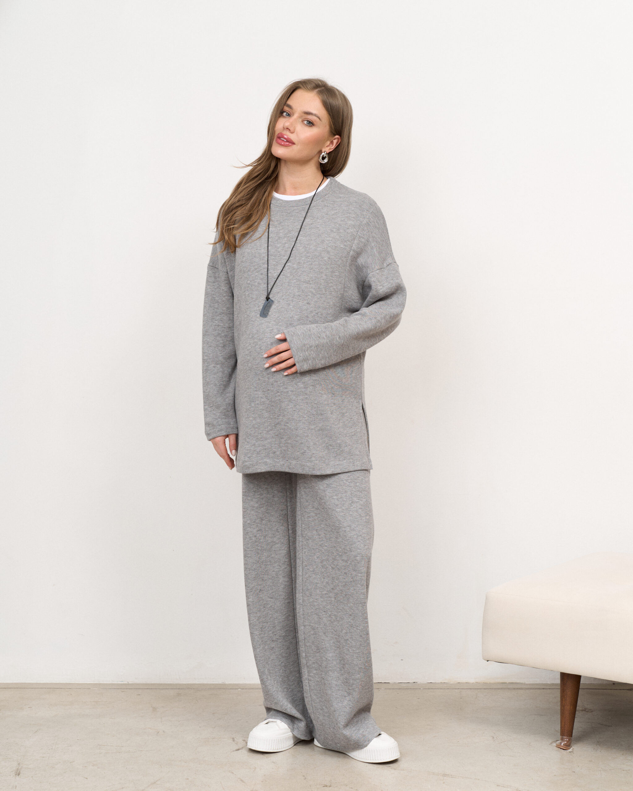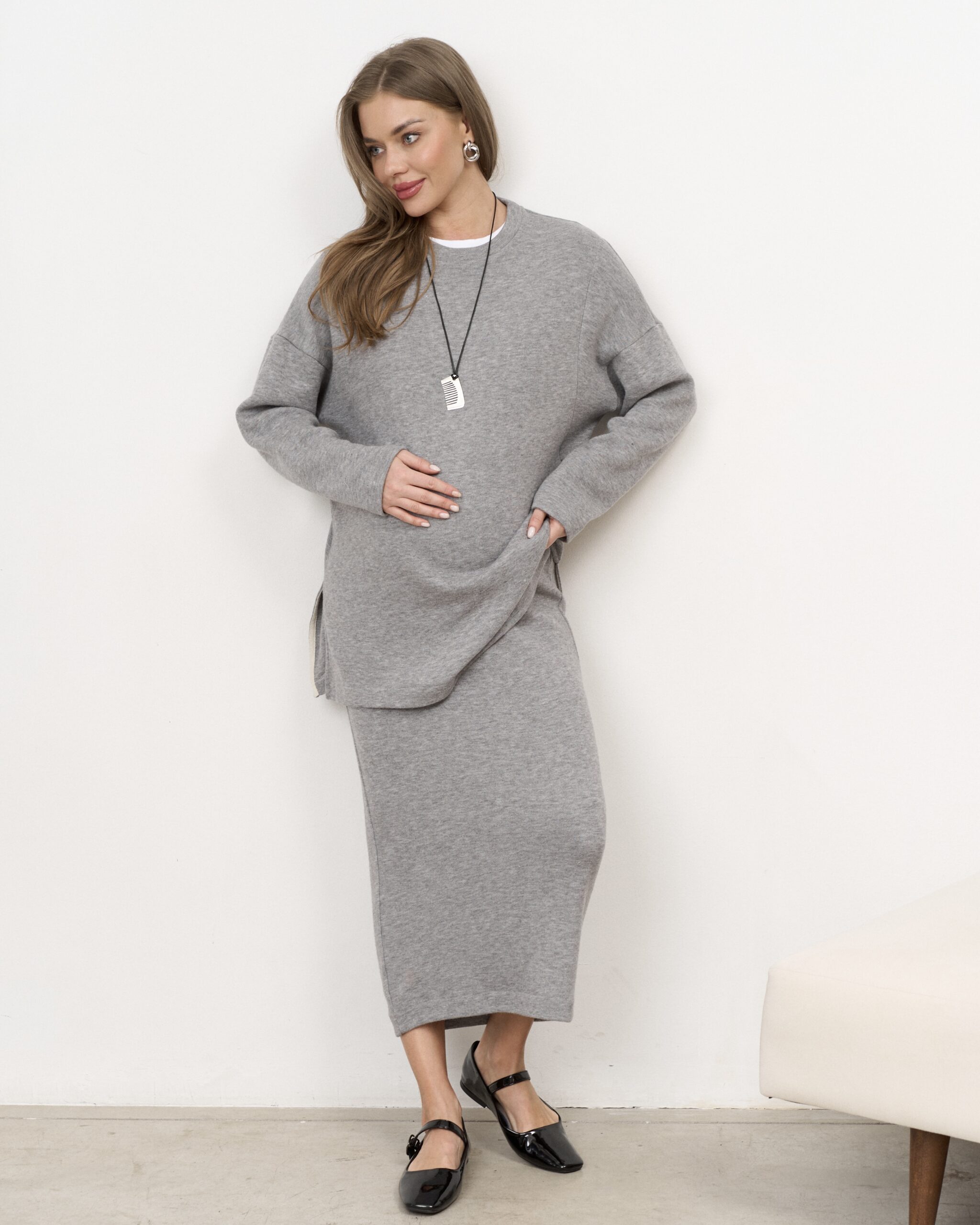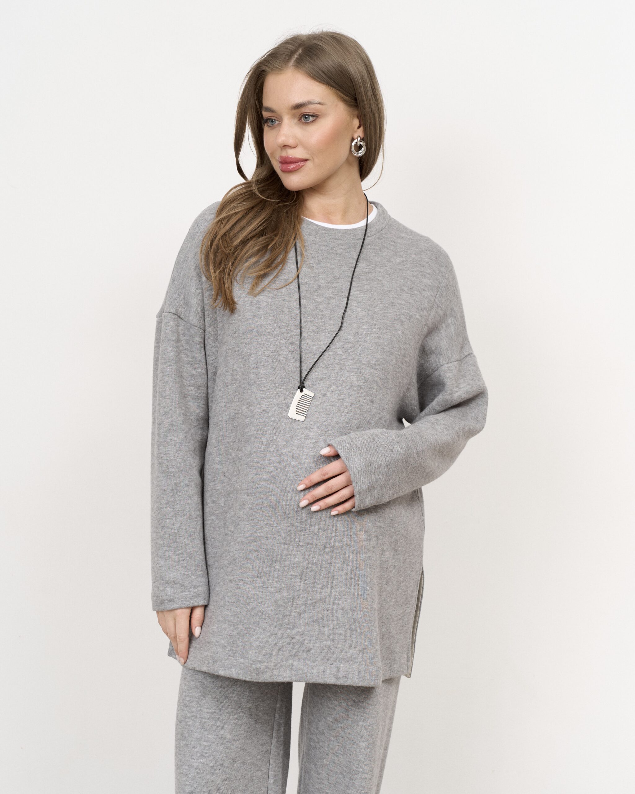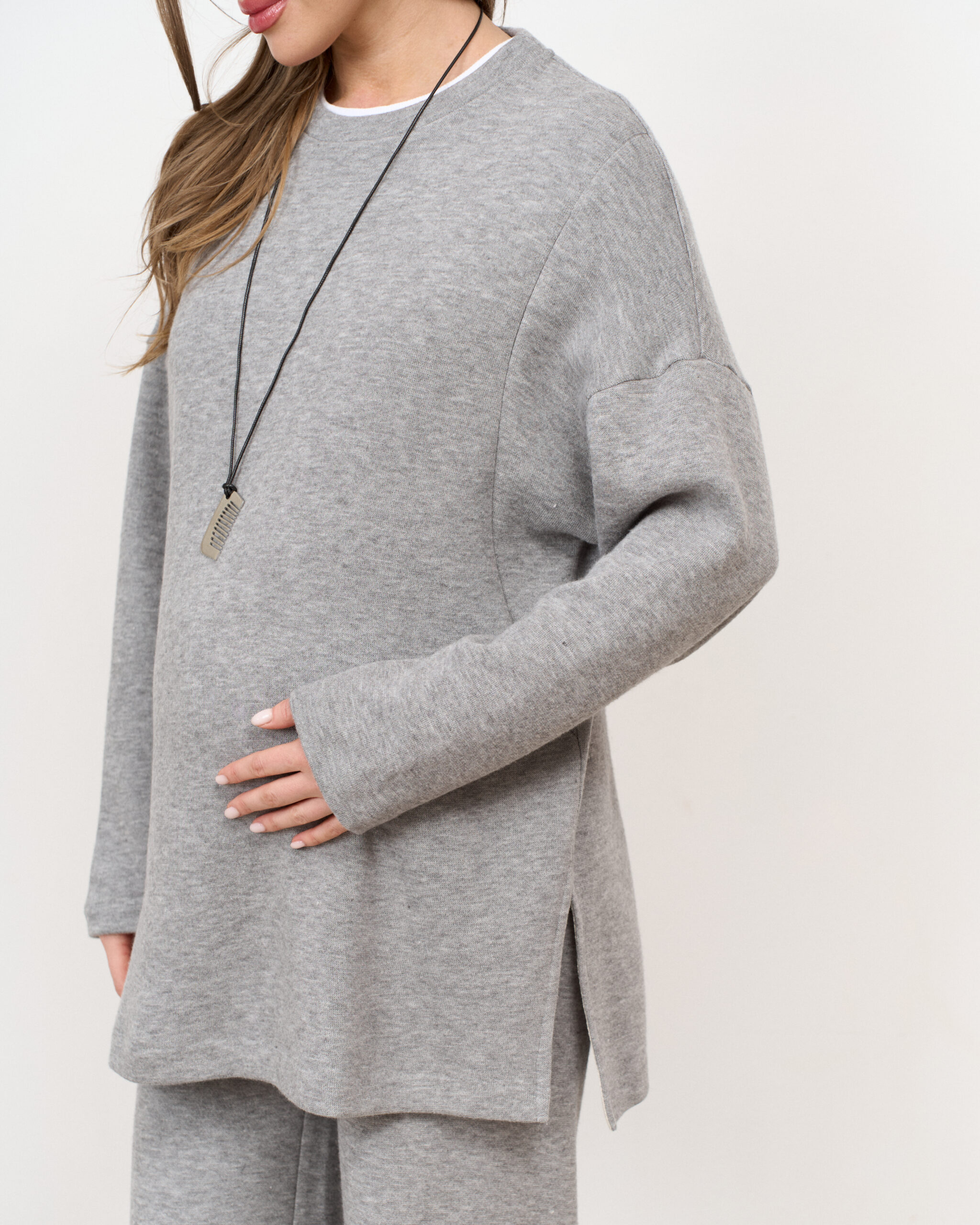 Теплый трендовый джемпер для беременных и кормящих мам из вязаного трикотажа. Джемпер имеет удлиненный крой, высокий воротник и спущенные рукава оверсайз. Секрет для кормления (потайные молнии) и теплая ткань — подарят вам максимум комфорта от ежедневного использования.