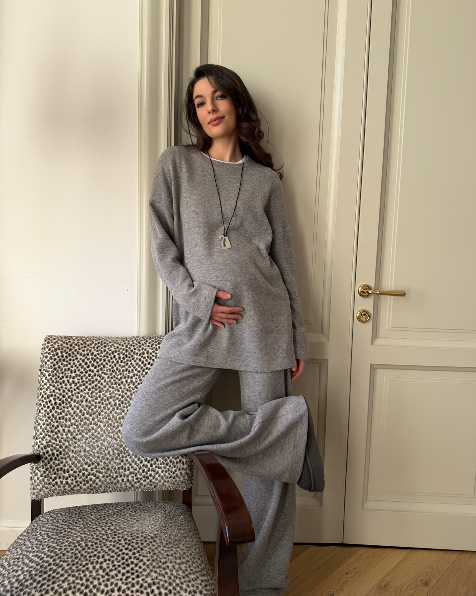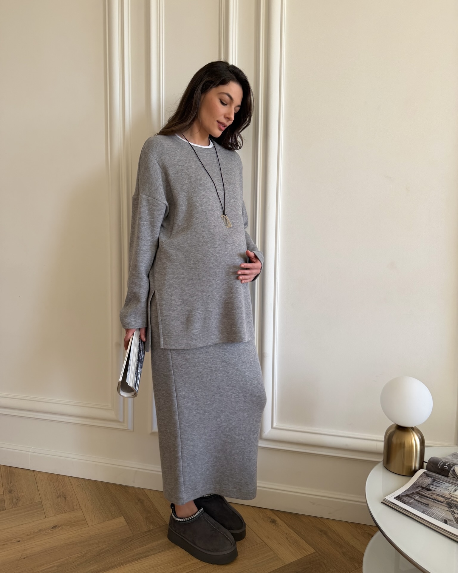 Темно-серый теплый джемпер для будущих и кормящих мам Trendy