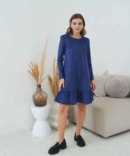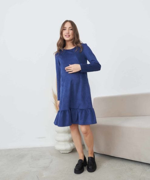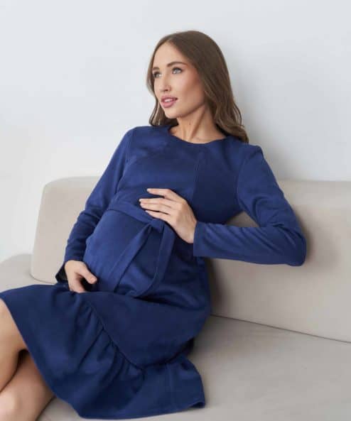 Темно-синее замшевое платье для беременных и кормящих Ketty