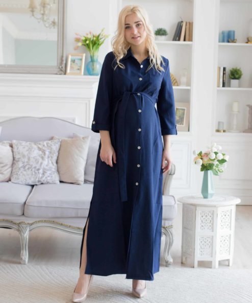 Платье-халат для беременных и кормящих. Стильный элемент гардероба будущей мамы. Выполнен из тонкой ткани «под лен», с карманами для большего удобства и контрастными пуговицами. Платье идеально подойдет и в послеродовой период.