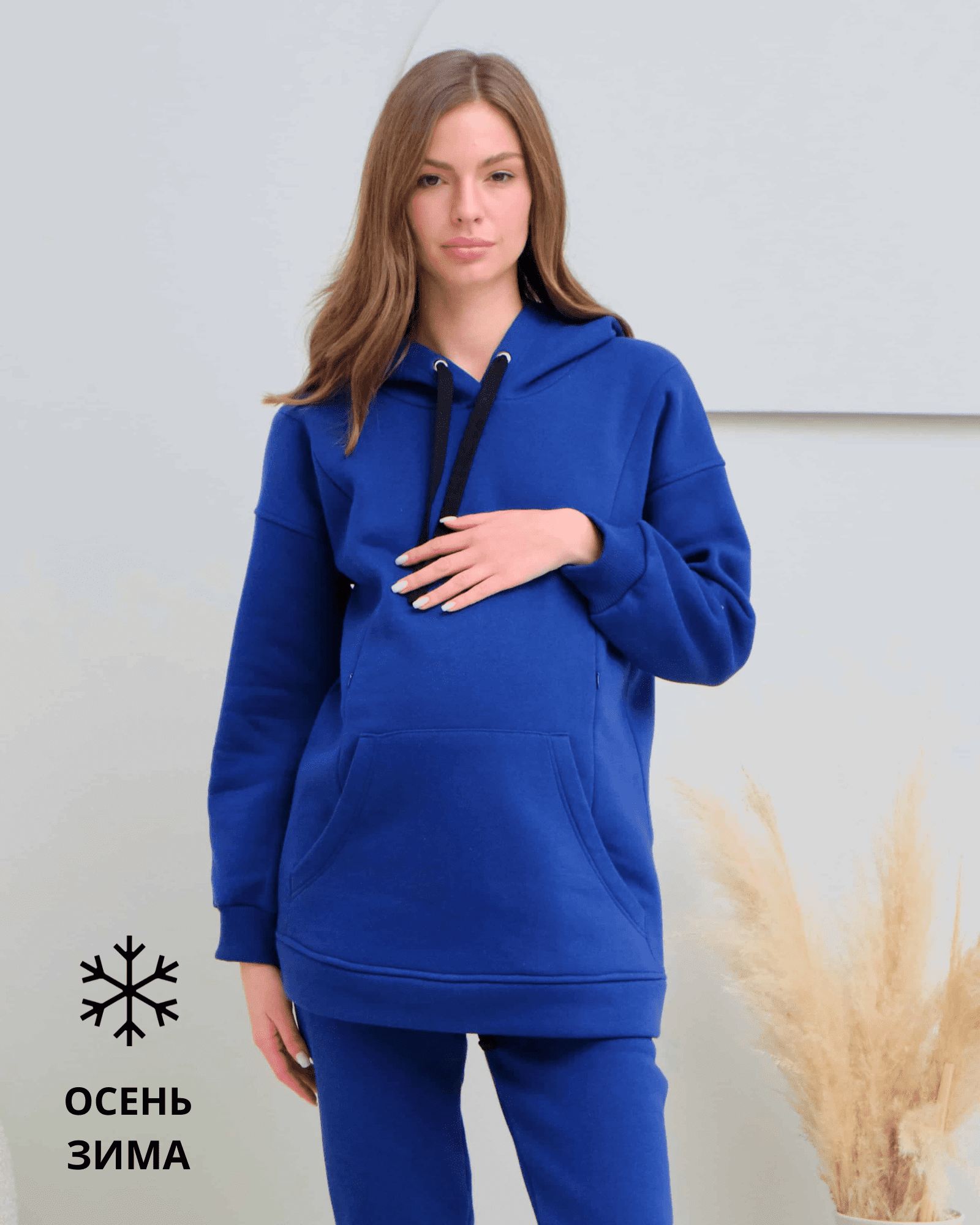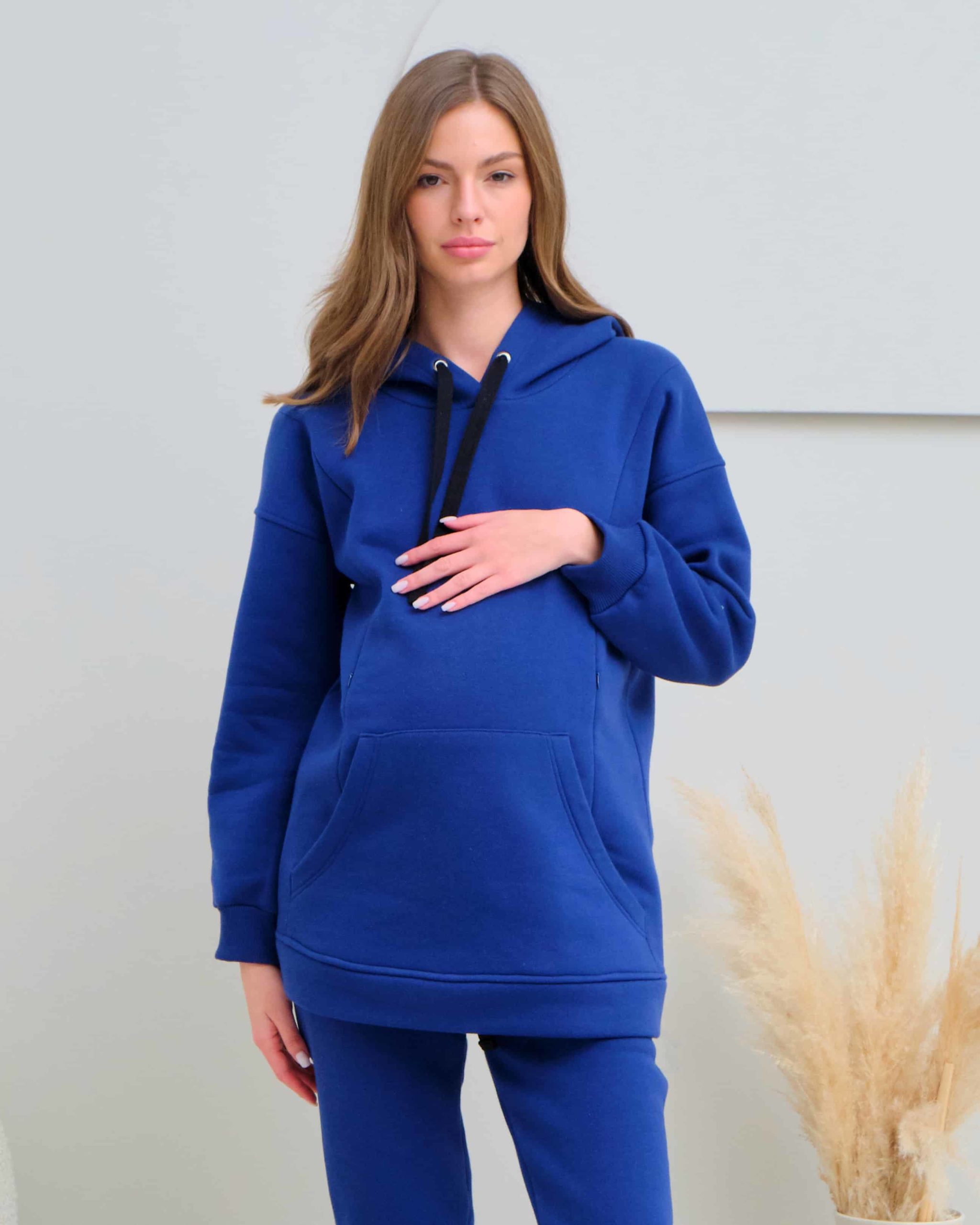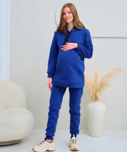 Теплое худи для будущих и кормящих мам из футера высшего качества «пенье» с начесом. Худи скроено специально для растущего животика и немного удлинено. Для грудного кормления — секреты в рельефах на груди в виде потайных молний. Так же есть карман спереди и удобный капюшон на завязках. В комплекте можно приобрести брючки Sport
