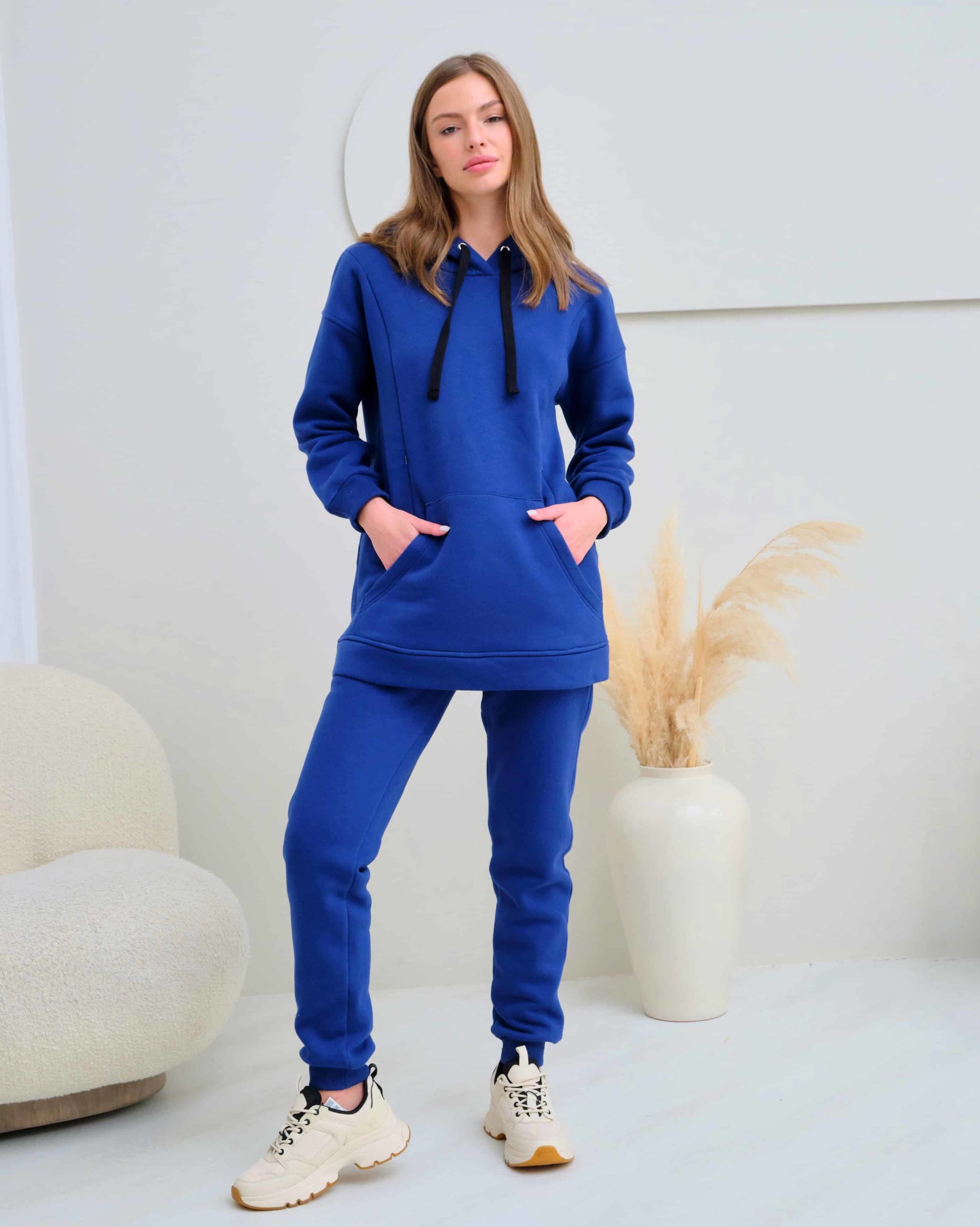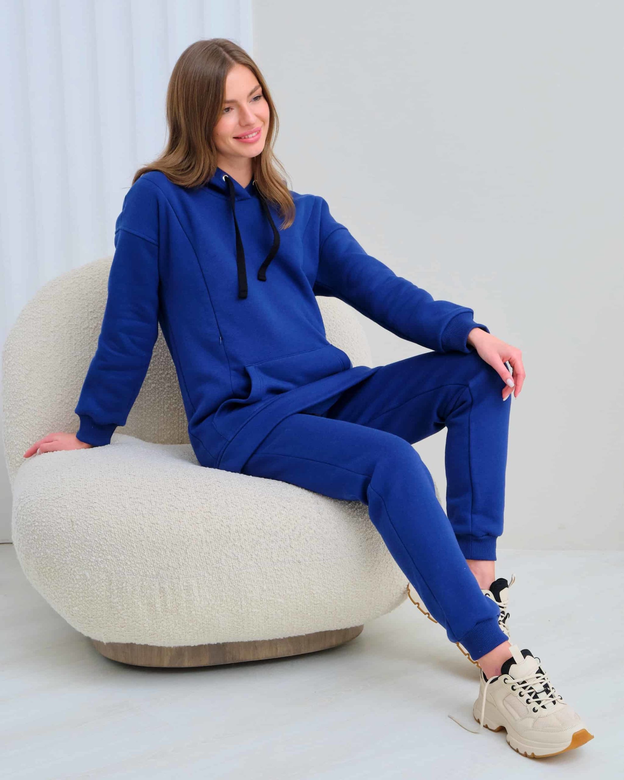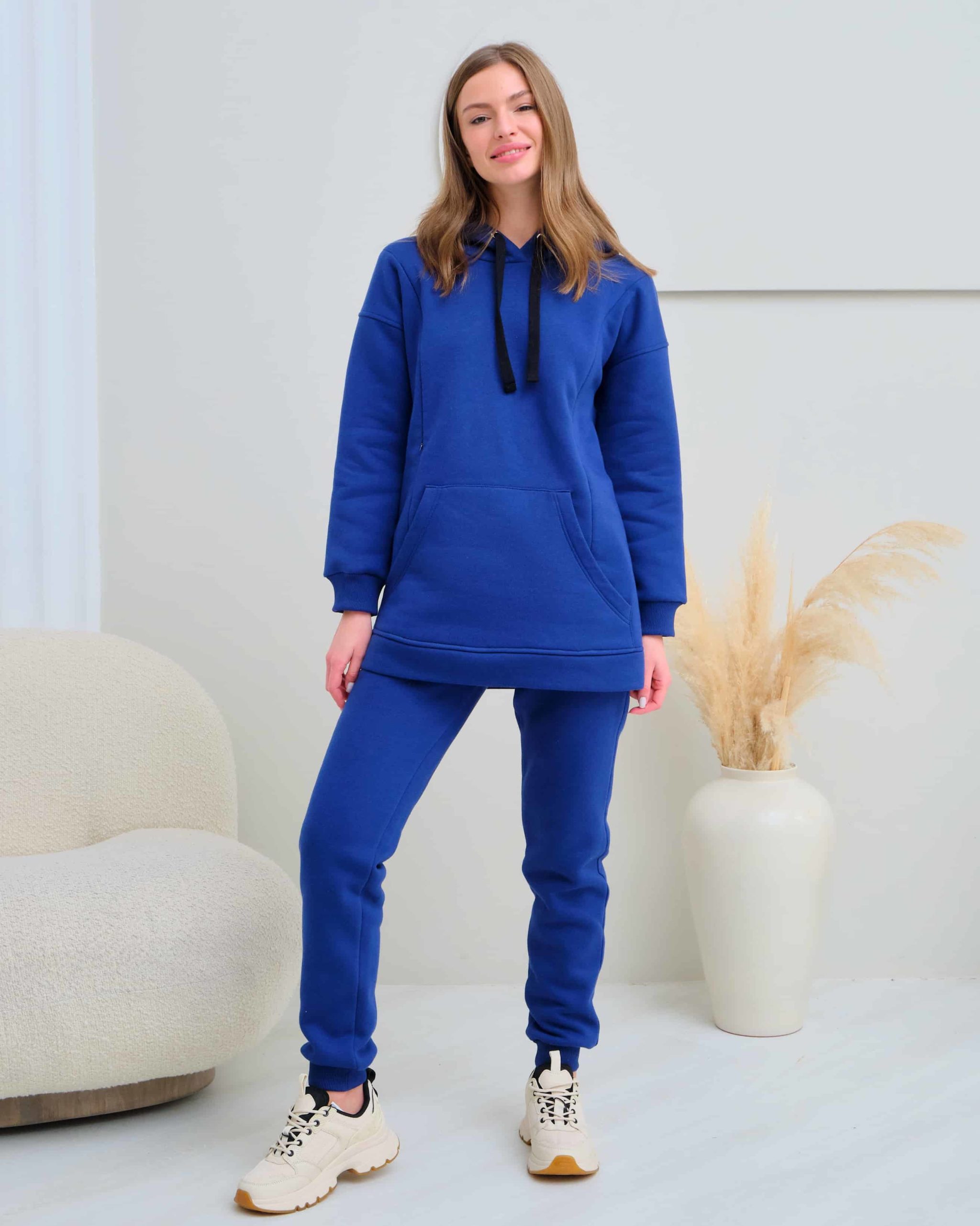 Теплое худи для будущих и кормящих мам из футера высшего качества «пенье» с начесом. Худи скроено специально для растущего животика и немного удлинено. Для грудного кормления — секреты в рельефах на груди в виде потайных молний. Так же есть карман спереди и удобный капюшон на завязках. В комплекте можно приобрести брючки Sport