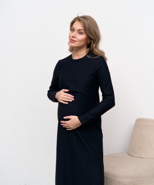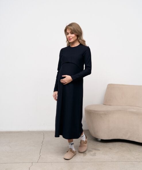 Темно-синее платье для будущих и кормящих мам Casual Warm