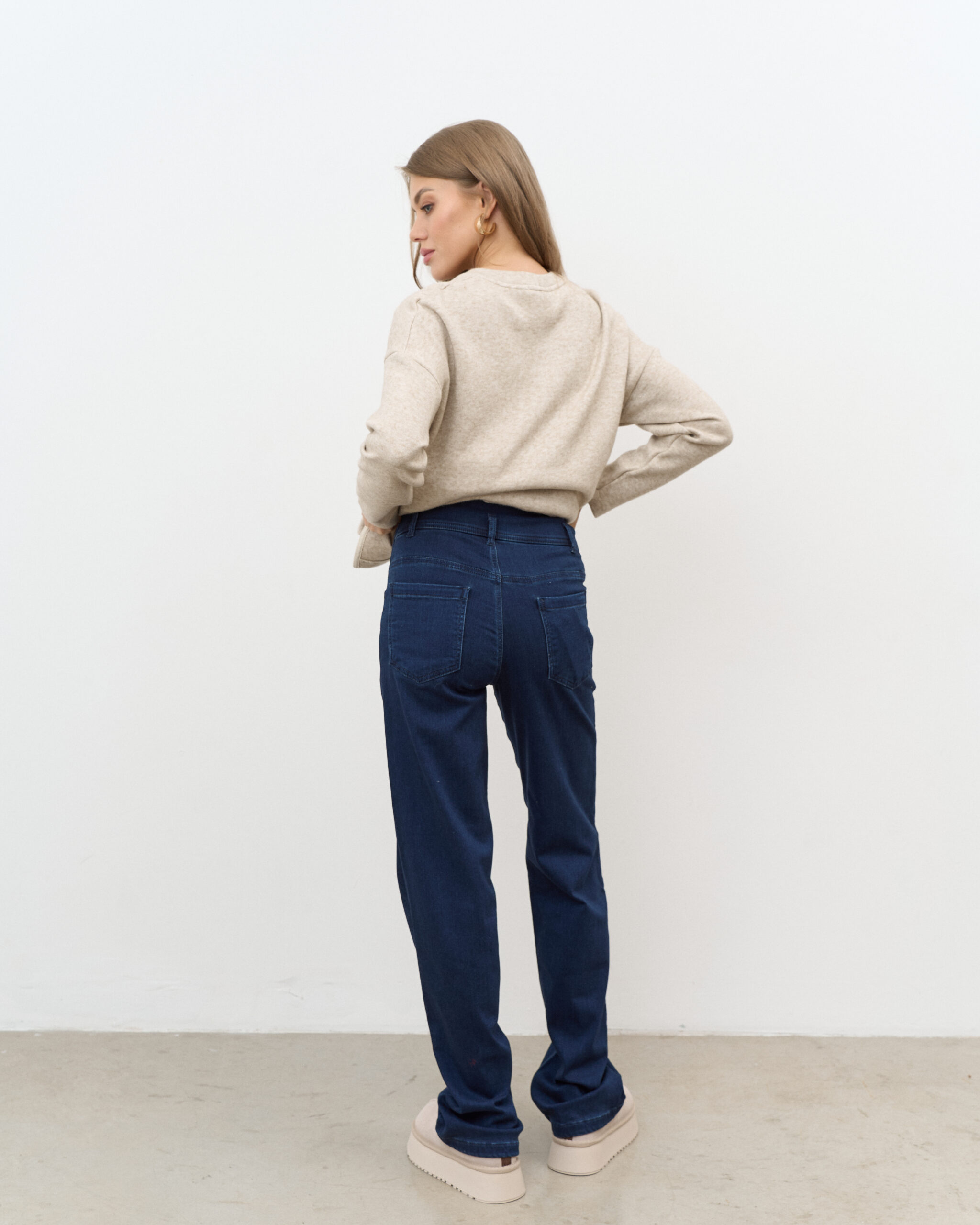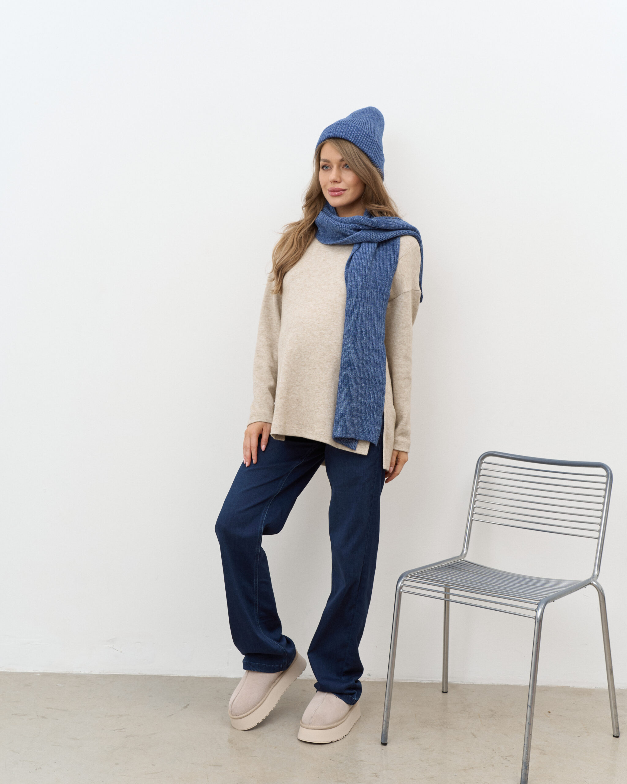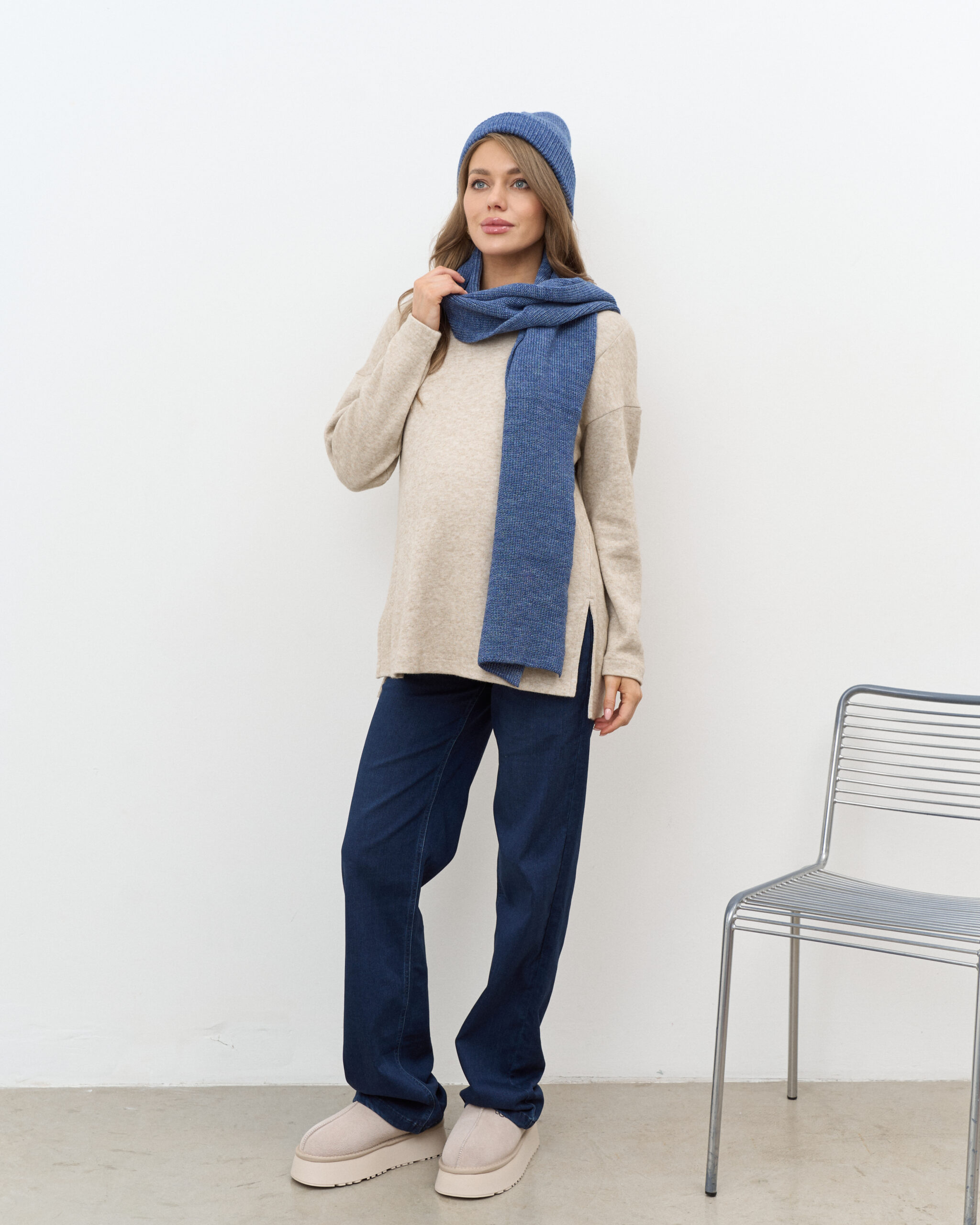 Утепленные джинсы для будущих мам прямого кроя с мягким трикотажным поясом. Подходят на весь срок беременности.