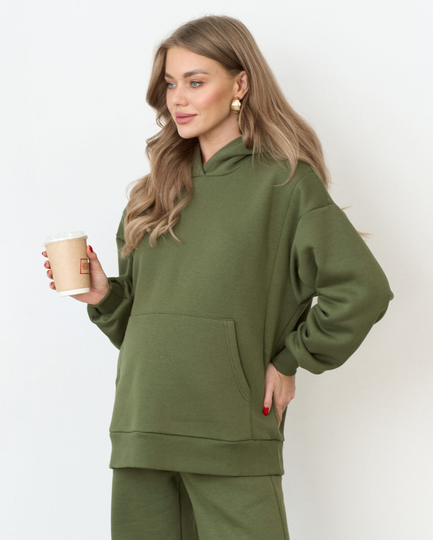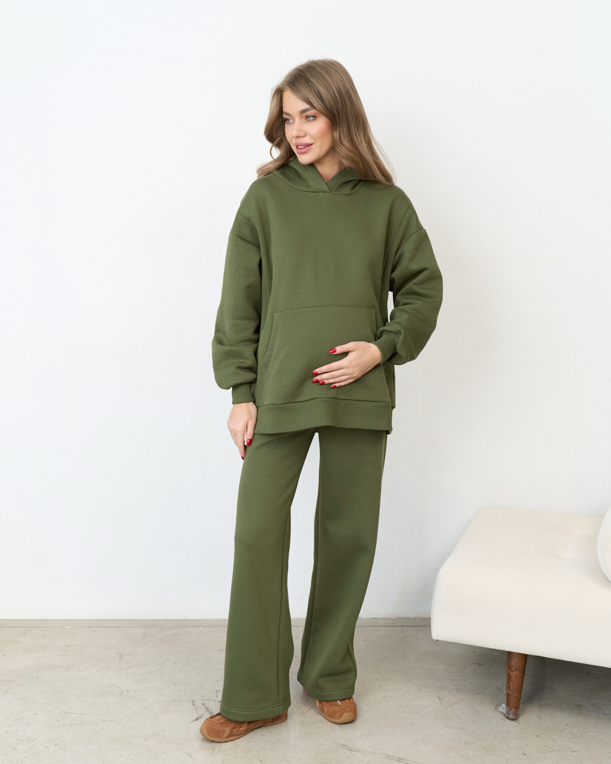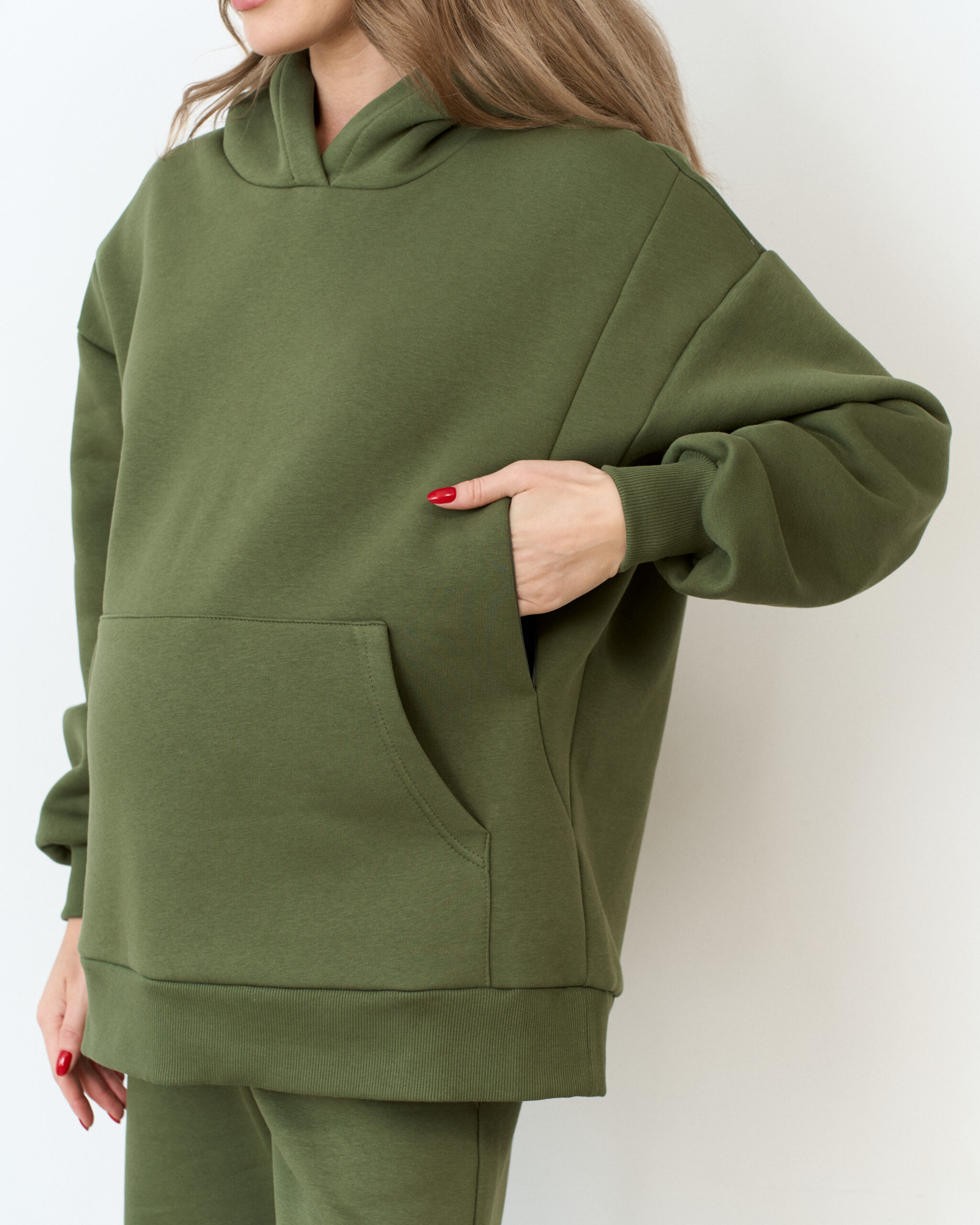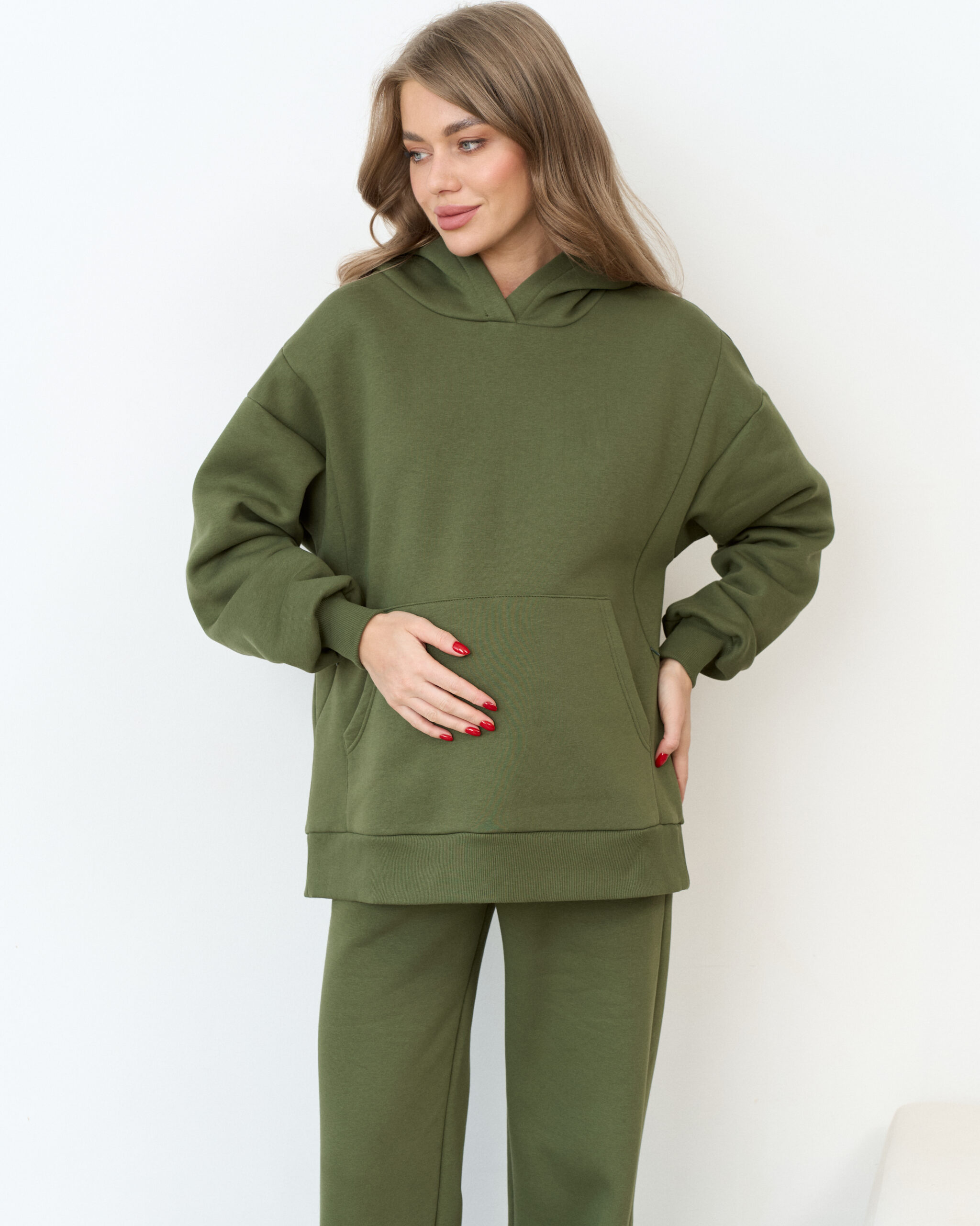 Теплое худи в цвете хаки для будущих и кормящих мам Juna Warm
