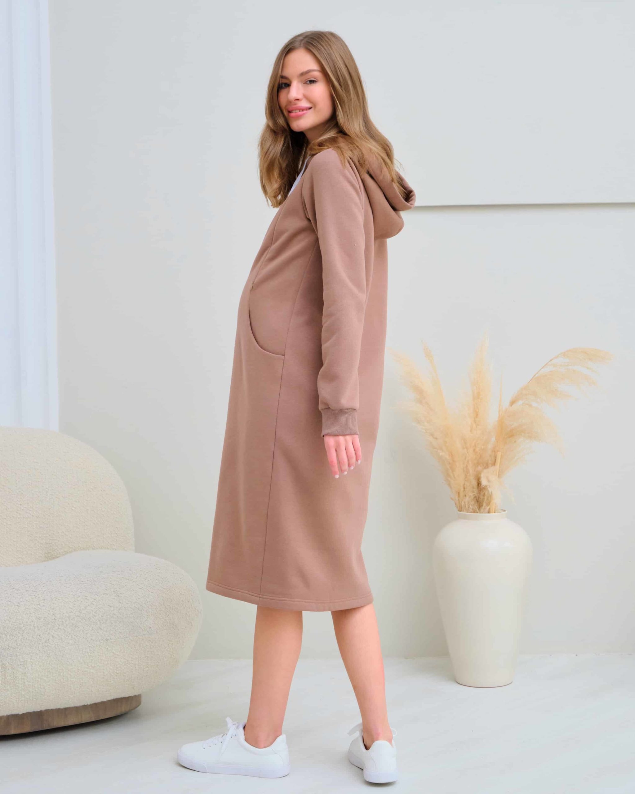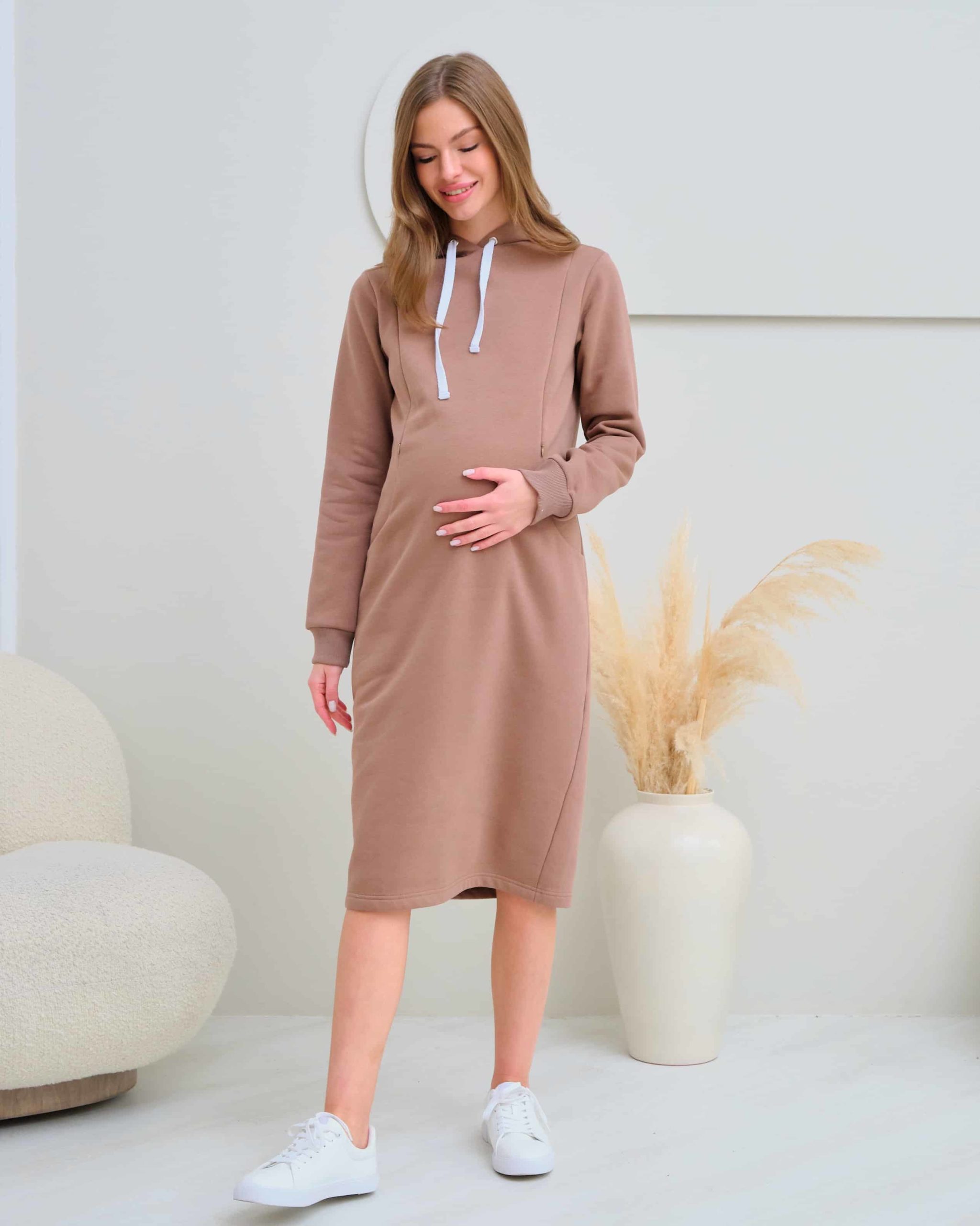Теплое платье в цвете какао для беременных и кормящих Gwen