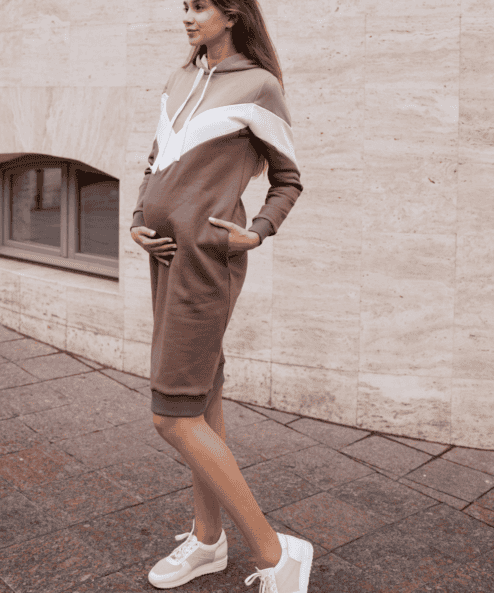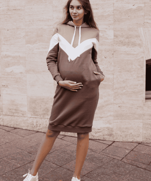 Удобное повседневное платье из мягкого хлопка с начесом – отличный выбор для будущих мам. Платье хорошо тянется, не сковывает движений, комфортно носится даже на последних сроках беременности. На уровне груди расположен потайной разрез для удобства кормления, благодаря чему модель будет актуальной и после родов