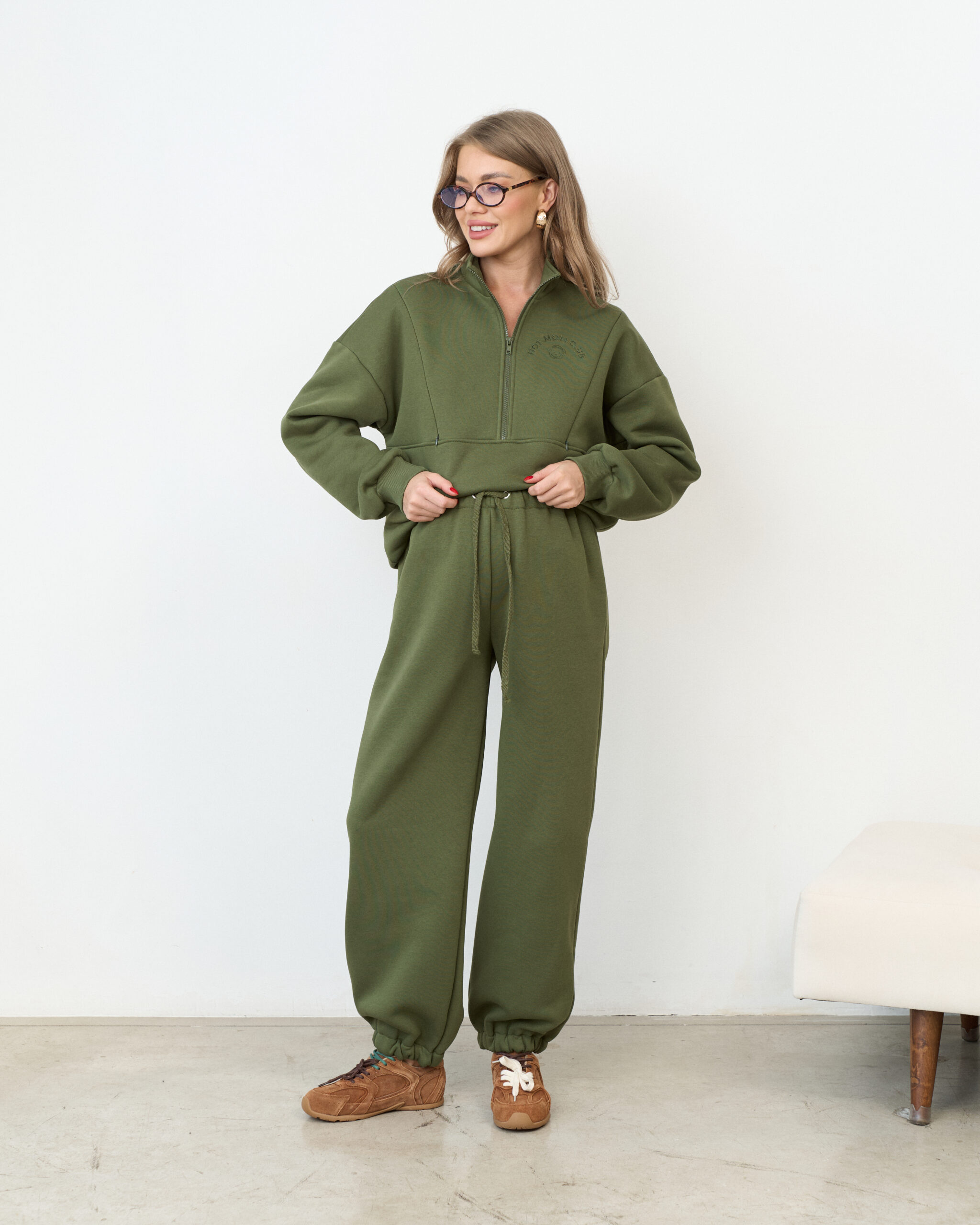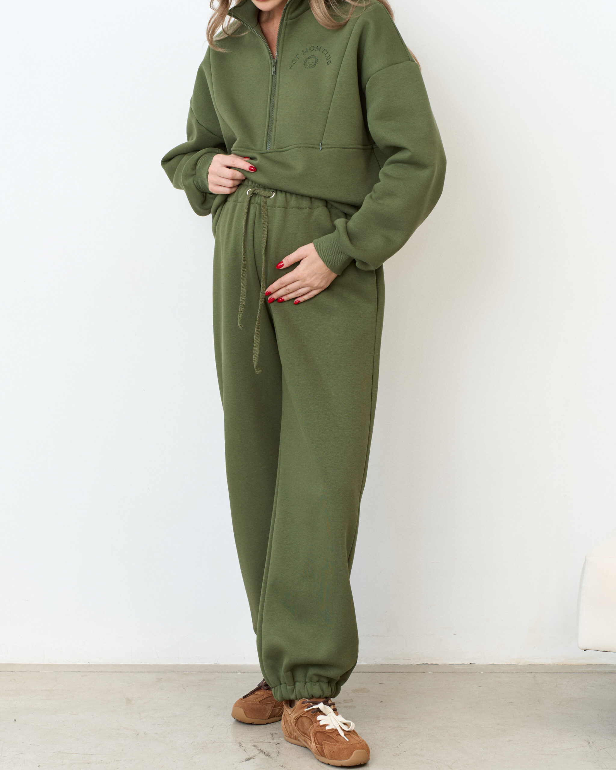 В комплект к брюкам вы можете приобрести свитшот Hot Mom Club и худи Juna Warm