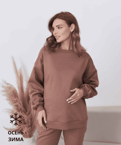 Свитшот из плотного хлопкового трикотажа с начесом, который подойдет на весь период беременности и после.