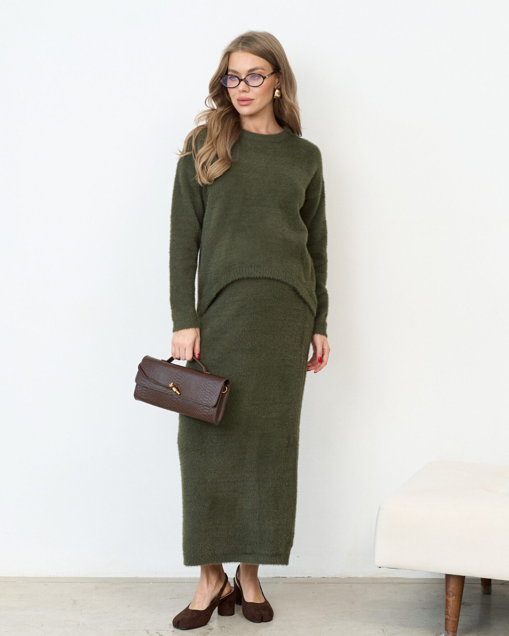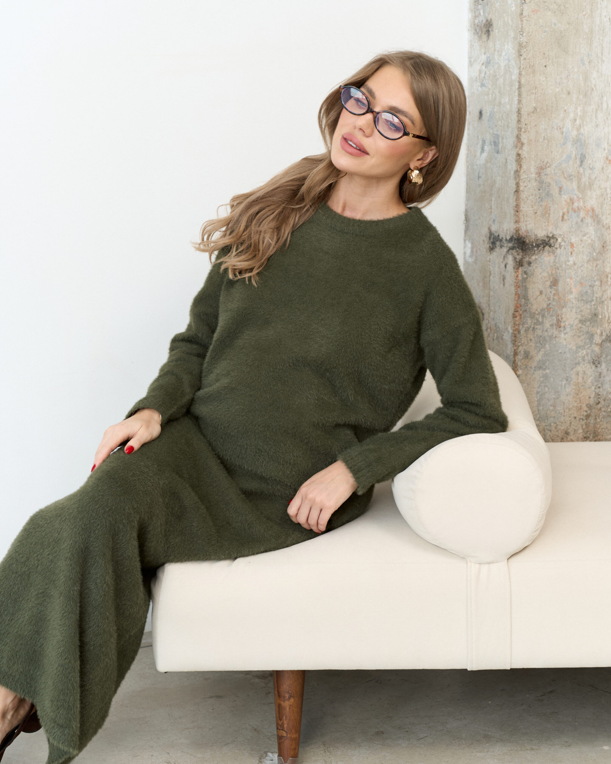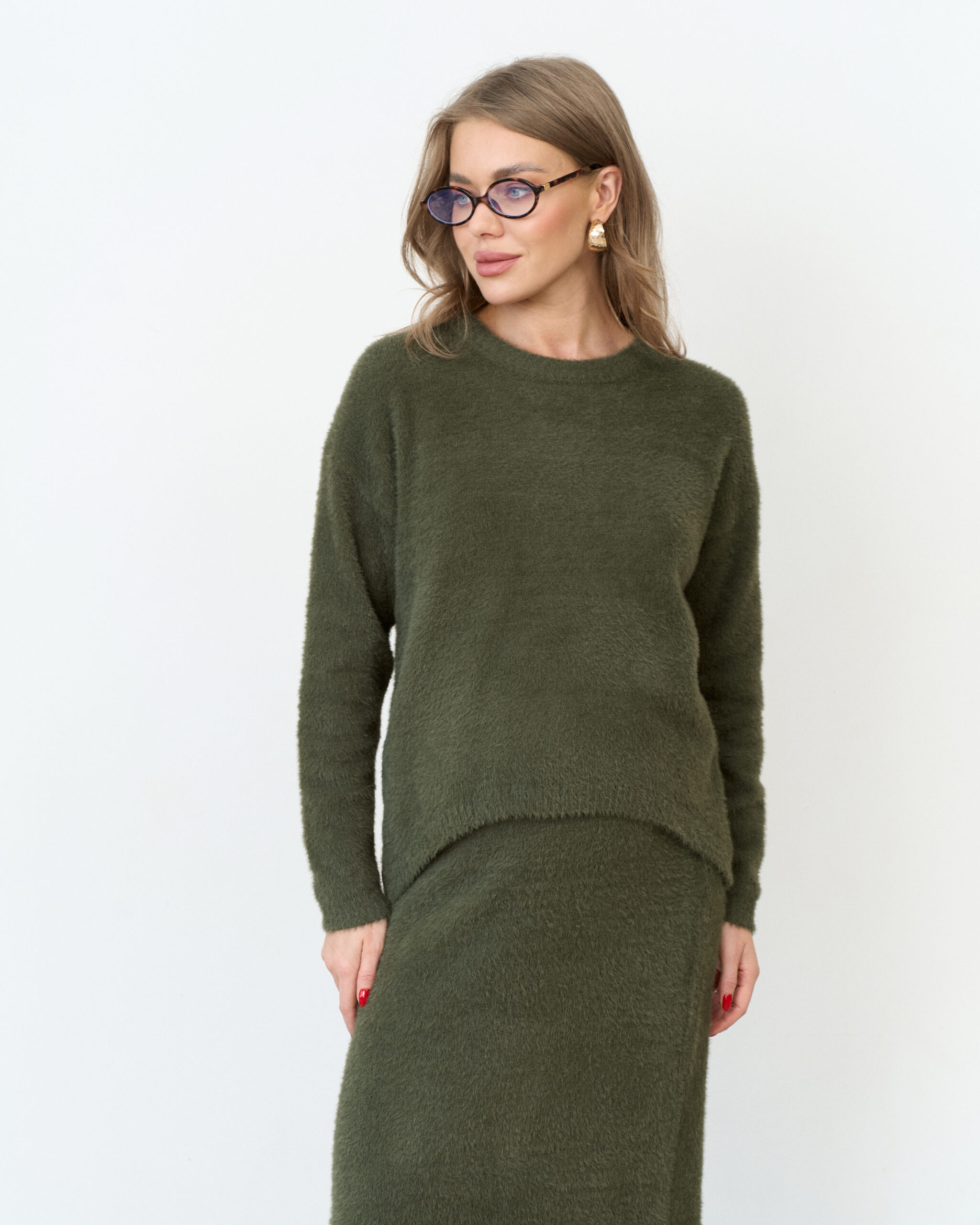 Трикотажный пушистый комплект в цвете хаки Kirsten