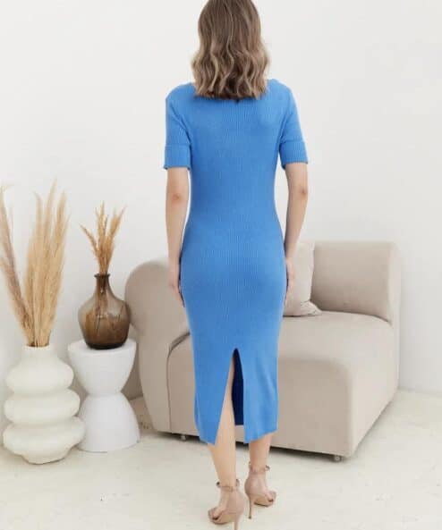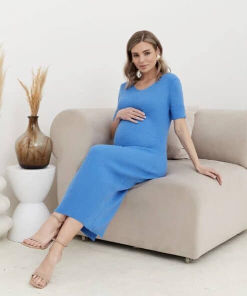 Базовое платье из вязаного трикотажа, которое подойдет на любой срок беременности и после. Идеально на каждый день. Можно носить с кедами, босоножками и даже туфлями.