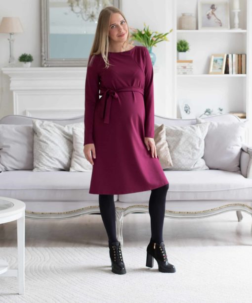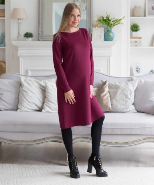 Вишневое платье для беременных и кормящих мам Karmina